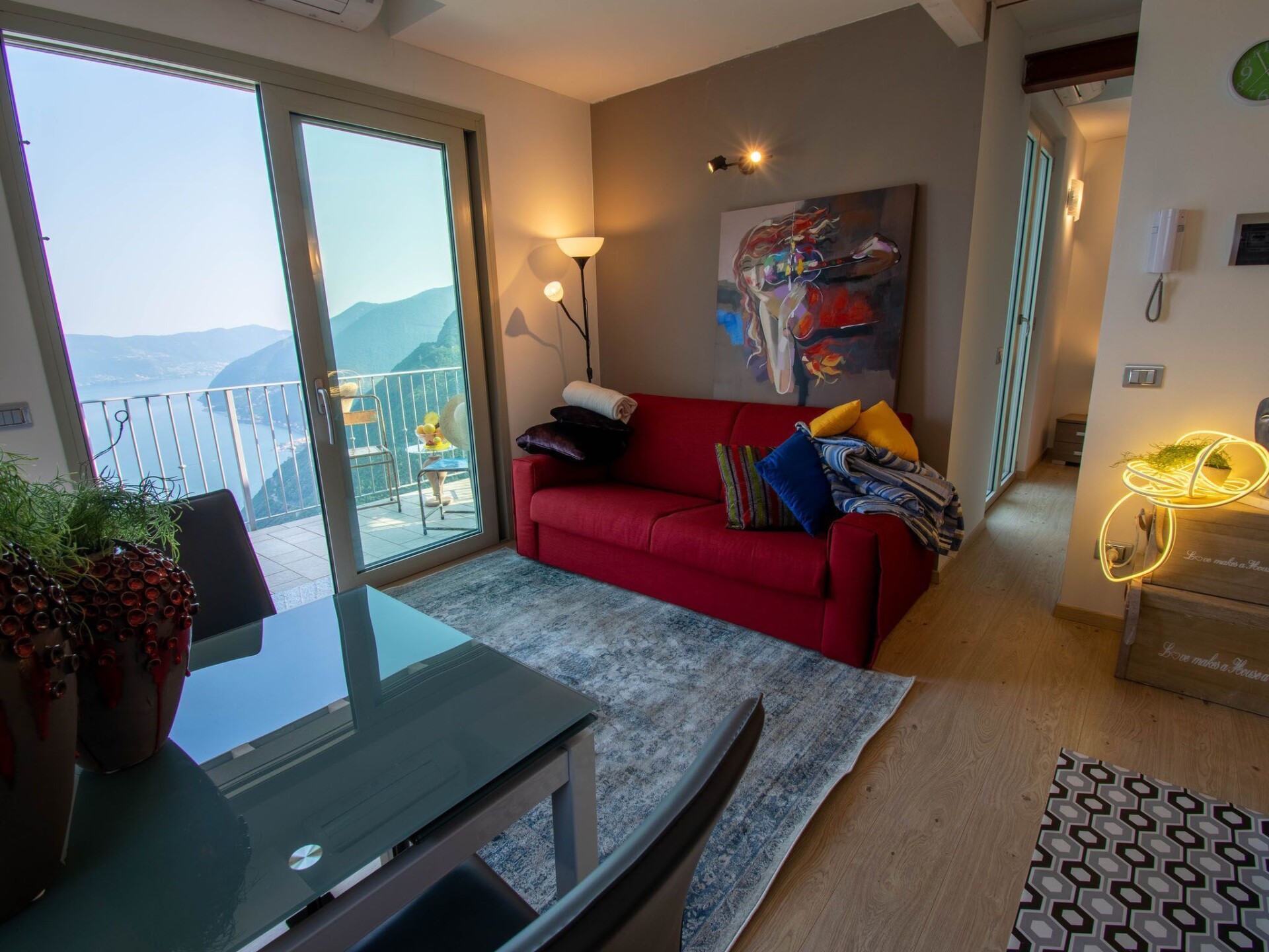 Going on vacation means enriching yourself with emotions: the lakefront view enjoyed by the new 2-room apartment in villetta ensures maximum well-being and the possibility of 180 ° sweeping over the surrounding landscape. The equipped balcony which can be accessed from the double bedroom and the living room leaves room for a large panoramic terrace to take advantage of for endless moments of relaxation and conviviality. Located on the first floor and spread over 50 square meters, the two-room apartment stands out for the warm colors of textiles and kitchen in perfect harmony with the dove gray and hazelnut of the walls, fixtures and exposed beams. Lively and welcoming, it has a living room with table and cabinet with flat screen TV, kitchen with electric stove, fridge, freezer, oven and electric coffee maker. You can treat yourself to a snack or meal in the same environment or move outside and be enchanted by the breathtaking view in complete tranquility. The master bedroom follows the design of the living area with orange to replace the red, the bathroom has suspended sanitary ware. There is a private garage with lift to the apartment and, in the tourist months, unlimited Wi-Fi. The center of Parzanica, with its typical historic hamlet, the Romanesque church of the Holy Trinity and the village of the Acquaiolo hamlet with its rustic-style houses, is in the immediate vicinity; just over 5 minutes and directly on the lakefront you will find Tavernola Bergamasca, with its fine medieval center with all facilities. Ideal for maximum peace in front of the lake.Please inform about your arrival time.It is necessary to show a copy of your passport/identity card at check-inWi-Fi included from april to septemberSwimming pool open from May 15th to September 30th.Just over an hour from Milan, Bergamo and their respective international airports, Tavernola Bergamasca enchants with its charming historic center characterized by medieval views, alleys and settings, above all the Fenaroli Tower that dominates the town. Overlooking the lake, the village faces Montisola, a very popular tourist destination, and on the sides the typical local vegetation, with houses that are increasingly thinning out to make way for kilometers of natural areas suspended between water and land. A short distance away are the cellars of Franciacorta, the Presolana massif for high altitude excursions, Boario for the thermal baths, Valcamonica for archaeological tourism with its 300 thousand rock carvings and the slopes of Monte Pora, Colere and Montecampione for walking and skiing. IT016159B4MX8X4HHD