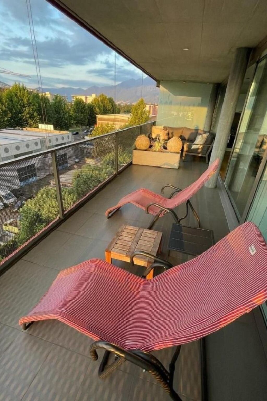 Discover our modern 96m2 3.5-room flat with a spacious terrace on the 5th floor, which offers a direct view of Monte Tamaro and Monte Gambarogno. You can also enjoy the partial view of Lake Maggiore, which will make your stay unforgettable. This flat promises a holiday where comfort and beautiful views go hand in hand.Inside, the flat boasts an extremely practical layout. Each bedroom has its own bathroom and offers direct access to the spacious living/dining room. The furnishings are modern and complete the feel-good ambience. A large table with seating for 6 people is the perfect place to enjoy meals and socialising together. In the kitchen, a counter/breakfast bar with 4 individual bar stools and a Teppan Yaki hob are waiting to create culinary experiences.The outdoor area deserves special attention. The 20m2 terrace with a cosy lounge invites you to linger for hours and enjoy the breathtaking views. A covered outdoor parking space is available and included in the price, but the flat is also easily accessible by public transport.The neighbourhood surrounding the flat is equally enticing. Just a 5-minute walk from the Lido Locarno and ideally connected to bus line 4, the location offers almost unlimited possibilities for leisure activities. Shopping facilities, the Falconeria, a mini-golf course and the Robinson playground are all within easy walking distance. For those interested in culture, Piazza Grande is just a 12-minute walk away, and the proximity to the film festival makes this flat particularly attractive. Numerous sports and leisure activities in the surrounding area, such as fishing, mountain climbing and much more, are just waiting to be discovered.Don't miss the chance to create your perfect holiday base in this enchanting holiday flat. With its ideal combination of comfort, style and a prime location close to numerous attractions and activities, it is the ideal base to fully enjoy the best the region has to offer. Don't miss out on this opportunity and book your unforgettable stay with us. NL-00006760