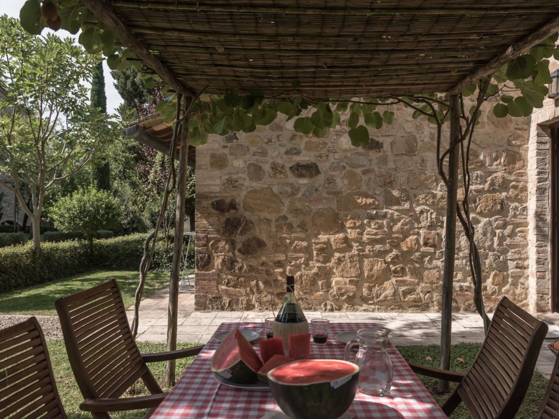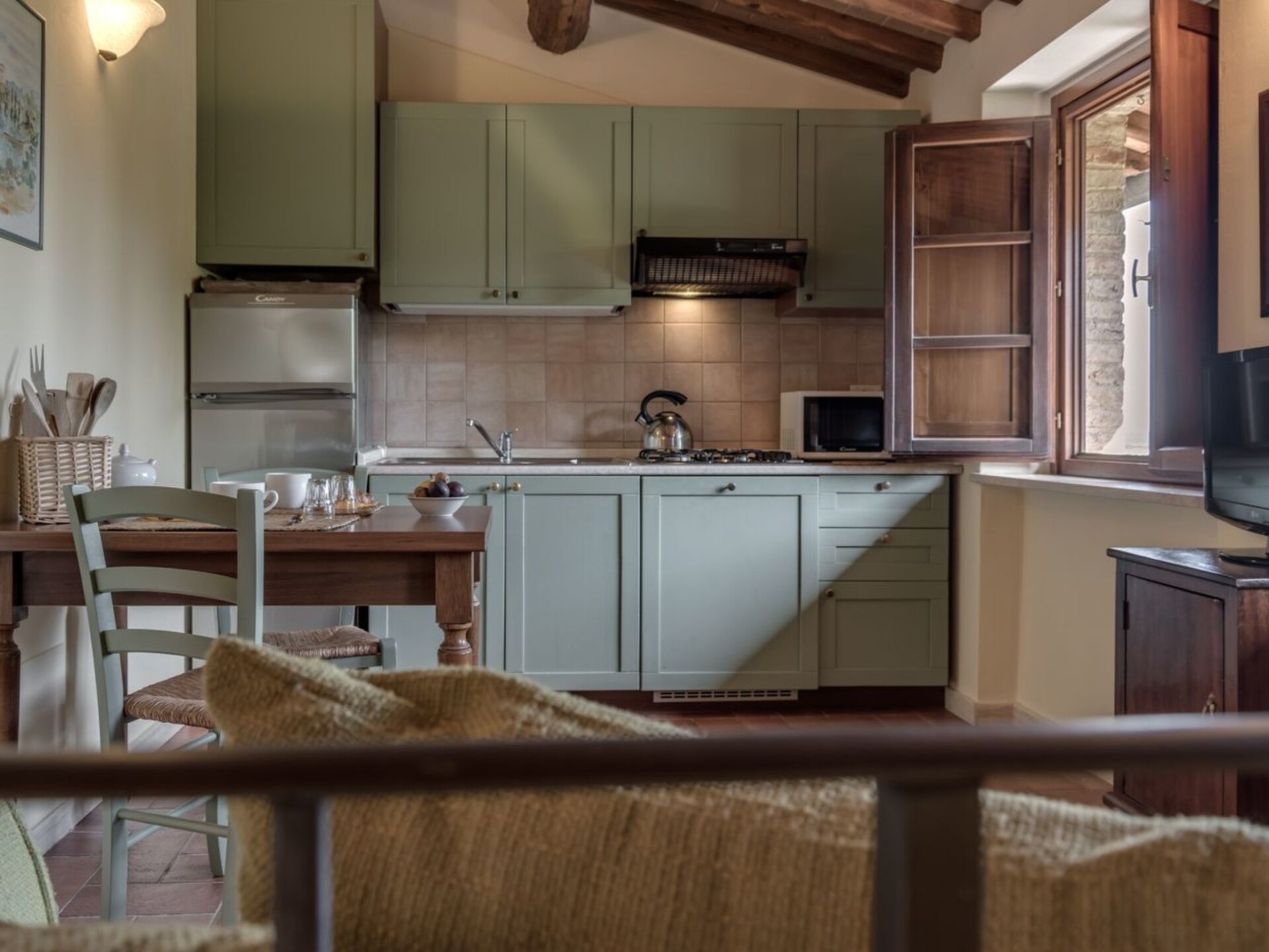 Maximaal 2 huisdieren/honden toegestaan. Discover the charm of authentic Tuscan life by staying in this cosy flat located in the heart of Casole d'Elsa. Immersed in the tranquillity and beauty of the region, this flat offers the ideal opportunity for a relaxing and unforgettable holiday for up to 5 people. With its modern amenities and perfect location, it is the ideal starting point for exploring the wonders of Tuscany.Inside, the flat features a well-equipped kitchen that invites you to prepare delicious dishes with local products. Complemented by appliances such as a dishwasher, electric coffee machine and kettle, this kitchen is designed to make your stay as comfortable as possible. Air conditioning throughout the flat ensures a pleasant climate even on the hottest days.Outside, the flat boasts a private furnished garden, perfect for enjoying the peaceful Tuscan evenings or an al fresco meal under the starry sky. The shared swimming pool offers welcome refreshment, while for those travelling with electric vehicles, the presence of a charging station provides additional convenience. Moreover, with a washing machine and dryer available in the building, every practical need is easily satisfied.Located only 3 km from the nearest town centre and a grocery shop, the flat enjoys an excellent location that makes it easy to explore the cultural and natural riches of the area. Whether it is for an excursion into the surrounding countryside, a visit to historic villages or a simple stroll through the vineyards, this location offers endless possibilities for discovery.Treat yourself to an escape from the daily routine and be enchanted by the magic of this flat in Tuscany. Whether you are looking for a quiet retreat in the midst of nature, or adventure exploring the enchanting surrounding countryside, this flat promises an unbeatable holiday experience for families and groups of friends. IT052004B4TRMY4GAZ