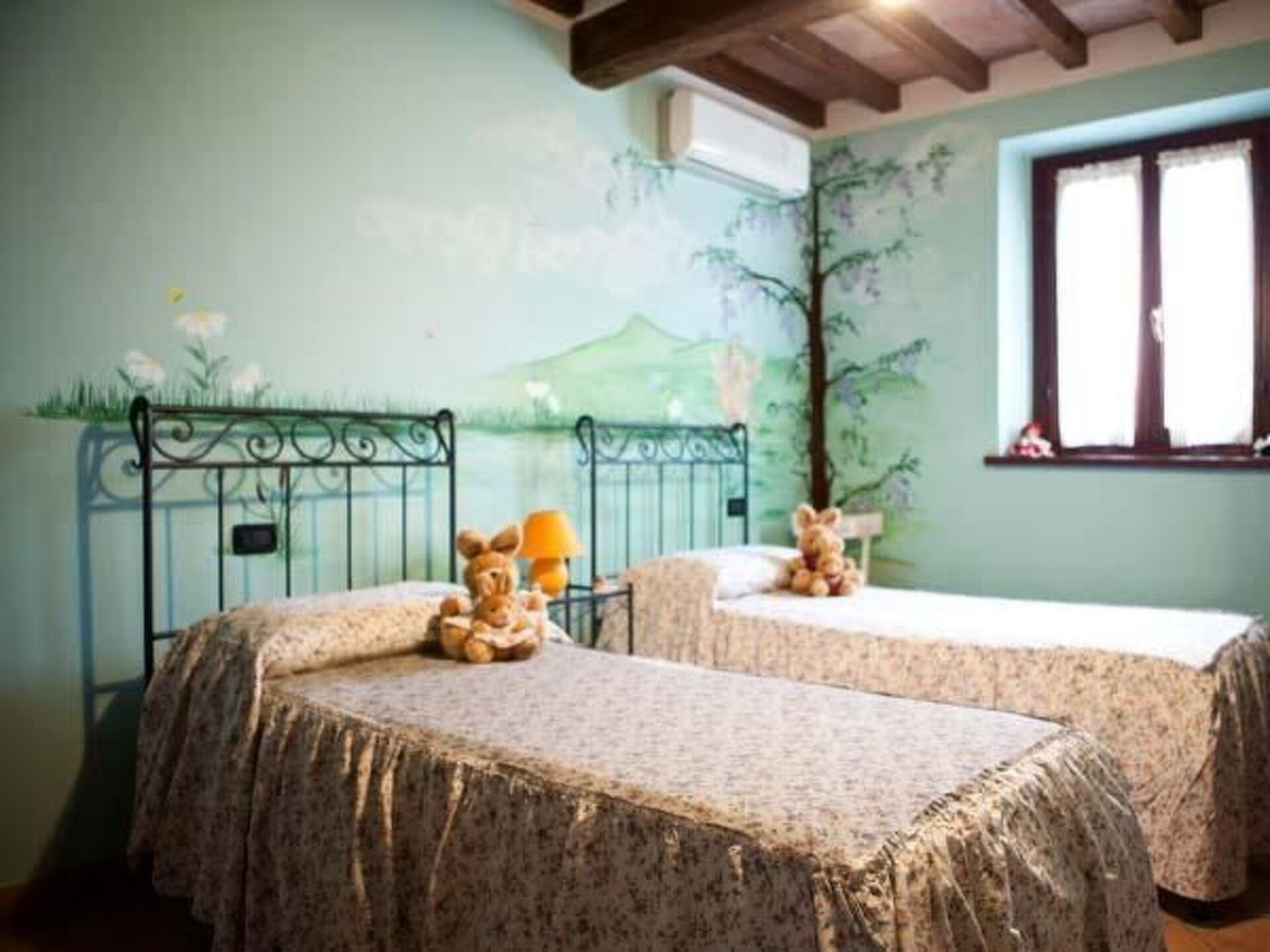 Maximaal 2 huisdieren/honden toegestaan. Immerse yourself in the rural heart of the'Emilia, a soli 3 km da Scandiano, dove la campagna incontra il comfort nel nostro accogliente appartamento Veronica. Situato a piano terra con un ingresso indipendente, questo bilocale fa parte di un'old stone farmhouse, dating back to 1800. Our 10-hectare farm, organically cultivated with vineyards, offers you the chance to enjoy breathtaking sunsets and an enchanting view of our green park.The'interno dell'flat Veronica is designed for comfort and a'atmosfera accogliente. Disponibile con letto matrimoniale o due letti singoli con materassi in puro lattice, è dotato di una moderna TV da 55 pollici per i vostri momenti di relax. Il bagno, sebbene privo di finestra e bidet, offre una doccia comoda e un asciugacapelli. La cucina è equipaggiata con frigorifero, freezer, fornello a gas, lavello e tutto il necessario per preparare i vostri pasti, insieme a un ulteriore televisore. L'flat is air-conditioned and it is possible to add a single bed, according to your needs. Wi-Fi is available, making your stay even more enjoyable.L'appartamento è accessibile anche a persone con disabilitàAll'outside, l'ampio parco con pergolati, il barbecue, il solarium e il parco giochi vi aspettano per momenti di puro relax all'open air. For lovers of walking, our vineyards offer the'opportunità di immergersi nella natura. Vi è anche un parcheggio privato video sorvegliato e una lavanderia comune a disposizione degli ospiti. Gli amici ciclisti e motociclisti apprezzeranno il garage con piccola officina per riparazioni e lo spazio dedicato al lavaggio di biciclette e moto.Gli amici a 4 zampe sono i benvenutiLa posizione dell'flat is perfect for exploring the outdoors'Emilia, un territorio ricco di cultura, arte e storia. Città come Reggio, Modena, Parma, Bologna, Mantova, nonché numerosi centri minori, sono facilmente raggiungibili. Nelle vicinanze, potrete immergervi in attività all'such as swimming, golf, horse riding and more. For gastronomy enthusiasts, there is no shortage of opportunities to taste and buy local products in dairies, wine cellars and vinegar cellars. Just 3 km away, Scandiano offers restaurants, shops and cinemas for your entertainment.Choose the'appartamento Veronica per una vacanza indimenticabile all'sign of relaxation, nature and cultural discovery. Here, the'antico fascino di una casa contadina si fonde con il comfort moderno, offrendovi un soggiorno unico, dove potrete sentirvi veramente parte dell'authentic Emilian rural life. Don't miss the'occasione di immergervi in un'oasis of peace, ideal for all those seeking an escape from daily routine without having to give up the pleasure of discovery and well-being.We can accommodate up to 27 people, who can spread out over our 7 flats and all gather together in our common room, where they can dine in company. IT035040B5NMXX23UQ