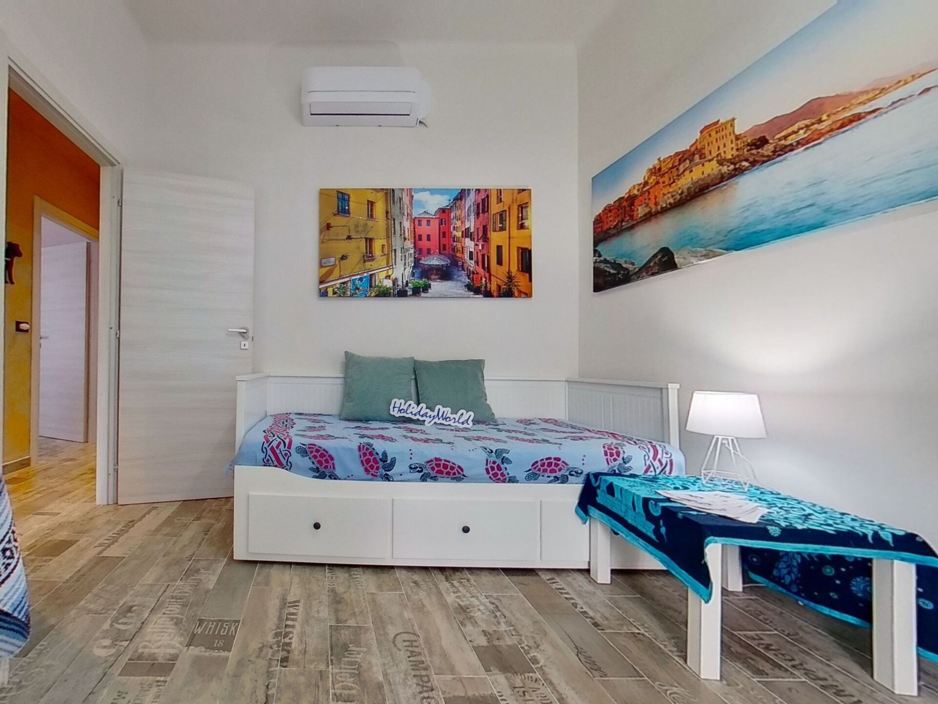 Casa di Viola is an oasis of serenity in the picturesque Varenna Valley, inland from Genoa Pegli. This is a very cosy flat with two bedrooms, one double and one twin with a single pull-out bed, a bathroom, a kitchen and a lovely courtyard. It is characterised by bright colours and a brightness that makes the spaces even more hospitable. You can also stay here with your four-legged friends. You will also enjoy every comfort such as air conditioning and Wi-Fi. Val Varenna is the perfect place for those who seek tranquillity at a stone's throw from the sea and wish to explore nature, go hiking and discover beautiful cycling routes. This enchanting valley is only 2 km from the town of Pegli. Here you will find Villa Durazzo Pallavicini, an important aristocratic villa that excels in the field of European historic-romantic gardens, with its park and wonderful sculptures. It is also from here that you can take the ferry to explore the centre of Genoa, a city rich in museums and historical palaces. A visit to the aquarium, one of the largest aquariums in Europe, is not to be missed. IT010025B4W9NVOTVI