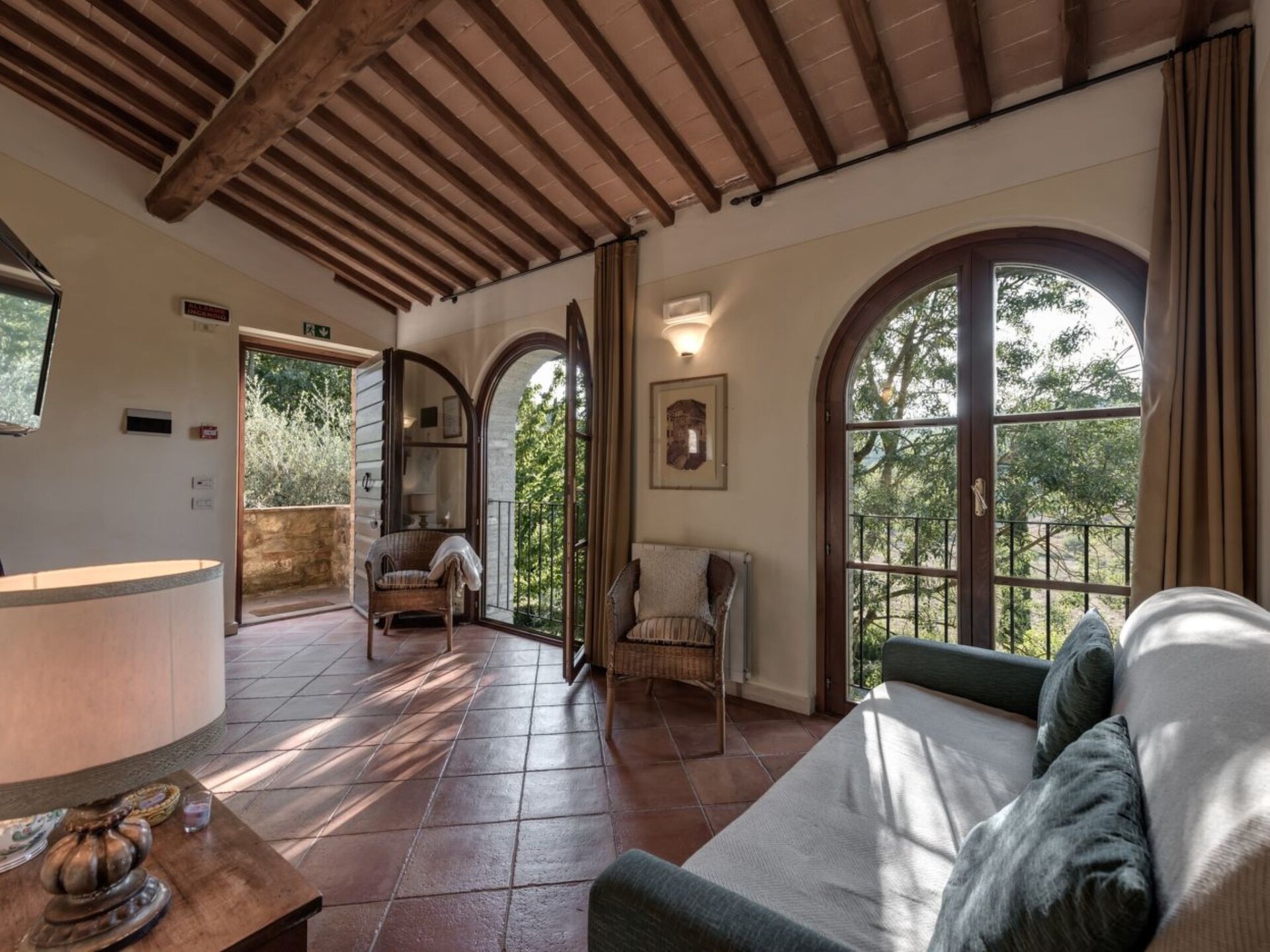 Maximaal 2 huisdieren/honden toegestaan. Discover the timeless charm of Tuscany by staying in our 'Volterra' flat, an ideal solution for groups of up to 5 people wishing to explore the beauty of Casole d'Elsa and its surroundings. This flat, ideally located for those seeking a holiday of relaxation and discovery, offers the perfect combination of comfort and Tuscan authenticity.Inside, the flat stands out for its brightness and the pleasant view of the surrounding hills from the large arched windows in the living room. Here, attention to detail is evident in the distribution of space, where the living area comfortably welcomes guests in a peaceful and relaxing environment. Equipped with all the necessary comforts, including air conditioning in all rooms, an electric car charging station and access to the building's communal washing machine and dryer, the flat guarantees a pleasant and carefree stay.The real jewel of this flat is its private garden, a peaceful oasis where you can relax and enjoy the clean air of the Tuscan countryside. Equipped for your pleasure, the garden is the perfect place for quiet moments in the cool of nature. In addition, the communal swimming pool offers a further option for relaxation, allowing you to cool off on hot days.The location of the flat is ideal for those who wish to discover the wonders of Tuscany. Only 3 km from the nearest town centre and grocery shops, guests can easily explore the local area, immersed in green hills and rich in history, culture and culinary delights.In conclusion, the 'Volterra' flat offers the perfect combination of comfort and tradition, making it the ideal starting point for your Tuscan adventures. Whether you are looking for tranquillity, natural beauty, or both, here you will find a cosy environment with every comfort for an unforgettable stay in beautiful Casole d'Elsa. IT052004B4TRMY4GAZ