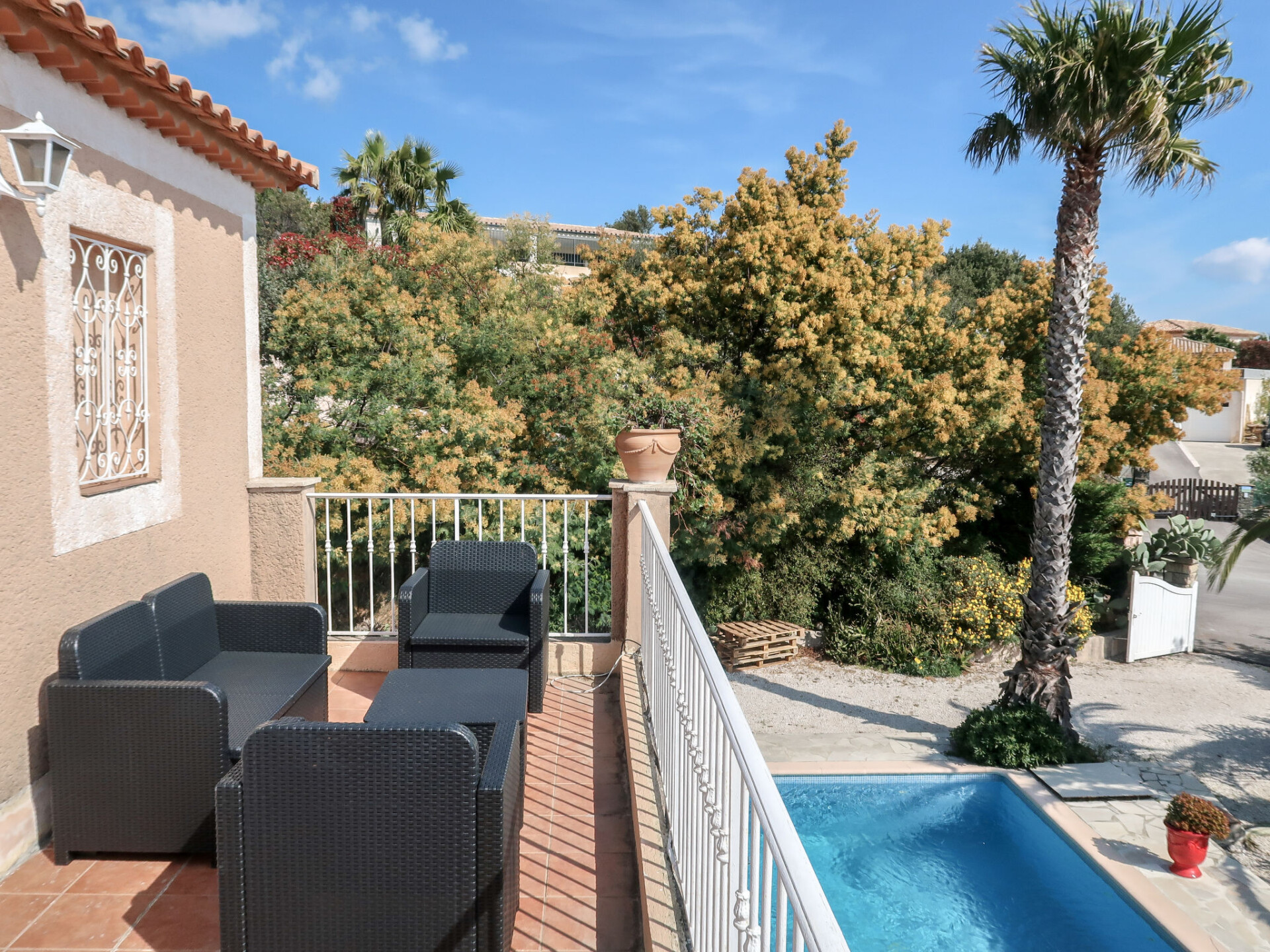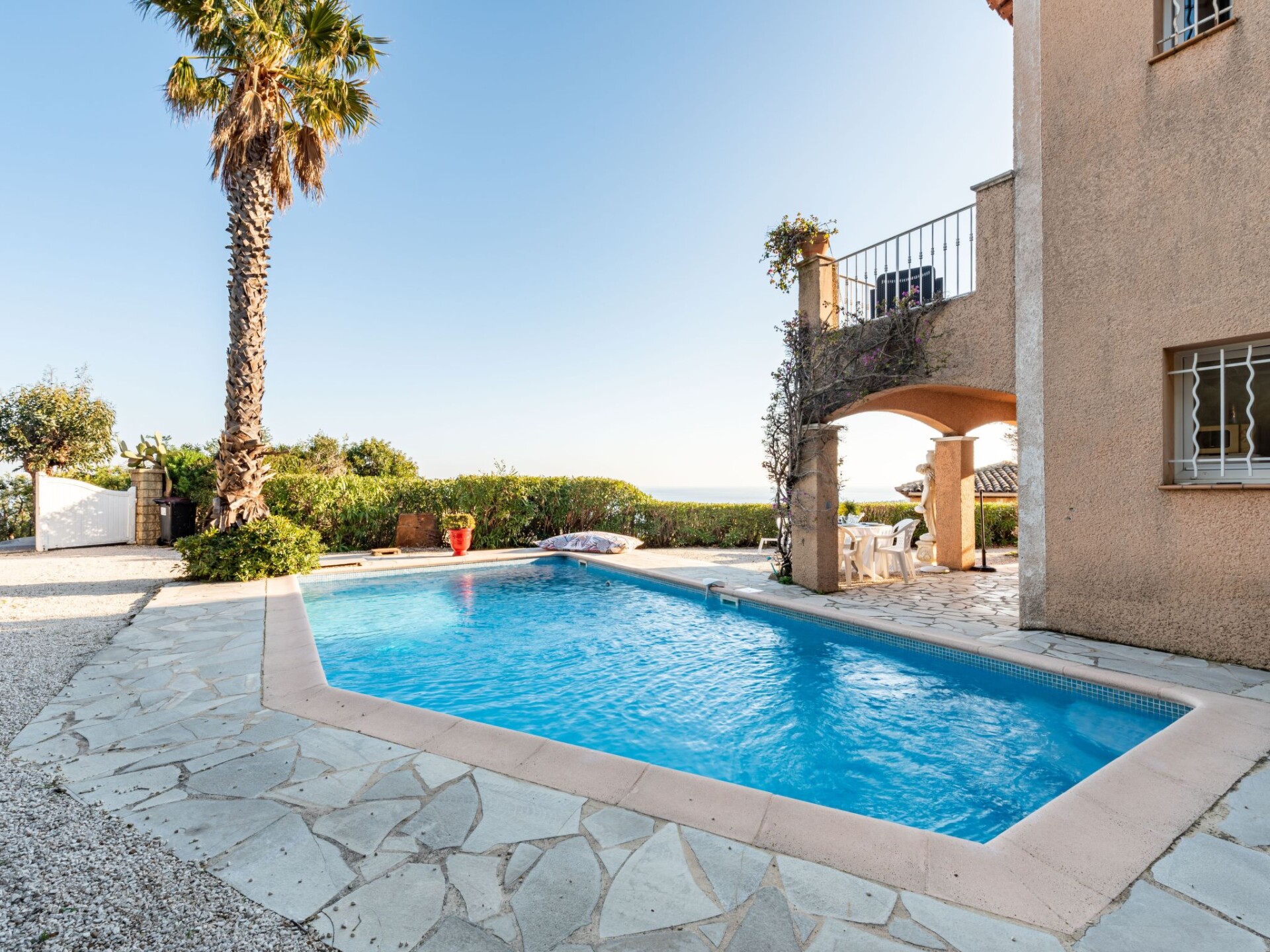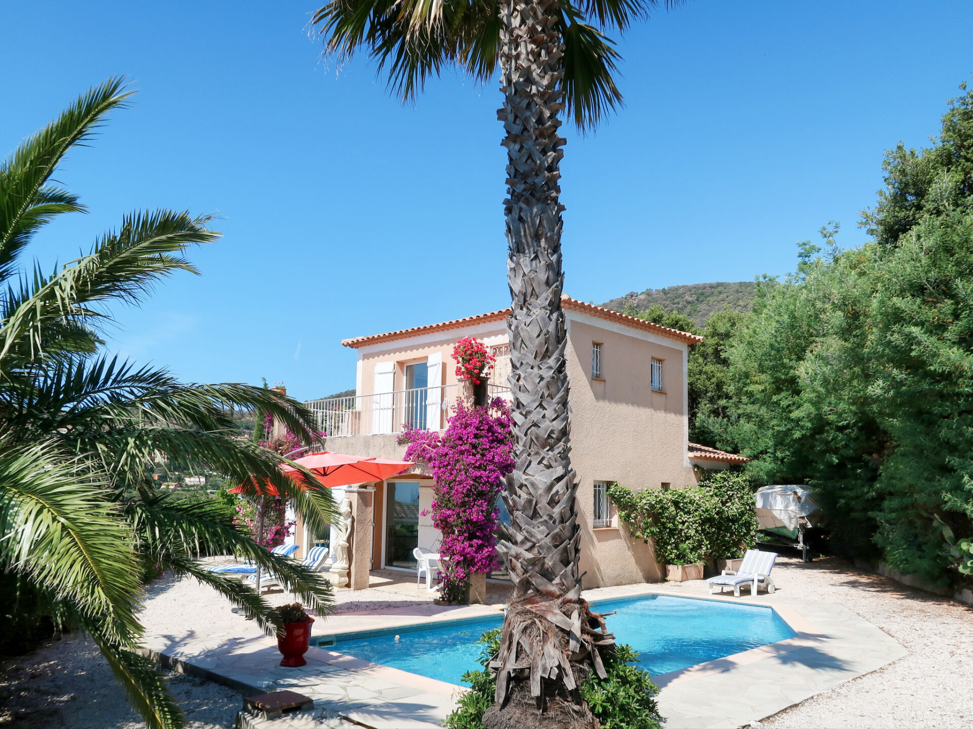 Gezellige, comfortabele eengezinswoning "Yalou", van 2 verdiepingen. In de plaats, 1.5 km van het centrum van Cavalaire-sur-Mer, aan de rand van de plaats, 19 km van het centrum van Saint-Tropez, rustige, zonnige ligging in een woonwijk, 2 km van zee, 2 km van het strand. Voor alleengebruik: terrein 600 m2, verzorgde tuin, openluchtzwembad hoekig (8 x 4 m, 120 - 170 cm diepte, seizoensgebonden beschikbaarheid: 02.Mei. - 17.Okt.) met alarminstallatie. Parkeerplaats op het terrein. Winkel 1.5 km, supermarkt 1.8 km, restaurant 1.5 km, bakkerij 1.8 km, bushalte "Halte routière" 1.4 km, park "Aqualand" 24 km, duikschool 2.4 km. Jachthaven 2.4 km, zeilschool 1.7 km, tennis 3.4 km, midgetgolf 14 km. Attracties in de buurt: Azur Park, Paint-ball 14 km, Azur Park, Paint-ball 16 km, St Tropez 19 km, Ste-Maxime 22 km. Wandelgebied Sentier du Fenouillet 3.4 km, Sentier du Littoral 2 km, Toulon 61 km. De sleuteloverdracht vindt plaats bij het agentschap Interhome in Cavalaire.