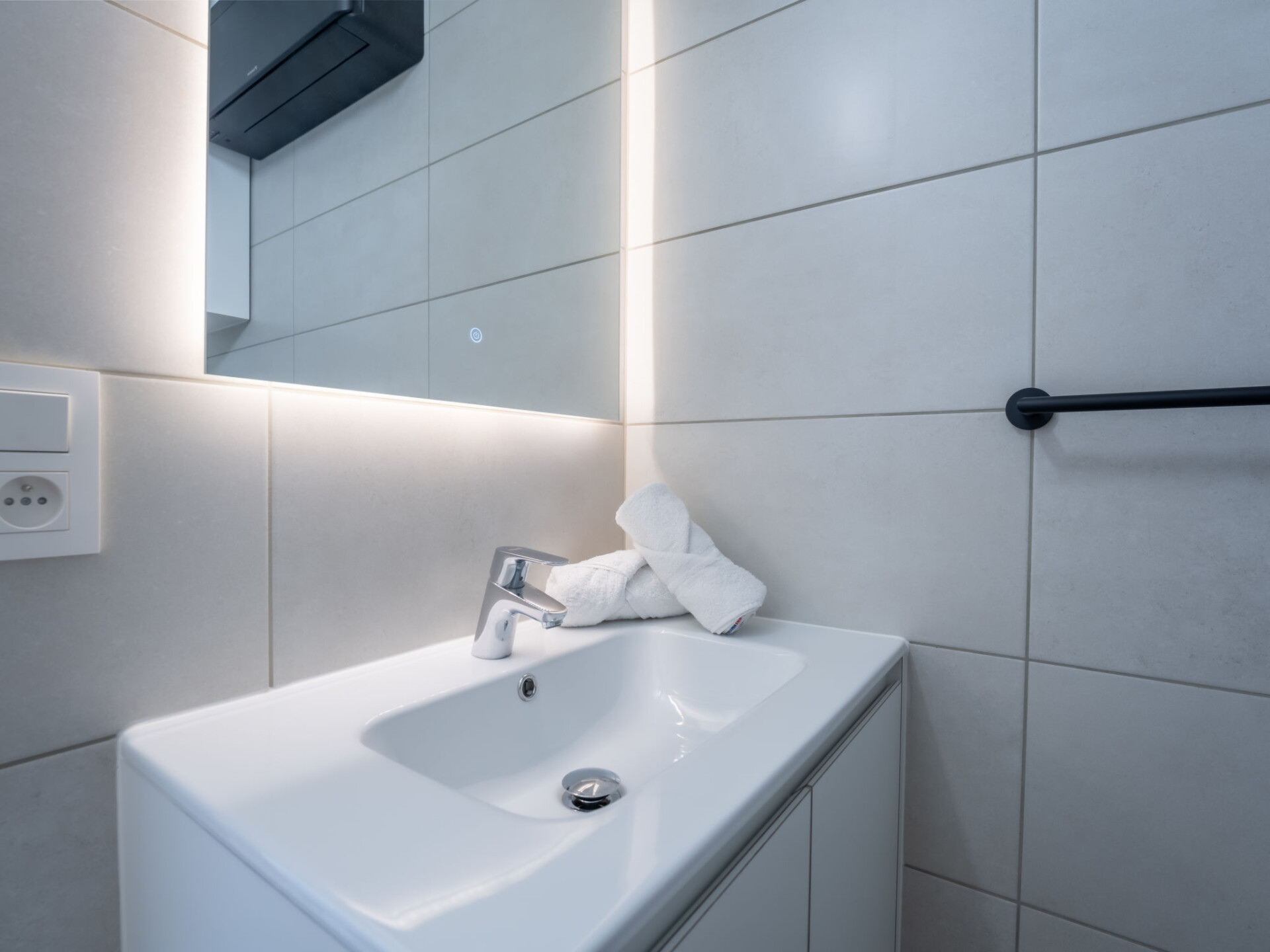 Residentie astrid: Flatgebouw "Residentie Astrid", van 9 verdiepingen. In het centrum van Bredene, 300 m van zee, 200 m van het strand. In het huis: lift, bergruimte voor fietsen. Openbare parkeerplaatsen 150 m in de straat extra. Winkel 100 m, supermarkt 300 m, restaurant, tramhalte 100 m, bushalte "De Lijn" 870 m, treinstation "Oostende" 6 km, veerboot 3 km, zandstrand "strand bredene" 200 m, park "Paelsteenveld" 50 m, fKK-strand 1.5 km. Golfterrein (18 holes) 2 km, surfschool 1 km. Attracties in de buurt: Markt (dinsdagmorgen) 50 m, Boudewijnpark 25 km, Plopsaland De Panne 47 km. Groepen jongeren niet toegestaan.