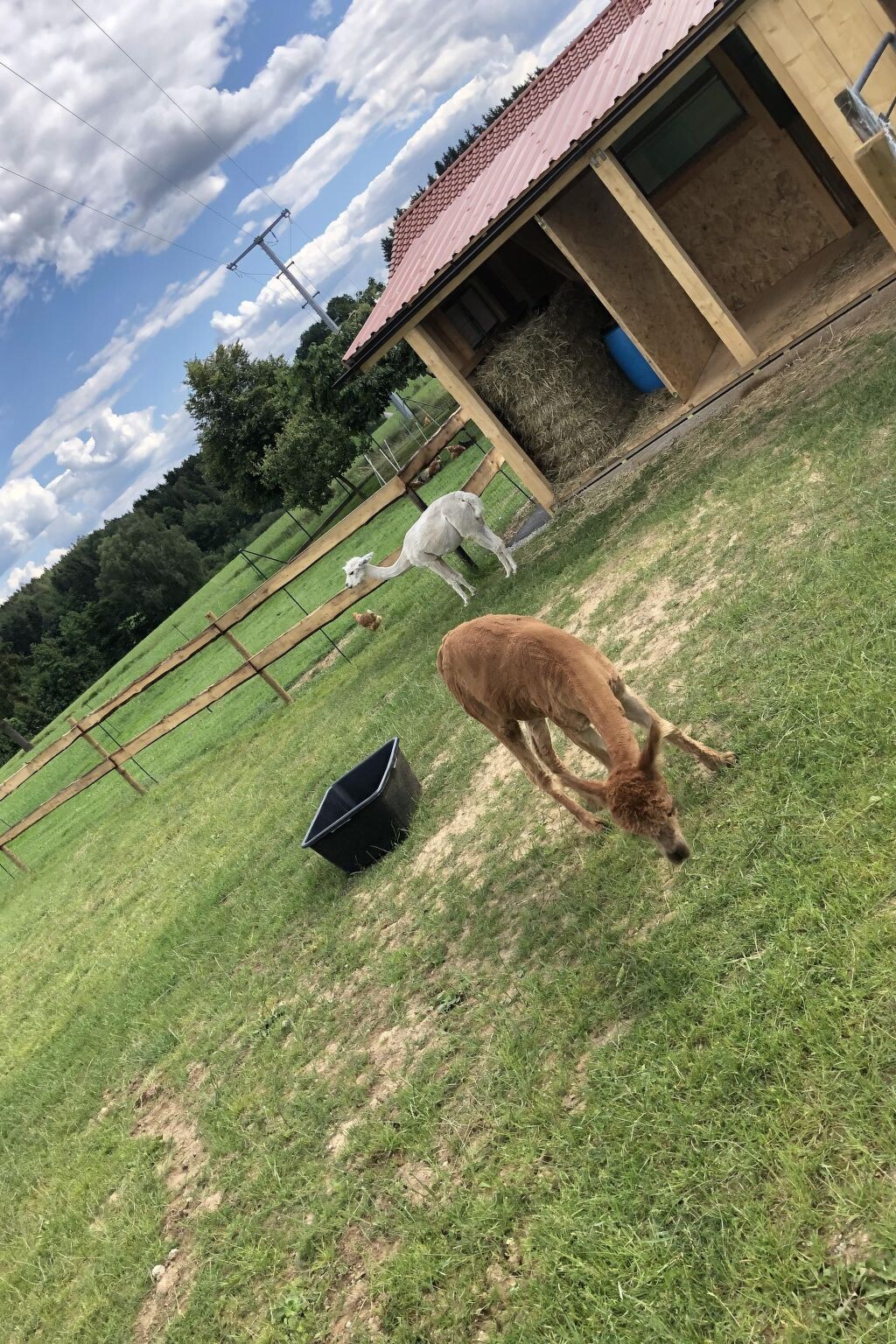 Maximaal 2 huisdieren/honden toegestaan. Holidays in the Upper Bavarian Forest Nature Park at the Alpakahof. Our two holiday homes invite you to relax in rural surroundings at the foot of the Zwirenzel (701 m above sea level). These are located in the immediate vicinity of the host house.House description: The 70 square metres of living space are arranged on two levels. The living and kitchen area is on the ground floor. On the first floor is the bathroom, a bedroom with a double bed and another bedroom with two single beds and a cot.A private garden area with a seating area, barbecue, campfire site, deckchairs etc. is at your disposal. Our house offers an ideal activity radius for your children. Our pets and farm animals (alpacas, dog, cats, merris, chickens....) would be delighted to meet your children. Trampoline, ropeway, outdoor table tennis, sand, swings, children's vehicle park and much more complete the offer, which is rounded off by a sauna house with outdoor shower. Sweat it out before the twilight pints...From a restricted area to a mountain biking and hiking Eldorado: the border strip on the Czech border offers an unrivalled unspoilt landscape. In our holiday homes you will find a detailed folder with many tour and hiking suggestions to the Czech Republic and the Bavarian Forest. We are happy to offer you a guided mountain bike or hiking tour to the Czech Republic. We are located directly on the Bavarian/Bohemian Schwarzachtal cycle path. A very special highlight - the alpaca hike...By the way: Your Co2 footprint is extremely low during a holiday with us: The electricity comes from our own PV system, the heat from the biogas from the neighbour, the train station is only 700 m away, you can charge your electric car directly from solar energy and last but not least: The wood for the sauna heater comes from our own forest.Our house is located at the gates of Waldmünchen (4 km), where you will find lakes, a leisure pool, all amenities and many tourist attractions. With the guest card you can use the entire public transport network. Train stop 700 metres away.