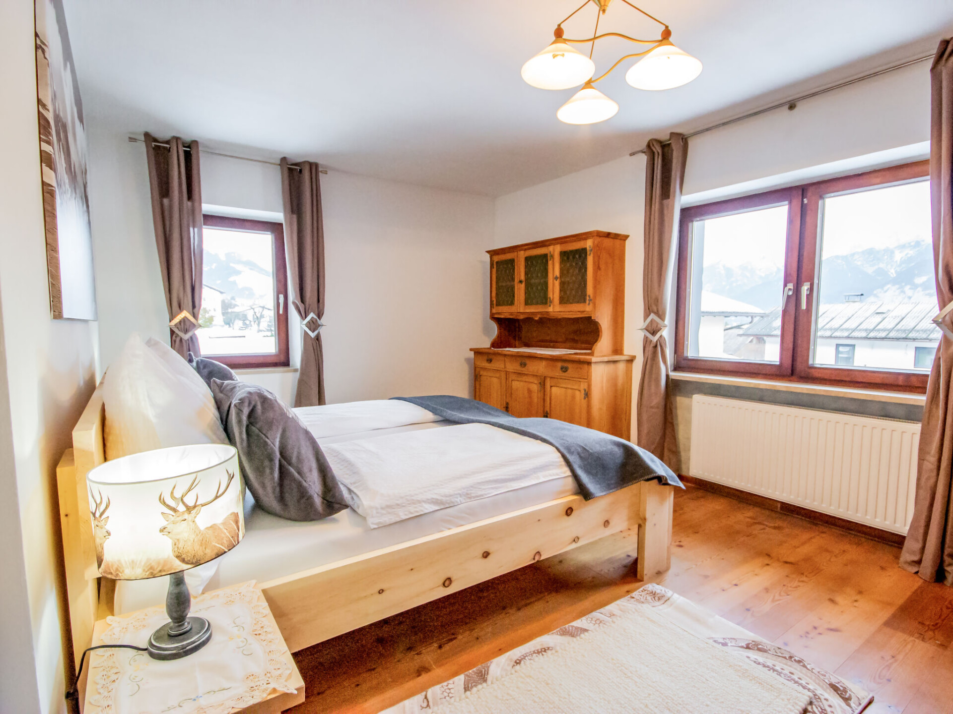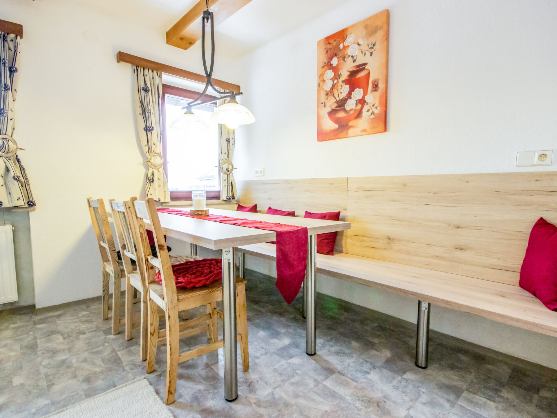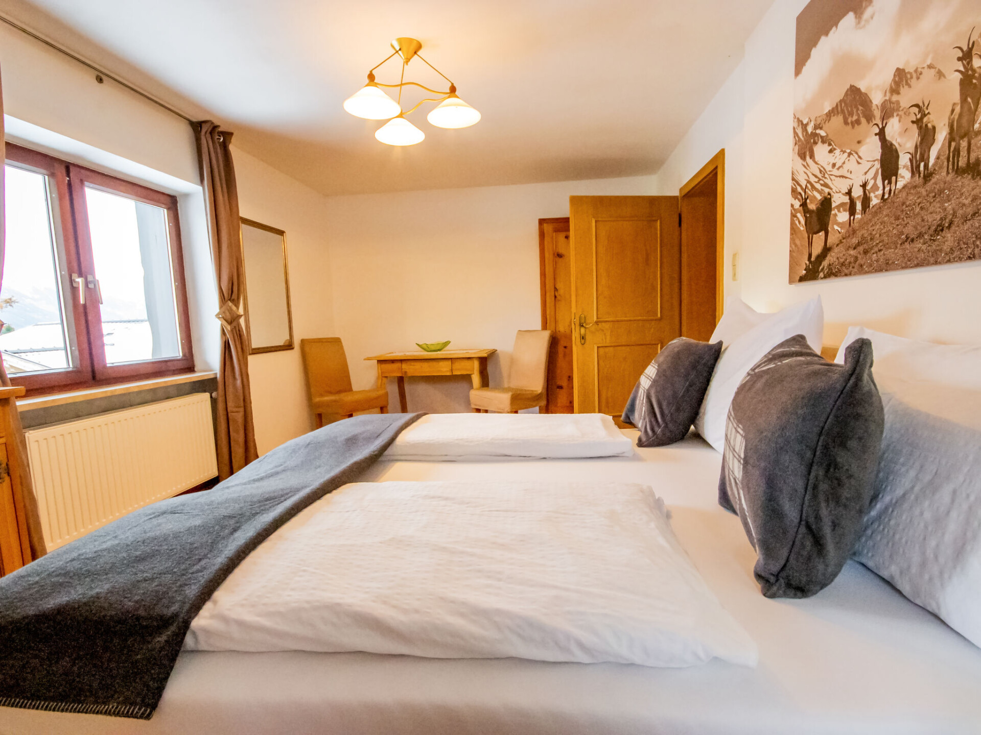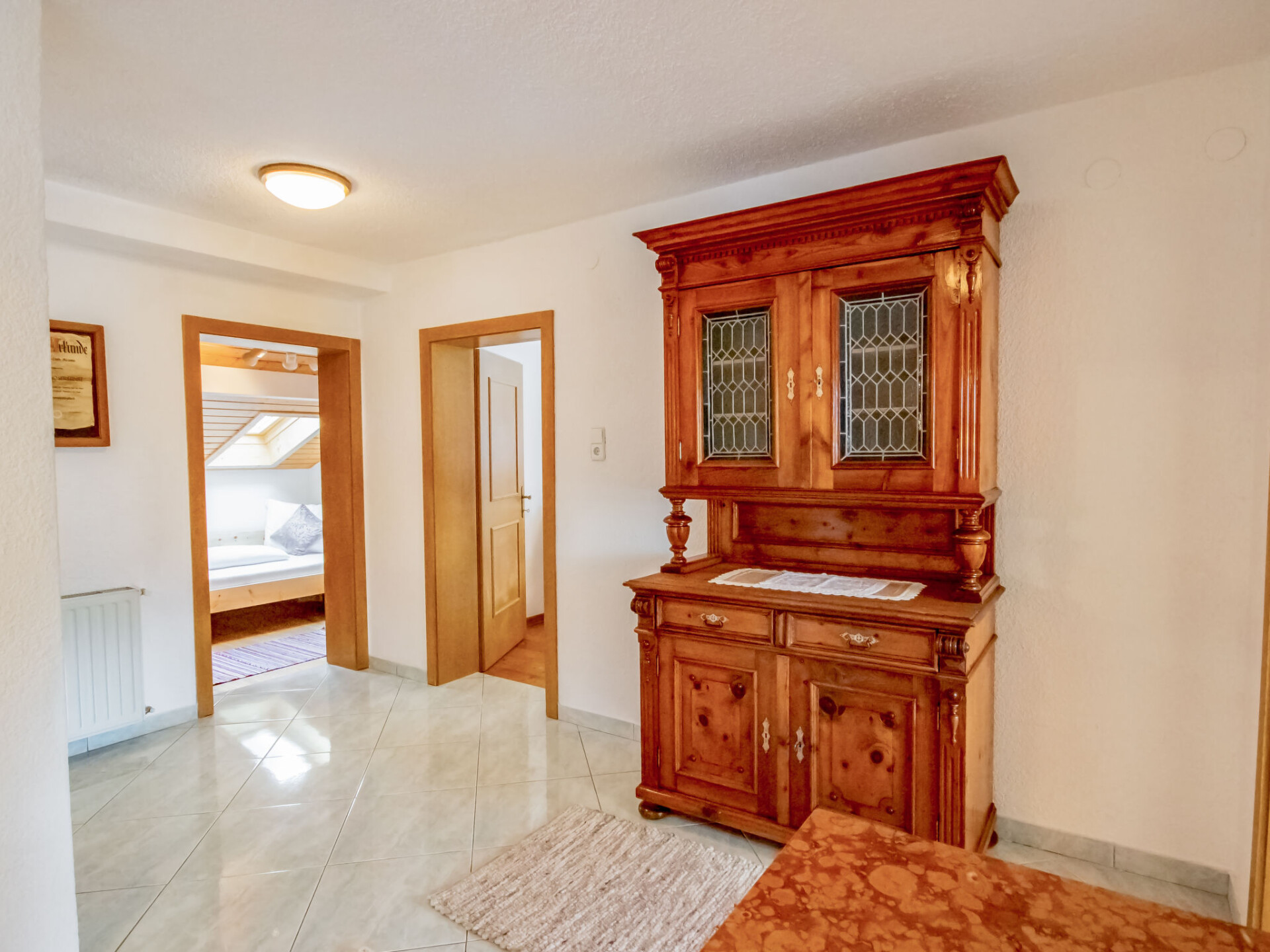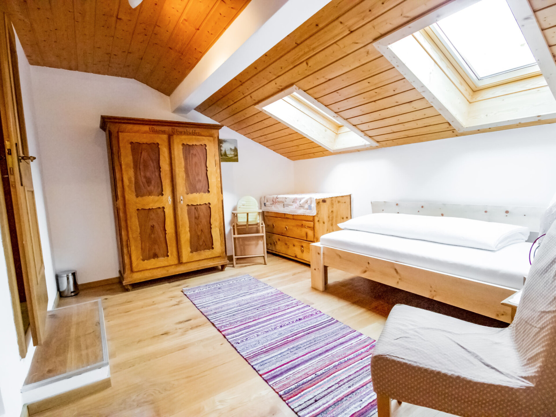 "Zirben Appartement Karin", appartement 4-kamers 100 m2 op de 1e verdieping. Het objekt is geschikt voor 7 volwassenen. Licht, volledig gerenoveerd in 2019, smaakvol ingericht: hal. Woon-/slaapkamer met 2 divanbedden en Sat-TV (Flatscreen TV). Uitgang naar het balkon. 2 2-pers. kamers. Doorgangskamer met afgeschuinde daken met 1 bed (90 cm, lengte 200 cm). Keuken (oven, afwasmachine, 4 keramische glas kookplaten, magnetron, elektrische koffiemachine). Uitgang naar het balkon. Bad/douche, bidet, aparte WC. Souterrain: douche/WC. Houten vloeren. Groot balkon, op het westen gelegen en op het zuiden gelegen, klein balkon en op het oosten gelegen. Balkonmeubilair. Uitzicht op de bergen en het landschap. Ter beschikking: wasmachine, droger, sauna (extra), strijkijzer. Internet (WiFi, gratis). Geschikt voor families. Niet rokers woning. Maximaal 2 huisdieren/honden toegestaan. Rookmelders, brandblusser, geen lift. Boekingen zijn alleen voor vakantiedoeleinden toegestaan.