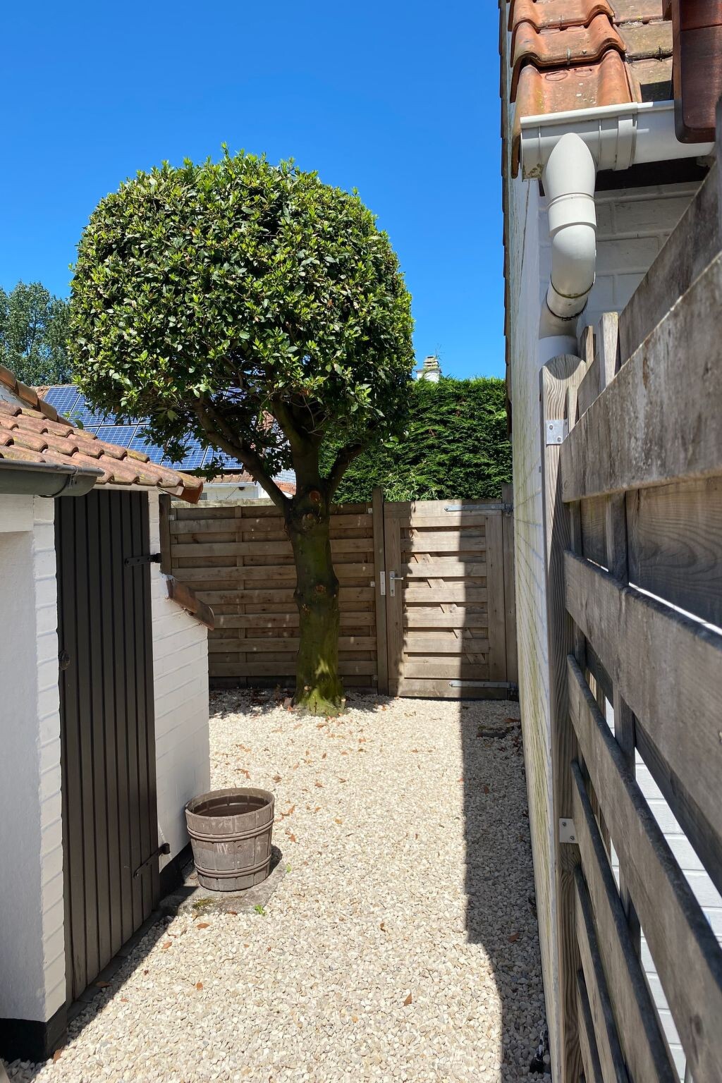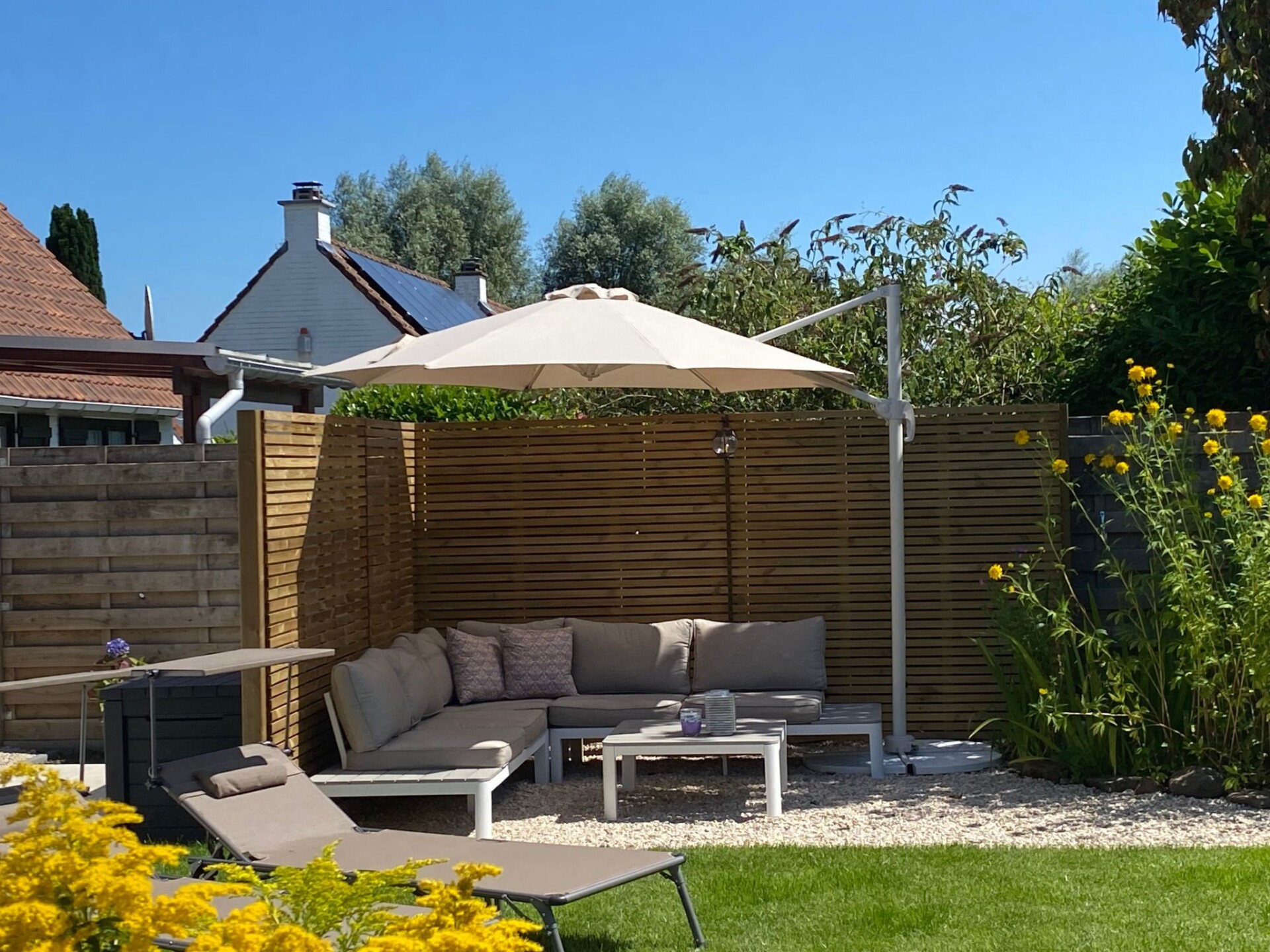 De buitenruimte van Zonnewind zal ongetwijfeld indruk op u maken. De zuidgerichte tuin heeft een ruim terras uitgerust met meubilair en een zonnescherm, ideaal voor ontspannende momenten en gezellige avonden. Dankzij de sfeervolle verlichting en de beschikbaarheid van een BBQ, is het de perfecte plek voor zowel rust als vertier. Veiligheid en gemak zijn gegarandeerd met een poortje dat directe toegang tot de parkeerplaats biedt, zodat u moeiteloos uw boodschappen kunt uitladen.