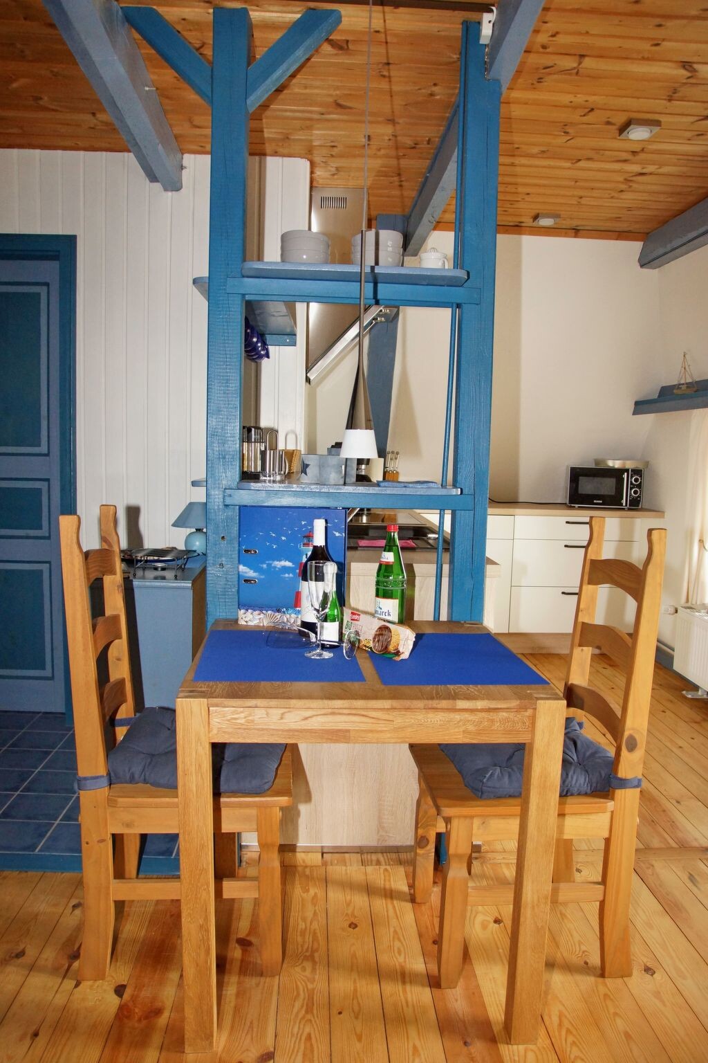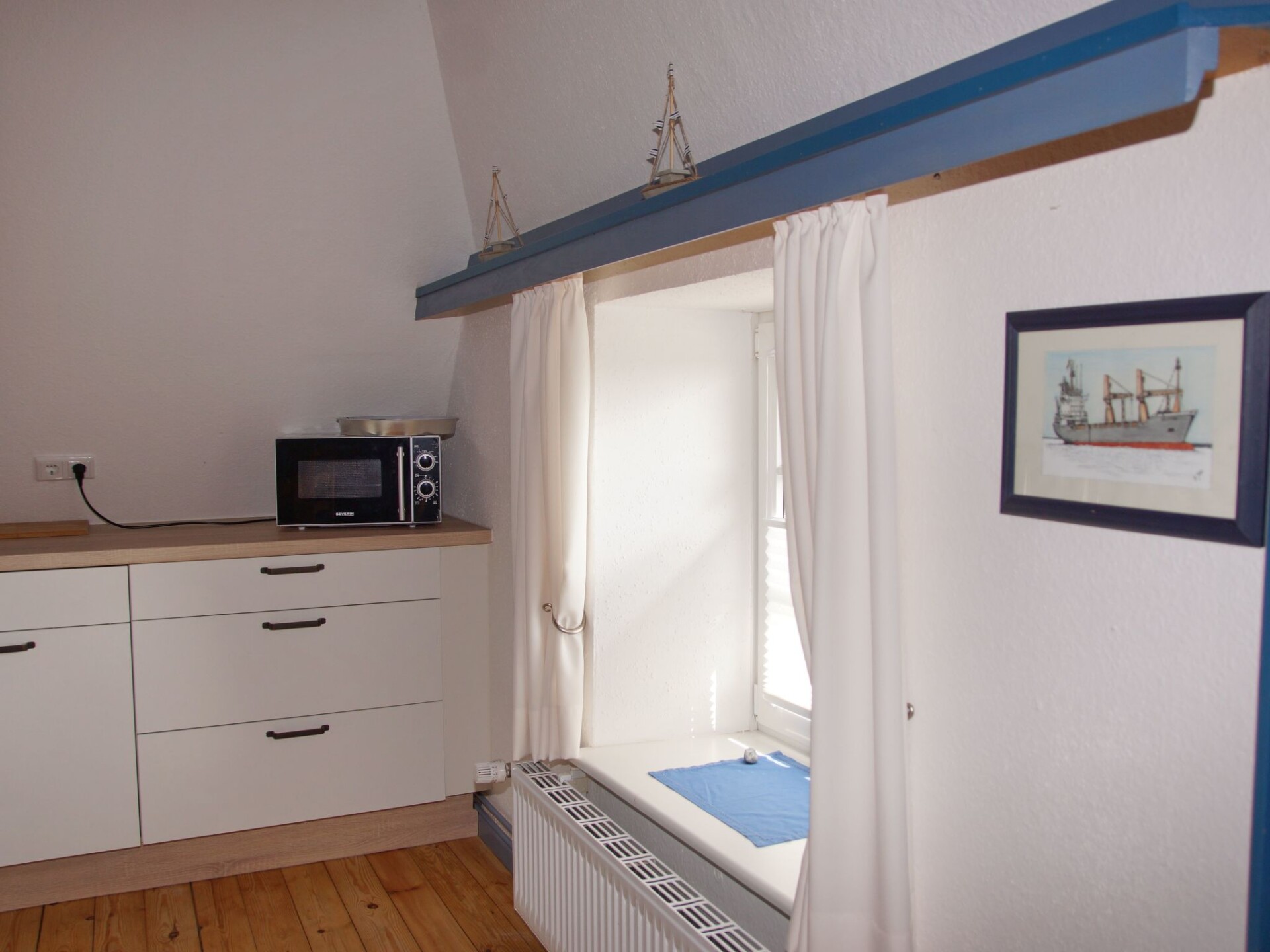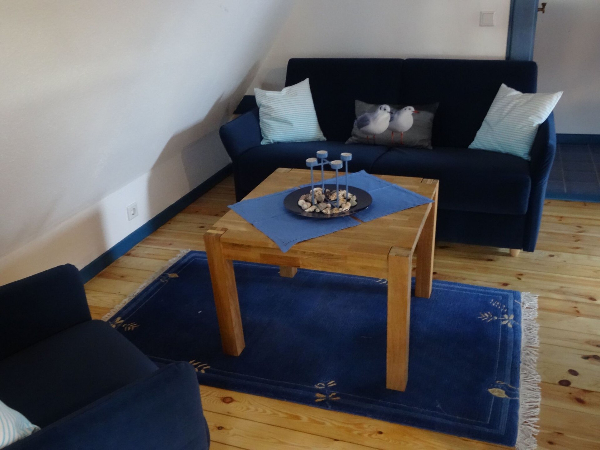 "Zum Leuchtturm" in the Georg Asmussen Haus (old school Pommerby) on the Baltic Sea is a cosy holiday flat with lots of comfort; free WiFi, 2 TVs!Relax in the beautiful, over 225 years old, historic school Pommerby between the Baltic Sea and the nature reserve Geltinger Birk. Relax in one of 3 flats in the "Georg Asmussen Haus": - Swim in the surf or in the calm sea; Collect shells and stones on the fine sandy beach or take a walk on the beach; Lie in the sun on the beach - Hike and watch birds, highland cattle and wild horses; - Cycle on the numerous cycle paths along the Baltic Sea; - Maybe just relax in the beautiful garden.Welcome to this beautiful thatched house! Your holiday home "Georg Asmussen House" (old school Pommerby) was built around 1798 as a Danish school on rocks. It was used as a school until 1966. It is the birthplace of the writer, engineer and social reformer Georg Asmussen. See also the website of the municipality of Pommerby. We acquired this house in 2015 and have brought it up to a contemporary standard and retained the charm of this historic house. The holiday flats were completely renovated and rebuilt in 2015 and 2016. Each holiday flat is individually and comfortably furnished and has 2 satellite TVs (one in the living room and one in a bedroom). The new fitted kitchens are equipped with high-quality electrical appliances. The original pitch pine floorboards, which have been exposed again, radiate a cosy atmosphere. The new and comfortable seating furniture matches the style of the house very well. Here you can make yourself really cosy in front of the crackling fireplace or the TV or ... . The holiday home has a 40 m² stairwell: in addition to a wonderful view from the top floor of the stairwell over meadows and fields, there is a cleaning room and a room for the washing machine and tumble dryer, which every guest can use free of charge. In the basement of the stairwell there are two shelves with a selection of books, games, DvDs and BluRays (including 3D). Let us surprise you. WLAN, electricity, heating and water are free of charge.In the garden you will find 4 garden chairs with table and deckchairs. Guests are surrounded by flowering plants and fruit trees.From April 22 sauna in the garden.The holiday flat is ideal for 2 people. The 2-room holiday flat (approx. 50 m²) is located on the upper floor of the beautiful thatched-roof house.Pommerby - a recognised resort - is situated between the Baltic Sea and the nature reserve "Geltinger Birk". Here you can swim in the Baltic Sea, go for a walk on the beautiful sandy beach and your children can dig in the sand or collect shells. You will find a nudist beach (approx. 2 km away) and a beach guarded by the DLRG during the season (approx. 3 km away). In the nature reserve "Geltinger Birk" you can hike and observe birds (e.g. comorants, sea eagles, wild geese, great white egrets, redshanks, lapwings, dunlins,...) and unspoilt nature (highland cattle, wild horses, intertwined trees, e.t.c.). The Falshöft lighthouse (approx. 2 km away), where over 300 couples get married every year, and the Charlotte mill can be used as a starting point for interesting hikes through the Geltinger Birk. The many hiking and cycling trails through the marvellous nature along the Baltic Sea or across meadows and fields invite you to enjoy relaxing hikes and cycling tours. You will find good restaurants in Pommerby and in Gelting (3.5 km). For your daily needs you will find a bakery, butcher, post office, supermarket, pharmacy and doctors in Gelting. Sailors will find many opportunities to practise their sport here. There are marinas in Gelting, Wackerballig and Maasholm. And there is also a sailing school in Maasholm. Excursion destinations in the area - Kappeln - a cute little town on the Schlei is the starting point for excursions, also by paddle steamer. - Maasholm - a small historic fishing village. It lies at the mouth of the Schlei. - Flensburg - a town with picturesque alleyways and merchants' courtyards, historic houses and museums and a small, beautiful and central harbour not far from the very long pedestrian zone with cosy shops, pubs and good restaurants. - Glücksburg - with the interesting moated castle. - Förde Therme in Glücksburg. - Schleswig - the Viking town: Gottorf Castle with baroque garden and globe house; cathedral with the famous Brüggemann altar; old town; Holm fishing settlement; Haithabu the Viking settlement. - Unewatt Museum Village - Bismarck Tower in Quern (viewing platform) - golf courses in Glücksburg and Rabenkirchen - DenmarkHigh chair, travel cot and air cushion bed (extra bed) can also be booked. Sauna and towel sets can also be booked.Occasionally 2 older bicycles are also available. Otherwise there are at least 2 bike hire shops that will also bring the bikes to the flat.