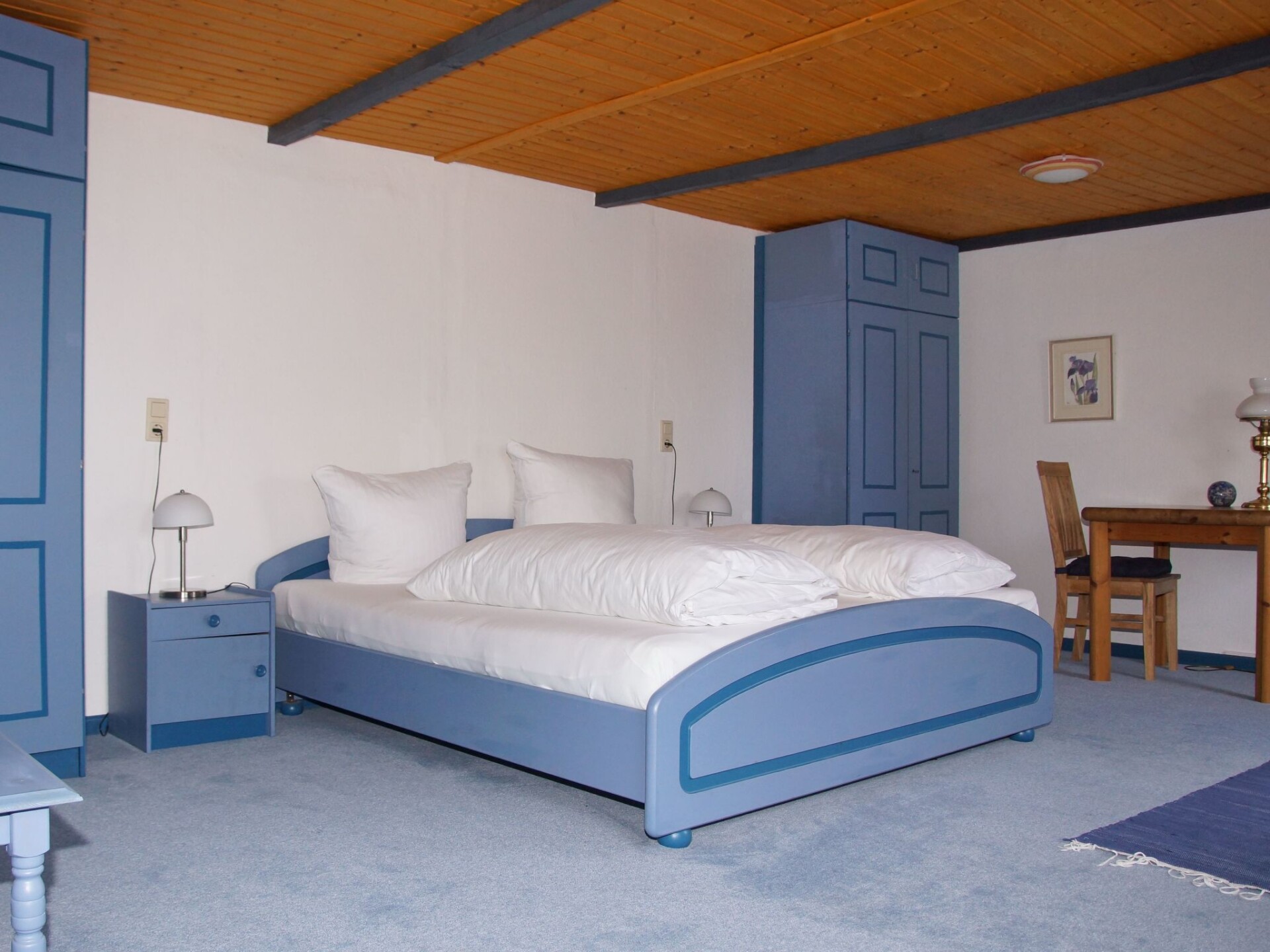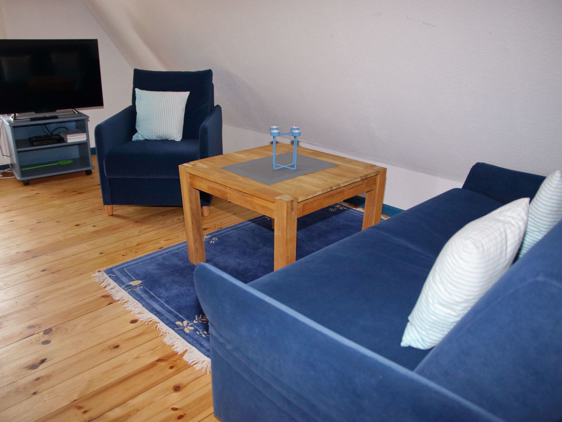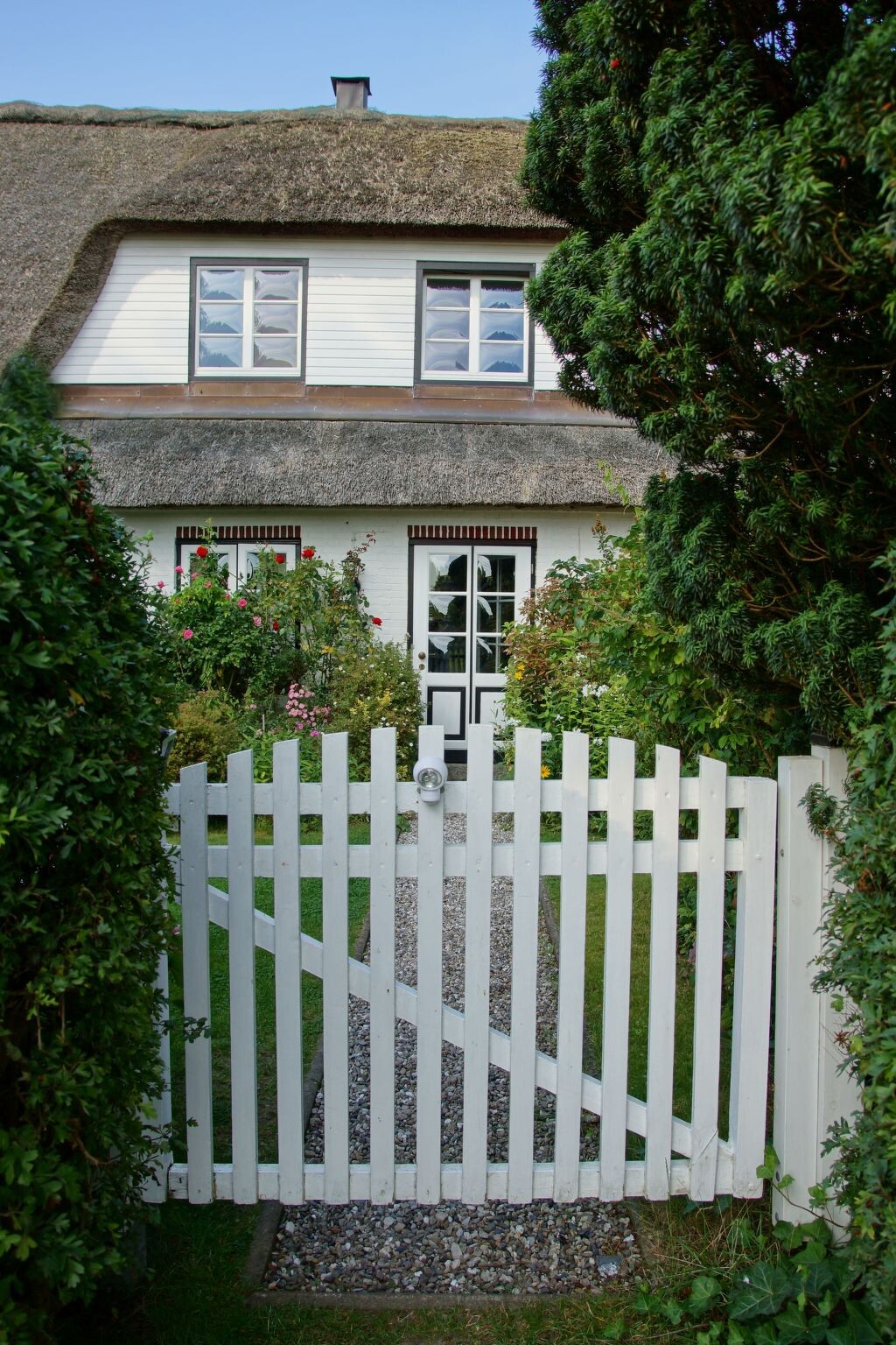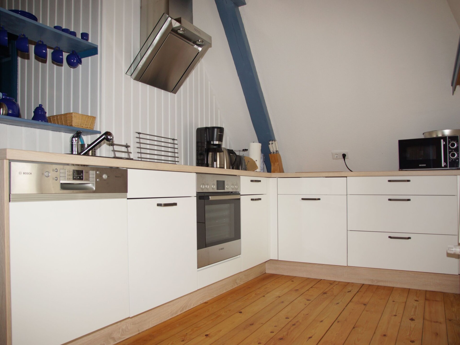 "Zum Leuchtturm" in the Georg Asmussen Haus (old school Pommerby) on the Baltic Sea is a cosy holiday flat with lots of comfort; free WiFi, 2 TVs!Relax in the beautiful, over 225 years old, historic school Pommerby between the Baltic Sea and the nature reserve Geltinger Birk. Relax in one of 3 flats in the "Georg Asmussen Haus": - Swim in the surf or in the calm sea; Collect shells and stones on the fine sandy beach or take a walk on the beach; Lie in the sun on the beach - Hike and watch birds, highland cattle and wild horses; - Cycle on the numerous cycle paths along the Baltic Sea; - Maybe just relax in the beautiful garden.Welcome to this beautiful thatched house! Your holiday home "Georg Asmussen House" (old school Pommerby) was built around 1798 as a Danish school on rocks. It was used as a school until 1966. It is the birthplace of the writer, engineer and social reformer Georg Asmussen. See also the website of the municipality of Pommerby. We acquired this house in 2015 and have brought it up to a contemporary standard and retained the charm of this historic house. The holiday flats were completely renovated and rebuilt in 2015 and 2016. Each holiday flat is individually and comfortably furnished and has 2 satellite TVs (one in the living room and one in a bedroom). The new fitted kitchens are equipped with high-quality electrical appliances. The original pitch pine floorboards, which have been exposed again, radiate a cosy atmosphere. The new and comfortable seating furniture matches the style of the house very well. Here you can make yourself really cosy in front of the crackling fireplace or the TV or ... . The holiday home has a 40 m² stairwell: in addition to a wonderful view from the top floor of the stairwell over meadows and fields, there is a cleaning room and a room for the washing machine and tumble dryer, which every guest can use free of charge. In the basement of the stairwell there are two shelves with a selection of books, games, DvDs and BluRays (including 3D). Let us surprise you. WLAN, electricity, heating and water are free of charge.In the garden you will find 4 garden chairs with table and deckchairs. Guests are surrounded by flowering plants and fruit trees.From April 22 sauna in the garden.The holiday flat is ideal for 2 people. The 2-room holiday flat (approx. 50 m²) is located on the upper floor of the beautiful thatched-roof house.Pommerby - a recognised resort - is situated between the Baltic Sea and the nature reserve "Geltinger Birk". Here you can swim in the Baltic Sea, go for a walk on the beautiful sandy beach and your children can dig in the sand or collect shells. You will find a nudist beach (approx. 2 km away) and a beach guarded by the DLRG during the season (approx. 3 km away). In the nature reserve "Geltinger Birk" you can hike and observe birds (e.g. comorants, sea eagles, wild geese, great white egrets, redshanks, lapwings, dunlins,...) and unspoilt nature (highland cattle, wild horses, intertwined trees, e.t.c.). The Falshöft lighthouse (approx. 2 km away), where over 300 couples get married every year, and the Charlotte mill can be used as a starting point for interesting hikes through the Geltinger Birk. The many hiking and cycling trails through the marvellous nature along the Baltic Sea or across meadows and fields invite you to enjoy relaxing hikes and cycling tours. You will find good restaurants in Pommerby and in Gelting (3.5 km). For your daily needs you will find a bakery, butcher, post office, supermarket, pharmacy and doctors in Gelting. Sailors will find many opportunities to practise their sport here. There are marinas in Gelting, Wackerballig and Maasholm. And there is also a sailing school in Maasholm. Excursion destinations in the area - Kappeln - a cute little town on the Schlei is the starting point for excursions, also by paddle steamer. - Maasholm - a small historic fishing village. It lies at the mouth of the Schlei. - Flensburg - a town with picturesque alleyways and merchants' courtyards, historic houses and museums and a small, beautiful and central harbour not far from the very long pedestrian zone with cosy shops, pubs and good restaurants. - Glücksburg - with the interesting moated castle. - Förde Therme in Glücksburg. - Schleswig - the Viking town: Gottorf Castle with baroque garden and globe house; cathedral with the famous Brüggemann altar; old town; Holm fishing settlement; Haithabu the Viking settlement. - Unewatt Museum Village - Bismarck Tower in Quern (viewing platform) - golf courses in Glücksburg and Rabenkirchen - DenmarkHigh chair, travel cot and air cushion bed (extra bed) can also be booked. Sauna and towel sets can also be booked.Occasionally 2 older bicycles are also available. Otherwise there are at least 2 bike hire shops that will also bring the bikes to the flat.