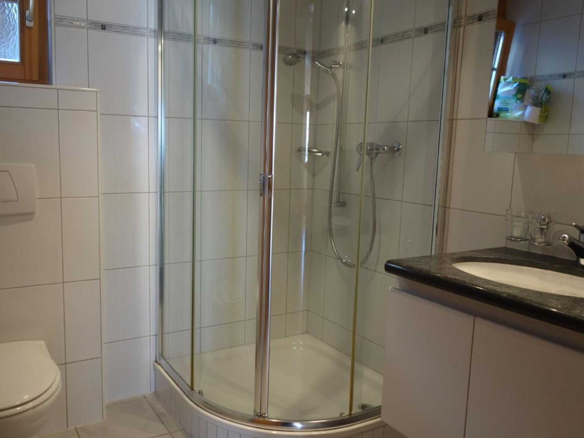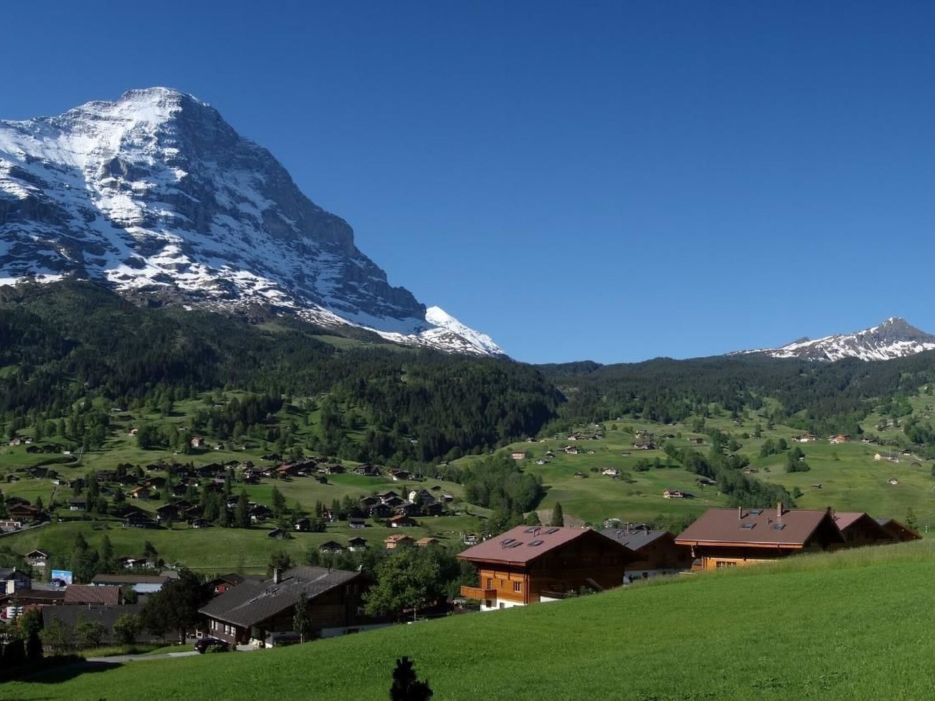 The 2.5-room ground floor flat in the "Chamonix" chalet offers an impressive view of the north face of the Eiger and impresses with its quiet location and proximity to the Grindelwald terminal. From here you can reach mountain railways, shopping facilities and public transport in just a few minutes on foot - ideal for guests who appreciate peace and quiet and proximity at the same time.The flat has around 50 m² of living space, a large terrace and offers comfortable accommodation for two people.Furnishings:Living area: Open-plan living and dining area with sofa (extendable), TV, radio, dining table.Kitchen: Fully equipped with ceramic hob, oven, dishwasher, filter coffee machine and fondue and raclette set.Bedroom: Large double bed, two bedside tables and wardrobe.Bathroom: Shower and WC.Outdoor area:From your own terrace you can enjoy a direct view of the north face of the Eiger - a unique panorama that invites you to linger. A seating area and table for four people as well as two deckchairs are available.Further information:- Indoor car park with year-round access (car park no. 10)- Ski room for shared use- WLAN- Pets are not allowed.- Non-smoking flatThe holiday flat combines relaxation, views and proximity to the mountain railways - the ideal starting point for a relaxing holiday in Grindelwald.