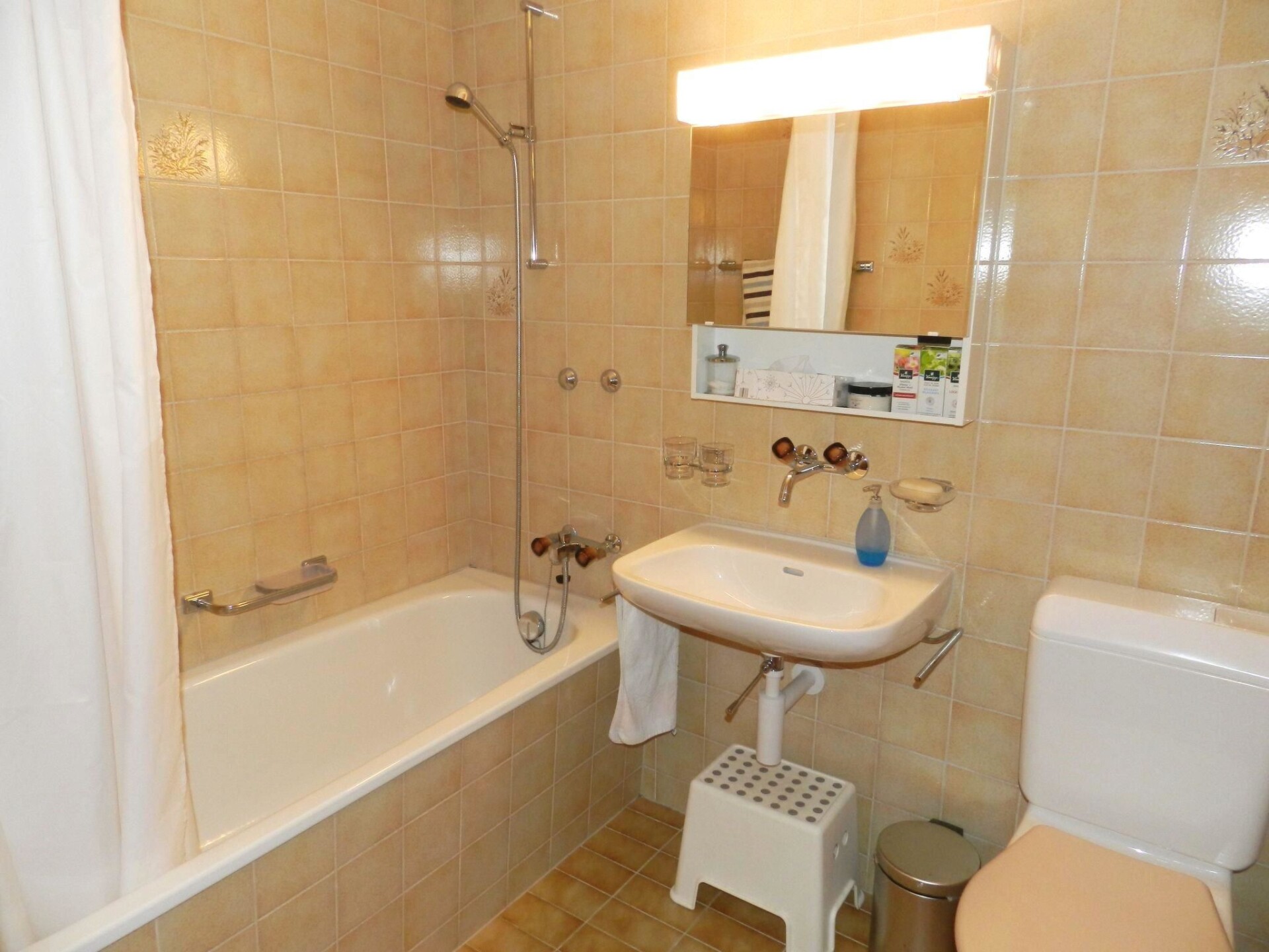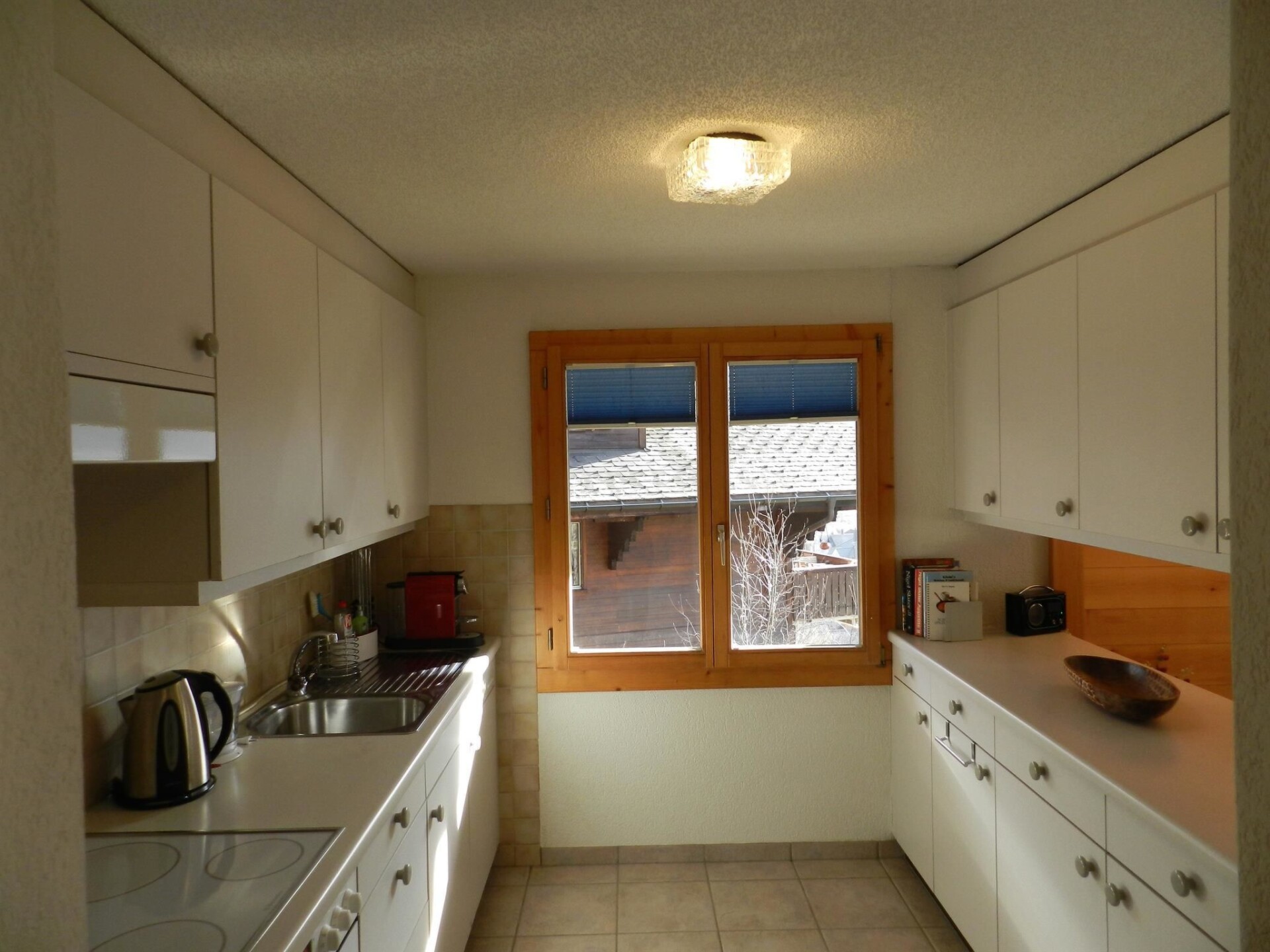 Living-/dining room with kitchen (among other things furnished with ceramic stove, oven, refrigerator with deep-freezer compartment, dishwasher, coffee machine with capsules (Nespresso) as well as a fondue-, raclette-set and table grill), dining table with 4 chairs, 2 sofas, TV and radio. 1 bathroom with bathtub/toilet. 1 bedroom with 1 double bed (180x200cm), big cupboard, 1 chair and 1 extra travel mattress. 1 room with pull-out sofa bed (130x200cm) for max. 2 younger children or max. 1 adult, office desk and wardrobe. WiFi. Travel baby cot (60x120cm) incl. bed linen and highchair available.