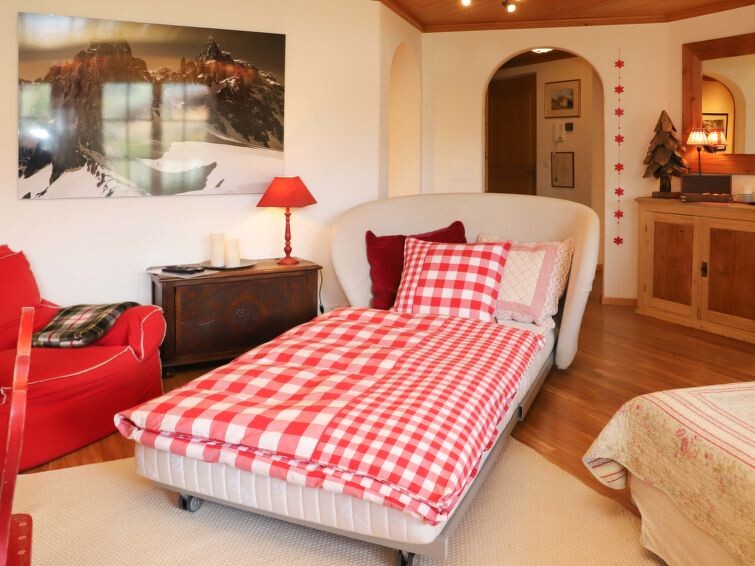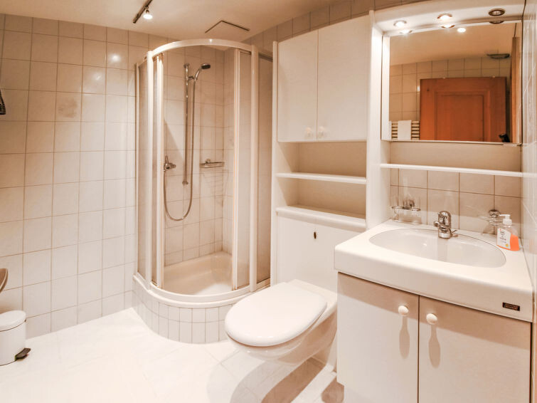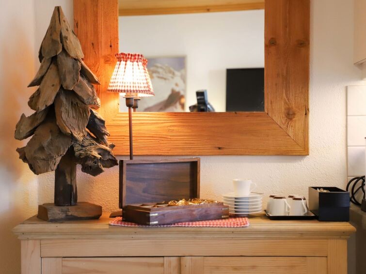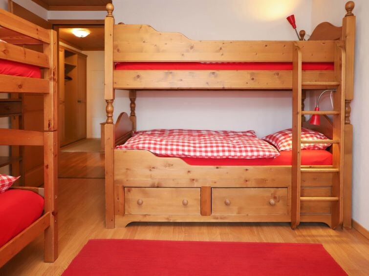 "Marie-Soleil Est", appartement 2-kamers 40 m2, op de begane grond. Ruim, comfortabel en gezellig ingericht: open woon-/eetkamer met 2 divanbedden, eettafel en Kabel-TV (Flatscreen TV), elektrische rolluiken. Uitgang naar het balkon. 1 kamer met 2 x 2 stapelbedden (90 cm, lengte 190 cm). Open keuken (oven, afwasmachine, 4 keramische glas kookplaten, waterkoker, elektrische koffiemachine, fondue Set (kaas)). Douche/WC. Vloerverwarming. Klein balkon, op het oosten gelegen. Balkonmeubilair. Mooi uitzicht op het landschap. Ter beschikking: haardroger. Internet (Internet (WiFi), gratis). Parkeerplaats (overdekt, 1 Auto). Niet rokers woning.