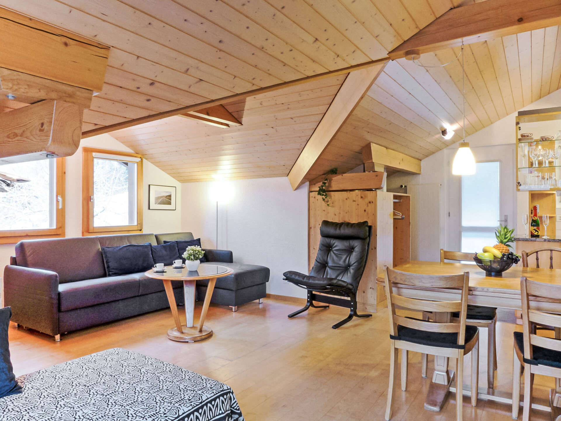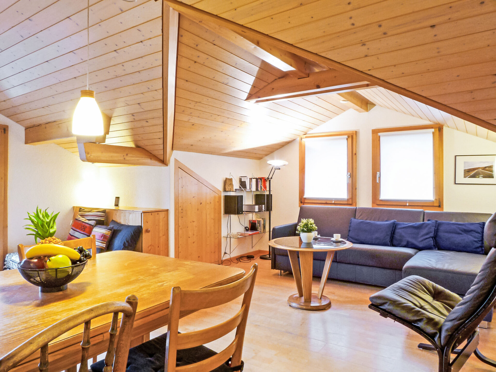 "Melodie Apt.W", appartement 2-kamers 50 m2, op de bovenste verdieping. Afgeschuinde daken, smaakvol en gezellig ingericht: woon-/eetkamer met 1 divanbed (160 cm, lengte 200 cm), 1 slaapplaats (1 x 90 cm, lengte 200 cm), Kabel-TV, radio en CD-speler. 1 kamer met 1 2-pers bed (1 x 160 cm, lengte 200 cm). Kleine, open keuken (oven, 4 keramische glas kookplaten, broodrooster, waterkoker, elektrische koffiemachine, pads voor de koffiemachine (Nespresso) extra, fondue Set (kaas)). Bad/douche/WC. 2 kleine balkons. Balkonmeubilair. Zeer mooi uitzicht op de bergen en het dal. Ter beschikking: strijkijzer, haardroger. Internet (Internet (WiFi), gratis). Niet rokers woning.