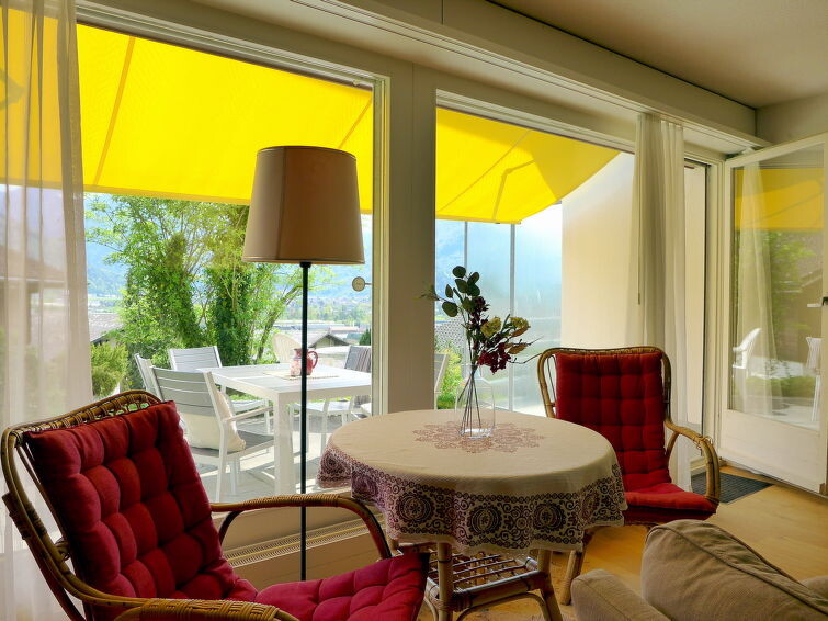 Goldswil 2 km van Interlaken: Zeer gezellige, comfortabele eengezinswoning "Salzhubelweg", van 2 verdiepingen, eenzijdig aangebouwd. Rustige, zonnige ligging tegen een helling, in een woonwijk, 1 km van het meer, aan een doodlopende weg. In het huis: centrale verwarming, wasmachine (voor medegebruik), droogruimte. Berging beschikbaar. Toegangsweg tot aan het huis. Trappenweg (15 treden) naar het huis. Parkeerplaats bij het huis. Levensmiddelenwinkel 500 m, supermarkt 2.4 km, restaurant 600 m, bushalte "Parkhotel" 200 m, treinstation "Interlaken Ost" 2.4 km, openluchtzwembad 3 km, overdekt zwembad 3 km, meer (zwemmen) "Burgseeli" 1 km. Golfterrein (18 holes) 5 km, tennis 3.5 km, midgetgolf 3.5 km, wandelroutes 50 m vanaf het huis, ski faciliteiten 20 km. Attracties in de buurt: Interlaken, Jungfraujoch, Schilthorn Piz Gloria. Bekende skigebieden kunnen gemakkelijk worden bereikt: Wengen-Männlichen, Grindelwald-First, Mürren-Schilthorn. Bekende meren kunnen gemakkelijk worden bereikt: Brienzersee. Wandelgebied Jungfrau Region. Geschikt voor families.