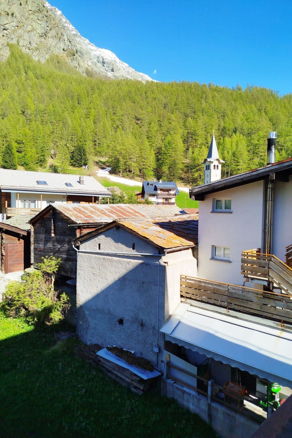 130 m2. Meer informatie beschikbaar bij de aanbieder: The Eldorado house is located directly at the village square of Saas Almagell. It is an ideal place for your holidays at any time of the year. Our apartment is located on the 2nd floor. The parking space for your car is just a few steps away. There are bus stops directly at the square (to Mattmarksee and Saas-Grund as well as to Saas-Fee). By the way: The post bus is included in the price with your Saastal card, which you receive during your stay. The cable car is about 3 minutes away. On the ground floor of the house, there is a sporting goods store. Around the square, you will find numerous restaurants, a post office, and shops. A few meters across the main street, there is a beautiful children's playground by the lake. An ideal location for all tourist excursions!