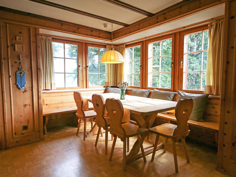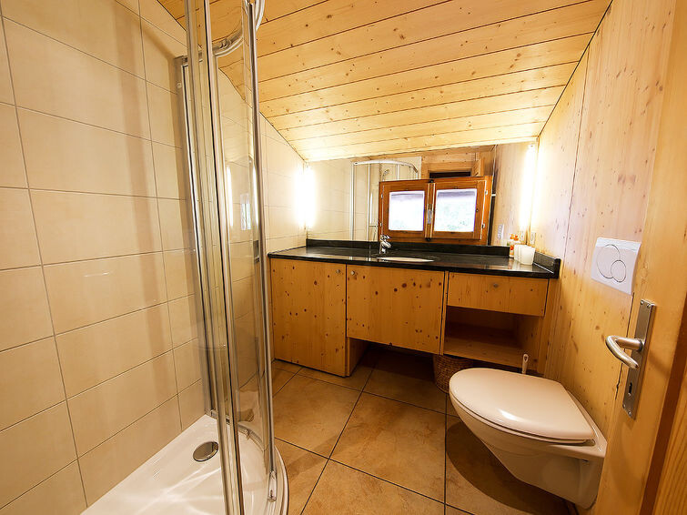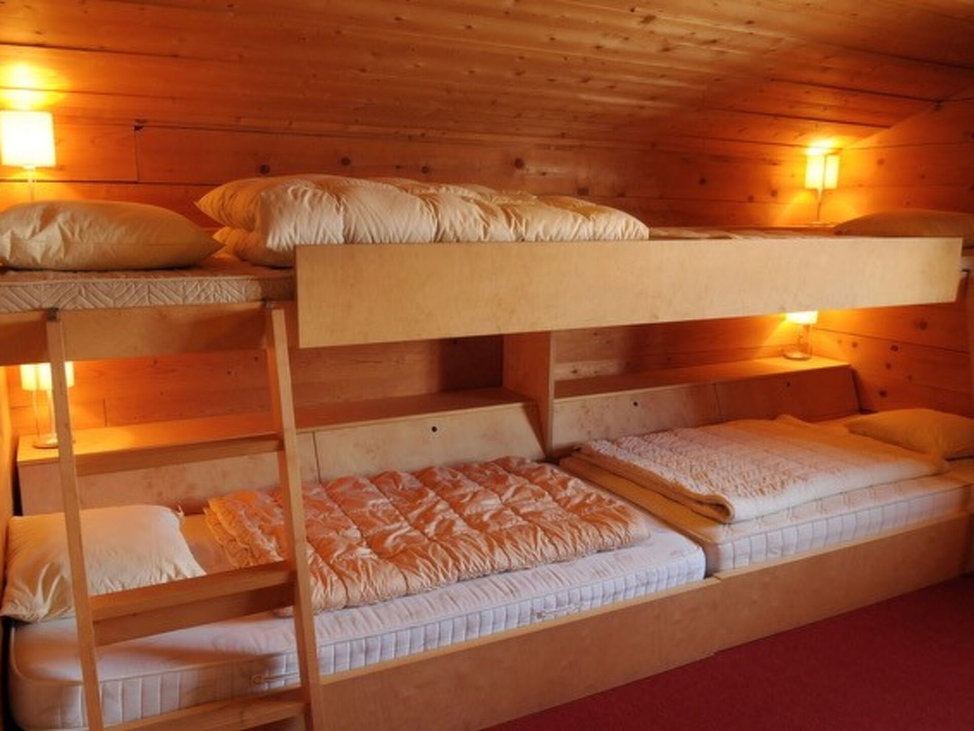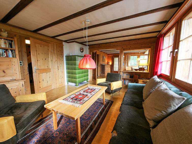 115 m2. Meer informatie beschikbaar bij de aanbieder: The large, pine-paneled living-dining room offers a magnificent view of Parsenn. The area is equipped with satellite TV, a cozy corner bench as well as an upholstered sofa. The beautiful tiled stove conveys a homey atmosphere. The modern kitchen is fully equipped and also has a microwave, a toaster, fondue dishes, a blender, as well as a kettle, cafetiere and coffee filter for coffee preparation. There is a possibility to use Wi-Fi. On the 1st floor there are 3 bedrooms with 7-8 beds at your disposal. One large bedroom with a double bed, another bedroom with a collapsible double bed plus two more bunk beds and a very small sleeping chamber (6sqm) with a built-in bunk bed and a panoramic window with a view of the Gotschnagrat. Modern floor-heated shower with WC, washbasin and washing machine, and a separate WC.
