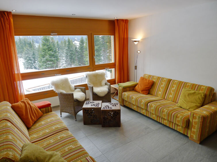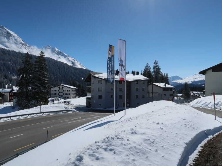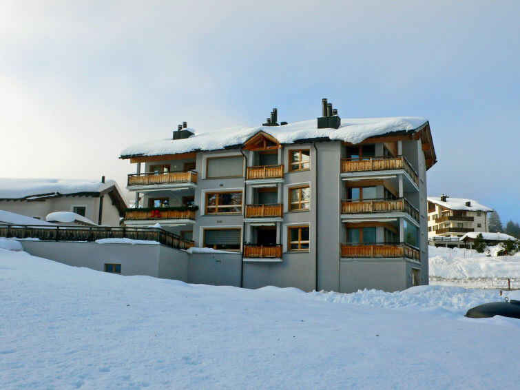 Valbella 3 km van Lenzerheide: Moderne, comfortabel appartementencomplex "Chesa Boffalora", 1.500 m boven zeeniveau, bouwjaar 2006. Aan de rand van de plaats, rustige, zonnige ligging, 1 km van het meer, 500 m van het skigebied, aan een hoofdweg. In het huis: lift, berging voor ski's, centrale verwarming. Toegangsweg tot aan het huis (bergweg). Parkeerplaats nr. Brady, gemeenschappelijke garage bij het huis. Winkel 400 m, winkelcentrum 3 km, restaurant 200 m, bakkerij 20 m, café 20 m, bushalte 100 m, treinstation "Chur" 14 km, overdekt zwembad 2 km, meer Heidsee 1 km. Golfterrein (18 holes) 6 km, kabelbaan 1.5 km, skilift, stoeltjeslift, ski faciliteiten, skipisten, skiverhuur, skischool 500 m, rodelbaan 300 m, langlaufloipe 20 m, ijsbaan 2 km, kinderspeelplaats 500 m. Bekende skigebieden kunnen gemakkelijk worden bereikt: Lenzerheide - Arosa.