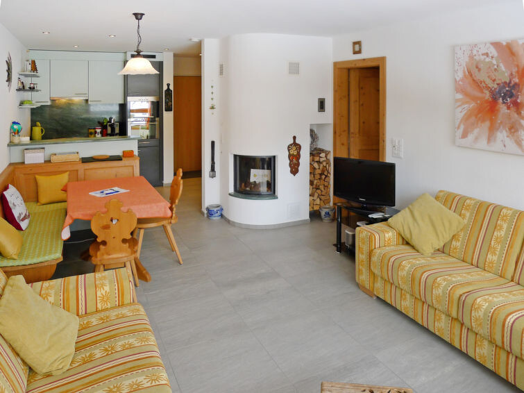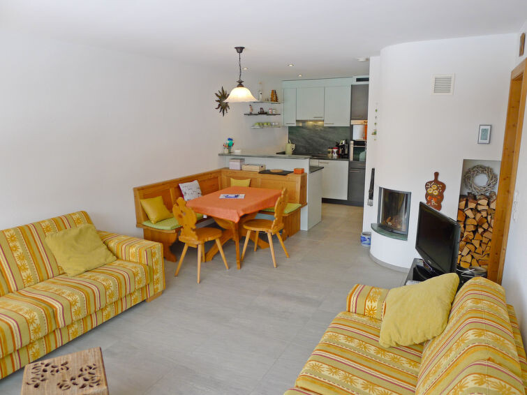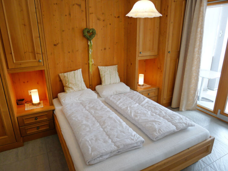 Appartement 2-kamers 61 m2 op de 2e verdieping. Comfortabel en gezellig ingericht: woon-/eetkamer met 1 2-pers divanbed en open haard (alleen decoratie), Sat-TV (Flatscreen TV), DVD. Uitgang naar het balkon. 1 2-pers. kamer met douche/WC. Uitgang naar het balkon. Open keuken (oven, afwasmachine, 4 keramische glas kookplaten, magnetron, elektrische koffiemachine, raclette oven, fondue Set (kaas)). Aparte WC. Vloerverwarming. Balkon. Terrasmeubelen. Mooi uitzicht op de bergen en het landschap. Ter beschikking: haardroger. Internet (Internet (WiFi), gratis). Garage bij het huis. Niet rokers woning.