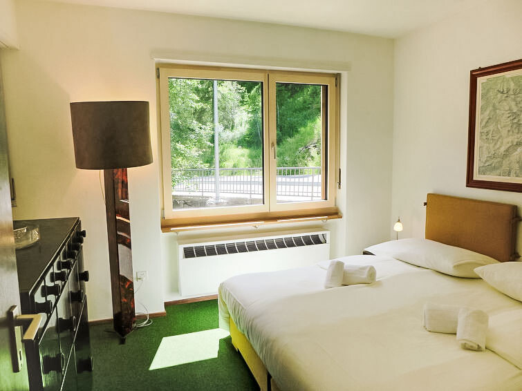 "Chesa Sonnalpine B 46", appartement 5-kamers 105 m2 op de 4e verdieping. Gedeeltelijk gerenoveerd in 2018, doelmatig ingericht: woon-/eetkamer met TV en radio. Uitgang naar het balkon, op het zuidoosten. 1 2-pers. kamer met 2 bedden (90 cm, lengte 190 cm). 1 kamer met 2 bedden (80 cm, lengte 190 cm). 1 kinderkamer met 2 bedden (90 cm, lengte 200 cm), 1 uitschuifbaar bed. Uitgang naar het balkon. 1 kamer met 1 2-pers bed (1 x 160 cm, lengte 190 cm). Kleine keuken 8 m2 (oven, afwasmachine, 4 inductiekookplaten, broodrooster, waterkoker, diepvriezer, elektrische koffiemachine, pads voor de koffiemachine (Nespresso) extra, fondue Set (chinese, kaas)). Bad/bidet/WC, aparte WC, bad/douche/WC. 2 balkons. Mooi uitzicht op het meer en de bergen. Ter beschikking: haardroger. Internet (WiFi, gratis). Garage nr. 46 (1 Auto), hoogte 183 cm, breedte 240 cm. Niet rokers woning. Maximaal 2 huisdieren/honden toegestaan. De garageplaats is gelimiteerd in hoogte en breedte.