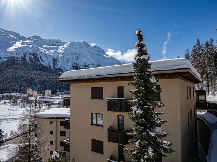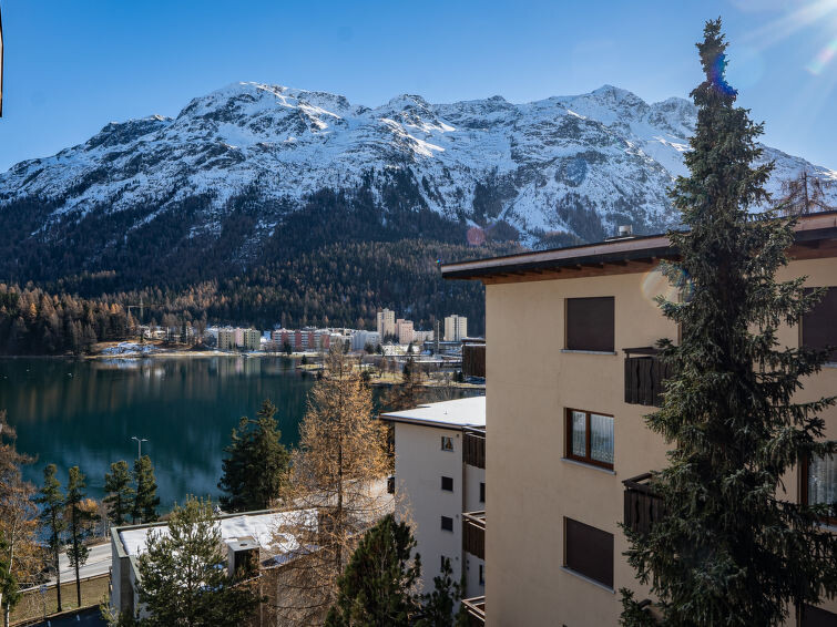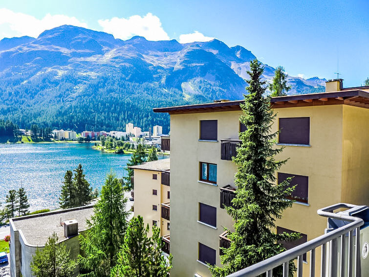 St. Moritz-Bad: Eenvoudig appartementencomplex "Chesa Sonnalpine B", van 8 verdiepingen, bouwjaar 1968. In de plaats, 800 m van het centrum van St.Moritz-Bad, 600 m van het centrum van St.Moritz-Dorf, centrale, drukke, zonnige ligging, 50 m van het meer, 1 km van het skigebied. In het huis: lift, centrale verwarming. Openbare parkeergarage op 600 m, openbare parkeerplaatsen 50 m. Winkel 260 m, supermarkt, restaurant 200 m, bakkerij 500 m, café 700 m, fietsverhuur 800 m, bushalte "St. Moritz Bad, Via Aruons" 180 m, treinstation 1.5 km, overdekt zwembad 1 km, thermaalbad "Heilbadzentrum St. Moritz" 1.2 km, meer St. Moritzer See 50 m. Golfterrein (18 holes) 7.7 km, tennis 1.5 km, tennishal 1.5 km, midgetgolf 1 km, manege 2.8 km, wandelroutes 100 m vanaf het huis, fietspad 1 km, kabelbaan 1.4 km, skilift 1 km, skipisten 1.4 km, skiverhuur 1 km, skibushalte 180 m, skischool 1 km, kinderskischool 1 km, rodelbaan 5.7 km, langlaufloipe 1 km, ijsbaan 500 m, kinderspeelplaats 1.3 km. Attracties in de buurt: Segantini Museum 1.2 km, Engadiner Museum 120 m, Mili Weber-Haus 2 km, Olympia Bob Run mit Museum 1.7 km, Nietzsche Museum in Sils-Maria 10 km. Bekende skigebieden kunnen gemakkelijk worden bereikt: Corviglia Piz Nair 1 km, Corvatsch - Furtschellas 7 km, Diavolezza - Lagalb 19 km. Bekende meren kunnen gemakkelijk worden bereikt: St. Moritzer See 50 m, Silvaplaner See 5.7 km, Silser See 10 km. Wandelgebied Stazerwald & Stazersee, Corviglia Piz Nair, Muottas Muragl. Laden en lossen van de baggage is mogelijk bij het huis. De sleuteloverdracht vindt plaats bij het agentschap Interhome in St. Moritz Bad. Vergelijkbare accommodaties kunnen worden geboekt.