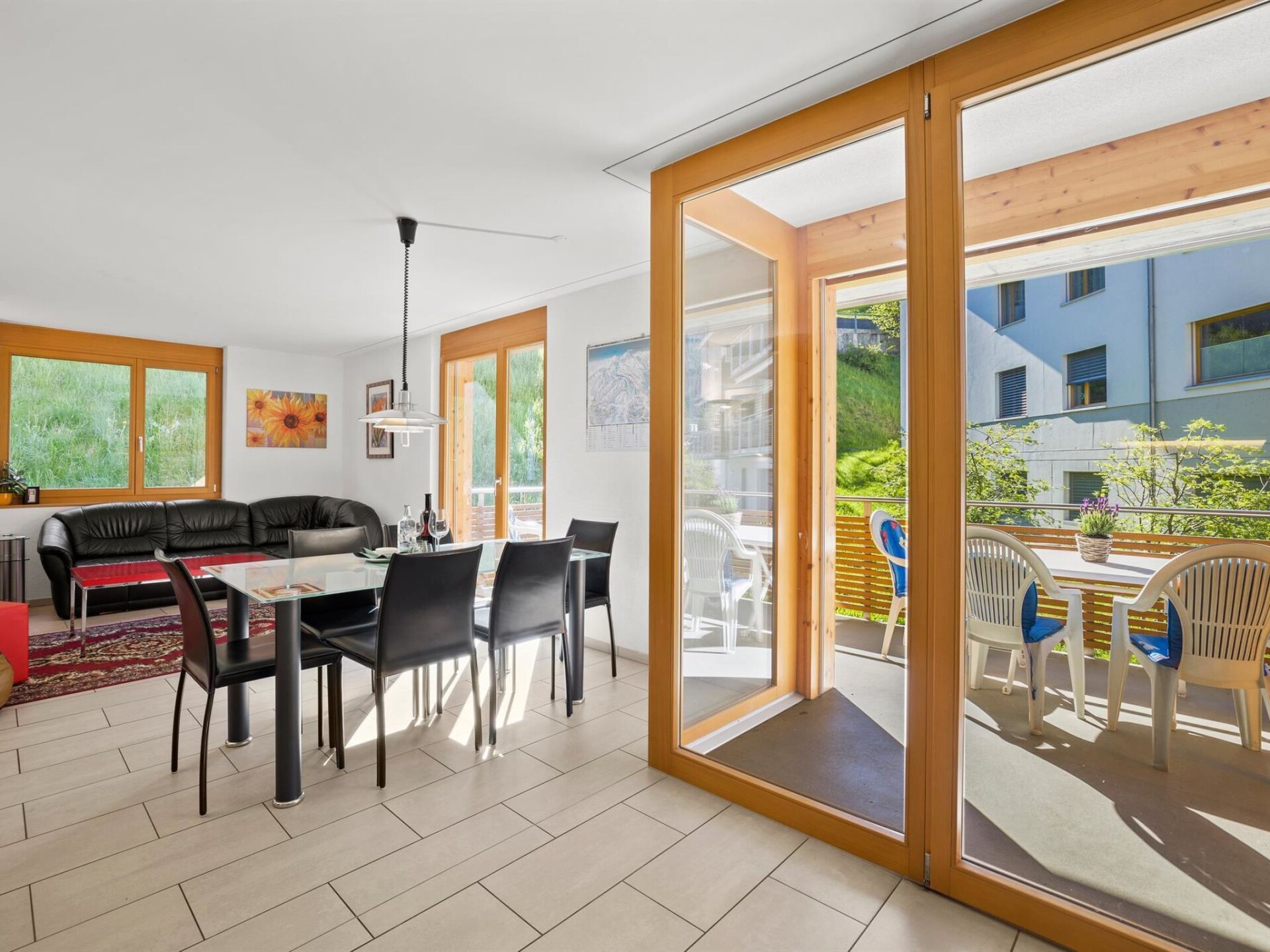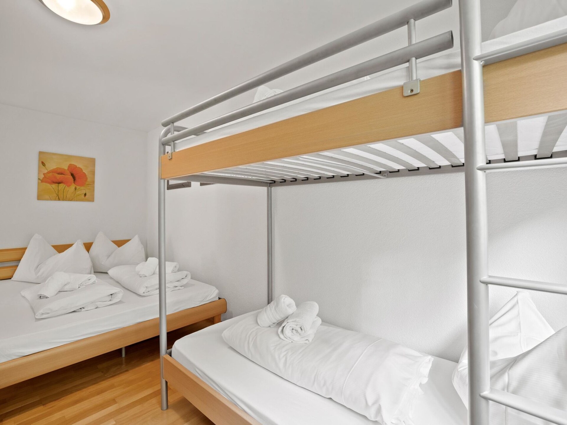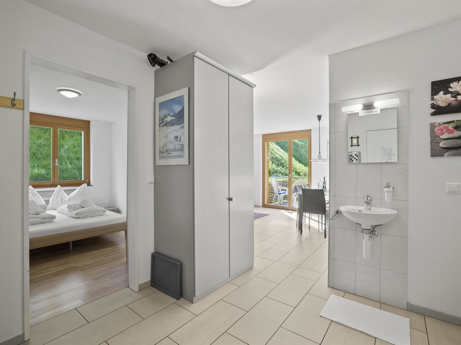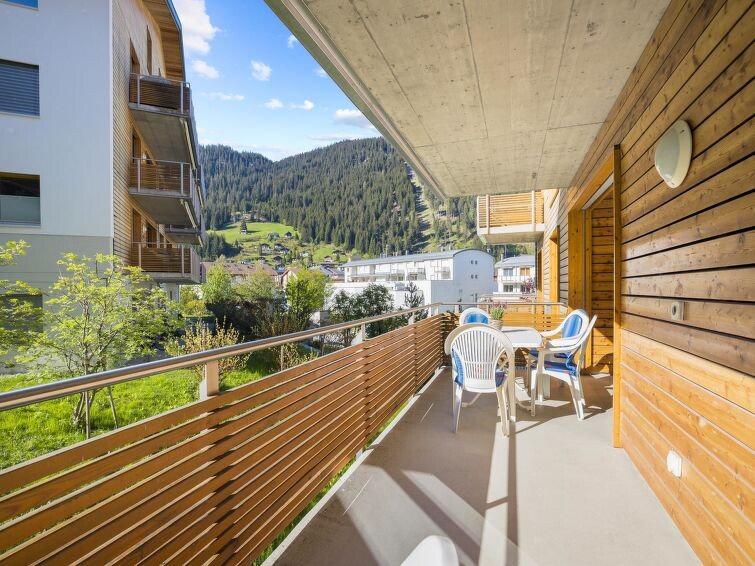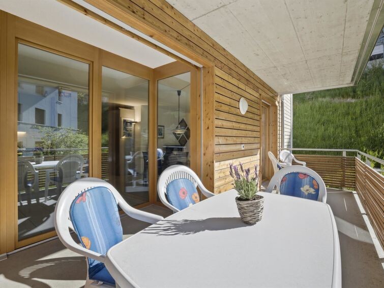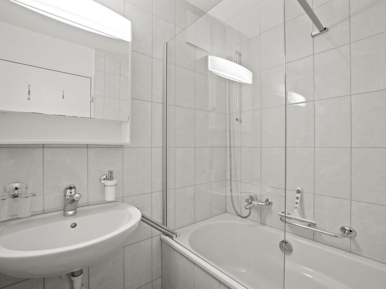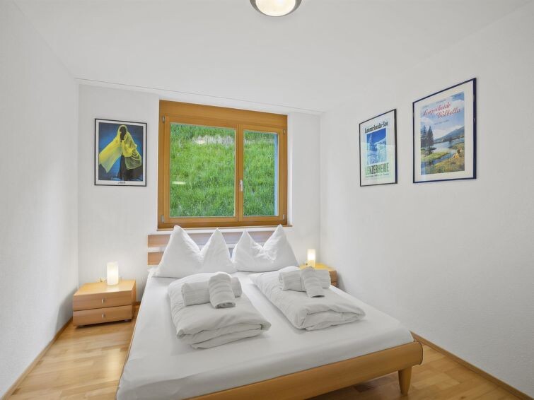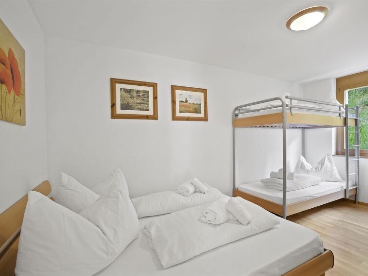 1st floor / elevator / WiFi yes / 1 room with double bed / 1 room with bunk bed and a small double bed / 1 bathroom with bathtub / 1 separate toilet The apartment is located directly behind the shopping facility "Coop" and a few minutes' walk from Migros, lift stations, and the sports shop. (Holiday apartment Raber is located in the same building but is only available for rent in the winter months)