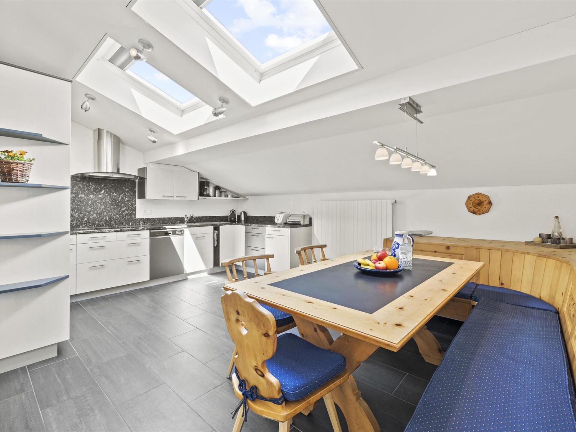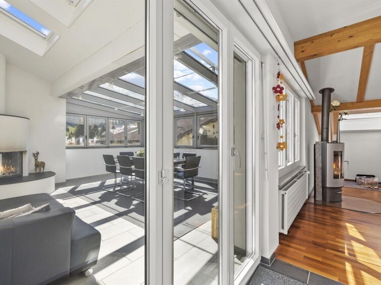 110 m2. Meer informatie beschikbaar bij de aanbieder: BESTZEIT HOLIDAY APPARTMENT Spacious 4.5 - room penthouse in Churwalden directly at the lift stations. The attic flat has a large kitchen, dining area and spacious living room as well as a winter garden with fireplace.