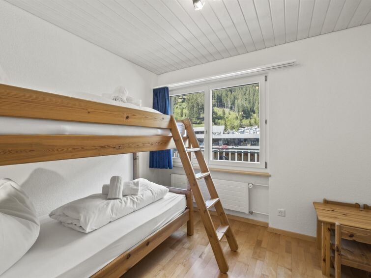 3rd floor/attic / no lift / WiFi yes / 2 rooms with double beds / 1 room with bunk beds / 1 bathroom with WC and shower / 1 bathroom with WC and bathtub The apartment is located directly in the center of Churwalden. The shopping options Coop, Migros, sports store, and mountain railways are within a few minutes' walk. (In the same building as the Ruggli holiday apartment)