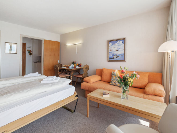 Flatgebouw "Promenade (Utoring)". In de plaats, 500 m van het centrum, rustige ligging. In het huis: salon, tafeltennis, kiosk, lift, berging voor ski's, centrale verwarming, wasmachine (voor medegebruik). Toegangsweg tot aan het huis (bergweg). In de winter sneeuwkettingen aanbevolen, 's winters 4x4 aanbevolen. Parkeerplaats (beperkt aantal, extra) bij het huis, gemeenschappelijke garage (extra), Openbare parkeergarage op 800 m. Winkel 500 m, bushalte "Arosa, Rathaus" 400 m, treinstation "Arosa" 1 km. Ski faciliteiten, skipisten, rodelbaan 500 m. Boodschappendienst mogelijk. Mooie wandelpaden vlak voor het huis. Let op: beperkt aantal parkeerplaatsen! Parkeerplaats of garageplaats moet vooraf worden gereserveerd bij de sleutelhouder: Parkeerplaats CHF 5.00/dag, overdekte parkeerplaats CHF 8.00/dag, garageplaats CHF 16.00/dag. Reserveringen bij de beheerder van het huis. Recreatieruimte met internetaansluiting (WiFi). Skipassen zijn verkrijgbaar bij de receptie.