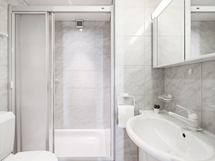 Appartement 1-kamer 28 m2 op de 3e verdieping. Gezellig ingericht: woon-/eetkamer met 2 kastbedden en Sat-TV (Flatscreen TV), radio. Uitgang naar het balkon. Kookhoek (oven, 2 keramische glas kookplaten). Douche/WC. Balkon, op het oosten gelegen. Balkonmeubilair. Mooi uitzicht op de bergen, het landschap en de plaats. Ter beschikking: Internet (Internet (WiFi), gratis). Niet rokers woning.