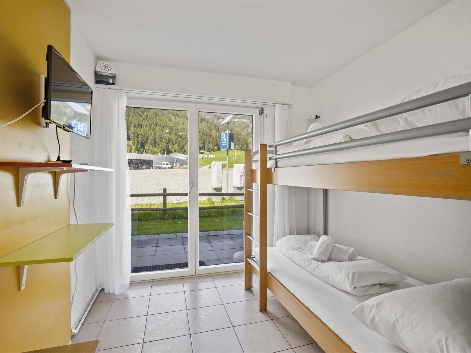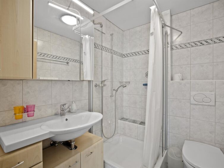 1st floor and ground floor at the back / no lift / Wifi yes / 1 room with double bed / 1 room with bunk bed / 1 room with two single beds / 1 bathroom with WC and shower / 1 bathroom with WC and bathtub Additionally, the apartment is located directly in the center of Churwalden. The shopping options Coop, Migros, sporting goods store, and mountain lifts are within a few minutes' walk. (In the same building as the holiday apartment Hutter)