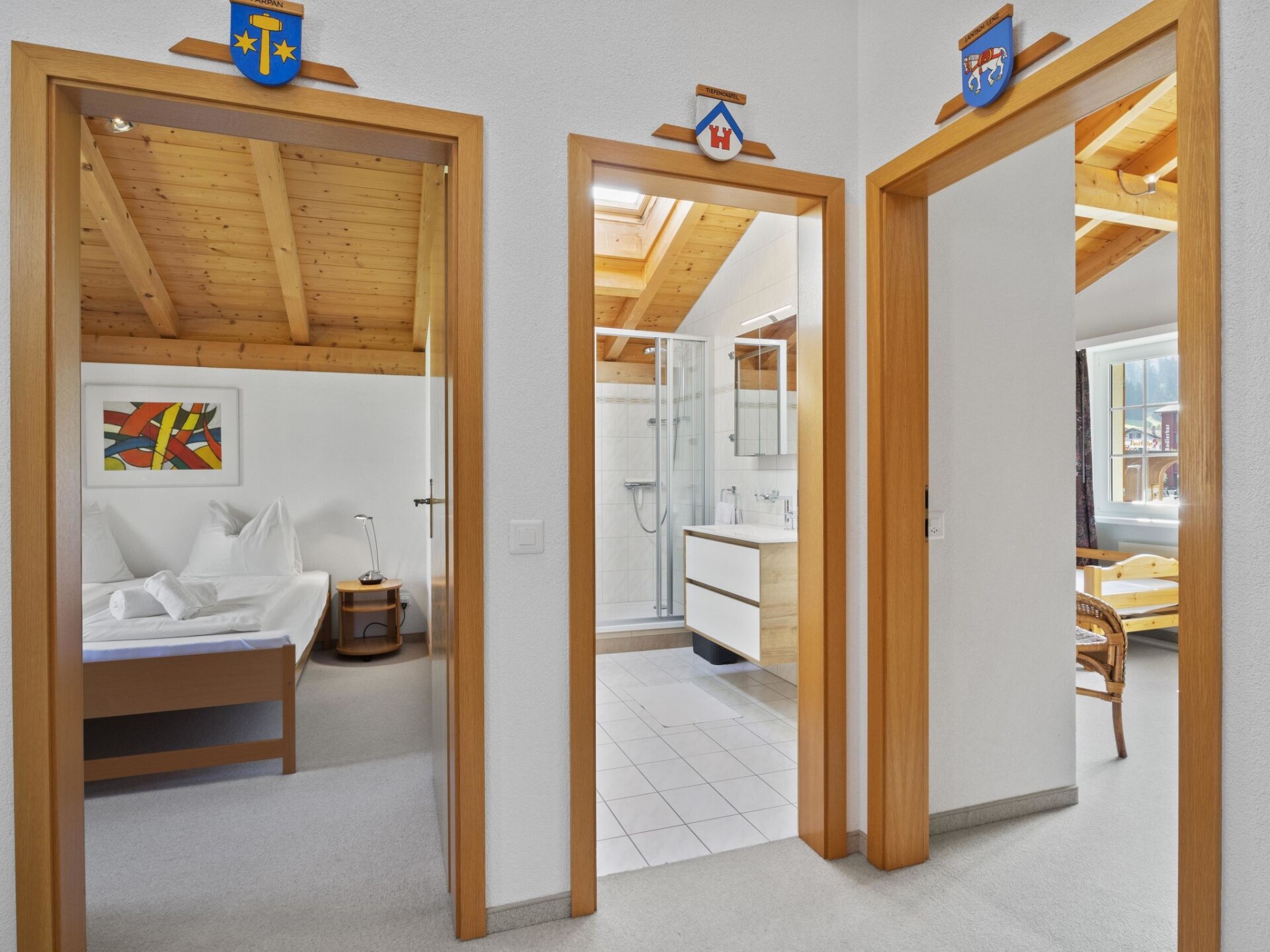 No elevator / Wi-Fi yes / 3 rooms with double beds / 1 room with two single beds / 2 bathrooms with toilet and shower / 1 bathroom with toilet, shower, and bathtub At the same time, the house is located directly in the center of Churwalden, close to the lift stations and the sports store as well as the shopping options Coop and Migros. Only available for rent in the winter months.