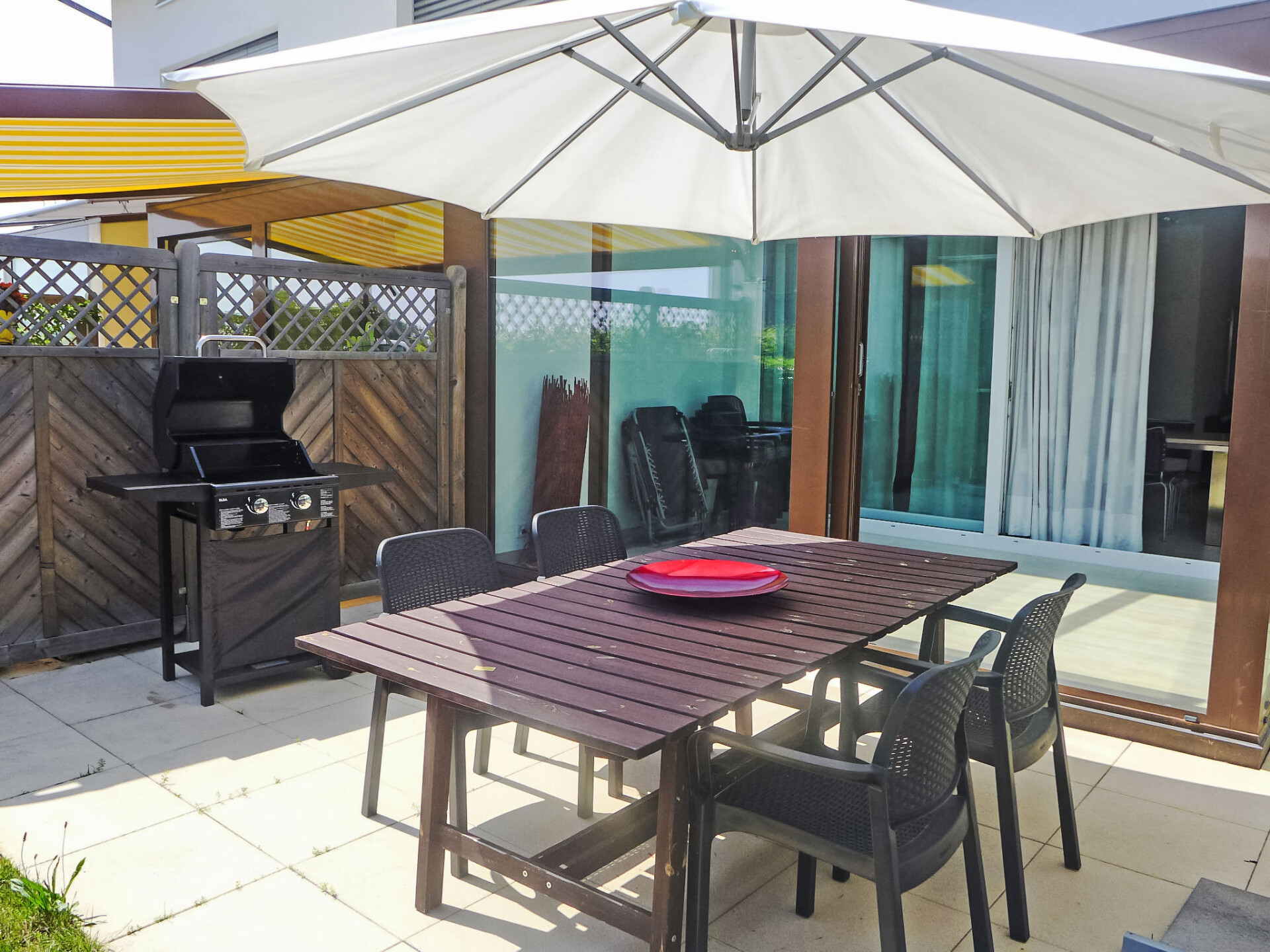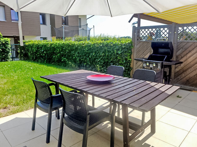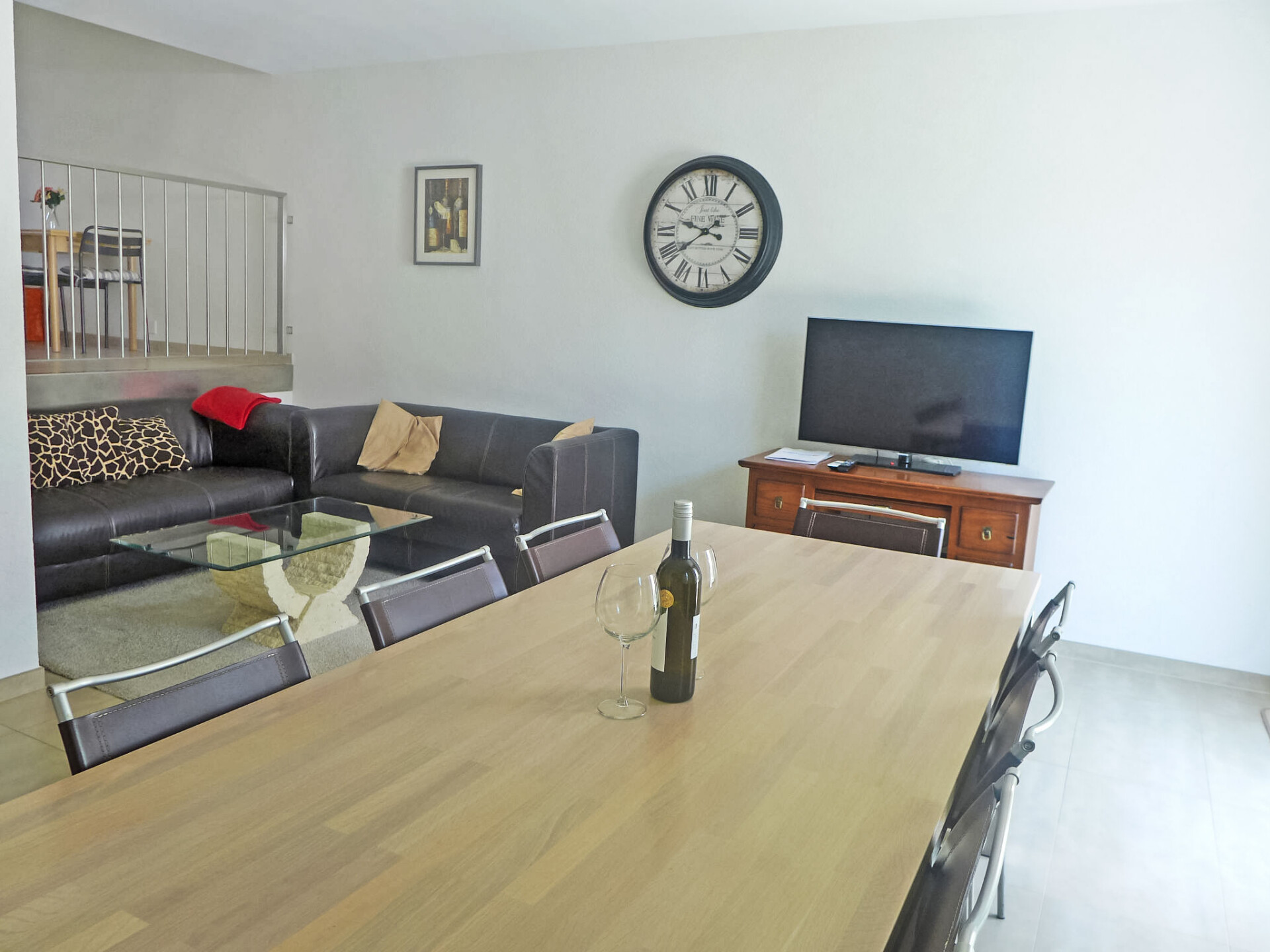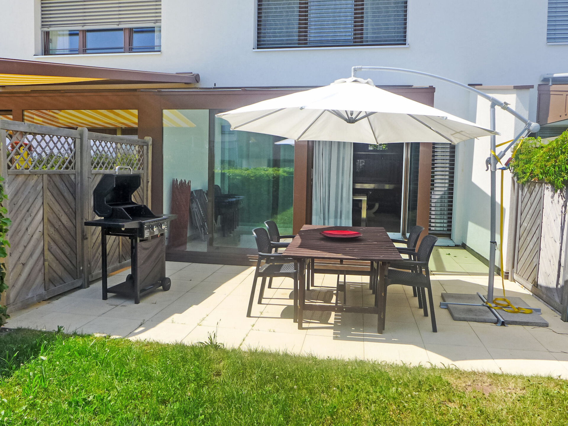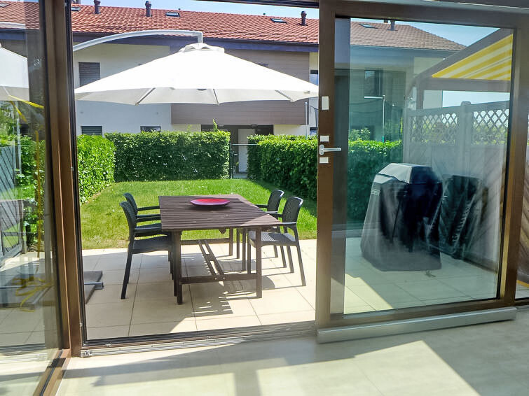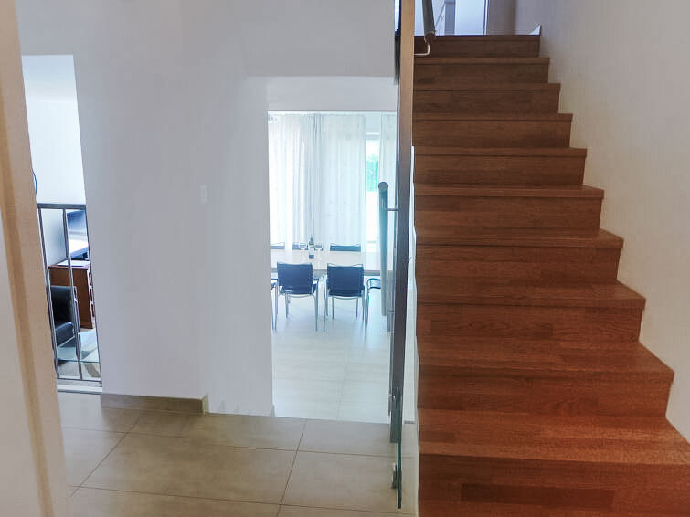 Huis in een rij 5-kamers 190 m2 op 3 verdiepingen. Comfortabel en smaakvol ingericht: woon-/eetkamer, op 2 verdiepingen met wintertuin met Digitale TV, Flatscreen TV en stereo-installatie. Uitgang naar de tuin. Open keuken in de hal (oven, afwasmachine, 4 keramische glas kookplaten, broodrooster, waterkoker, magnetron, diepvriezer, elektrische koffiemachine, raclette oven, fondue Set (kaas)) met eettafel. Souterrain: aparte WC. Bovenverdieping: 1 kamer met 1 2-pers bed (1 x 160 cm, lengte 200 cm). Bad/WC, dubbele wastafels. 2e Verdieping: 2 kamers, elke kamer heeft 1 2-pers bed (1 x 140 cm, lengte 200 cm). Zolderverdieping: 1 2-pers. kamer met afgeschuinde daken met panoramavenster met 3 bedden en douche/WC. Tuin 160 m2. Barbecue, ligstoelen, bergruimte. Beperkt uitzicht op het meer en het landschap. Ter beschikking: wasmachine, droger, strijkijzer, kinderstoel. Internet (Internet (WiFi), gratis). Parkeerplaats, garage. Niet rokers woning.