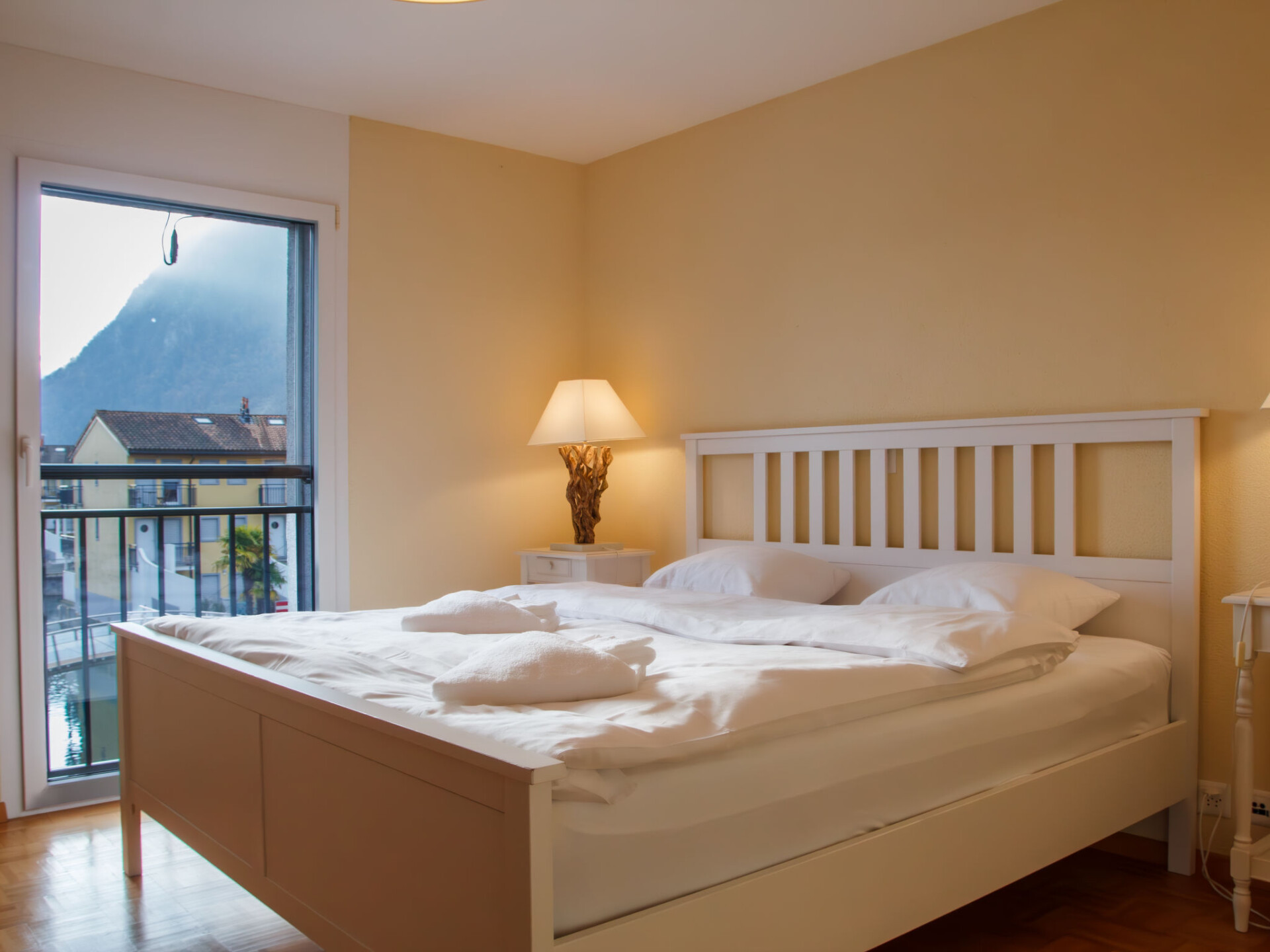 "Cook P1/2", appartement 4-kamers op de 2e verdieping. Het objekt is geschikt voor 6 volwassenen + 2 kinderen. Ruim en licht, mooi en smaakvol ingericht: groot, open woon-/eetkamer met panoramavenster met eettafel, Kabel-TV en Flatscreen TV. Uitgang naar het balkon. 1 kamer met 1 2-pers bed (160 cm, lengte 200 cm), bad/WC. 1 kamer met 1 2-pers bed (160 cm, lengte 200 cm). Uitgang naar het balkon. 1 kamer met 1 bed (90 cm, lengte 190 cm), 1 x 2 stapelbedden (90 cm, lengte 190 cm), 1 uitschuifbaar bed (1 pers. 2 x 90 cm, lengte 190 cm). Open keuken (oven, afwasmachine, 4 keramische glas kookplaten, broodrooster, waterkoker, magnetron, diepvriezer, elektrische koffiemachine, pads voor de koffiemachine (Nespresso) extra, fondue Set (kaas)) met bar. Douche/WC, aparte WC. Parketvloeren. Balkon 7 m2. Balkonmeubilair, elektrische barbecue (verrijdbaar), ligstoelen (2). Uitzicht op de bergen en het kanaal. Ter beschikking: wasmachine, droger, kinderstoel, kinderbed tot 3 jaar (extra), haardroger. Internet (WiFi, gratis). Parkeerplaats nr. 189. Geschikt voor families. Niet rokers woning. CH49185