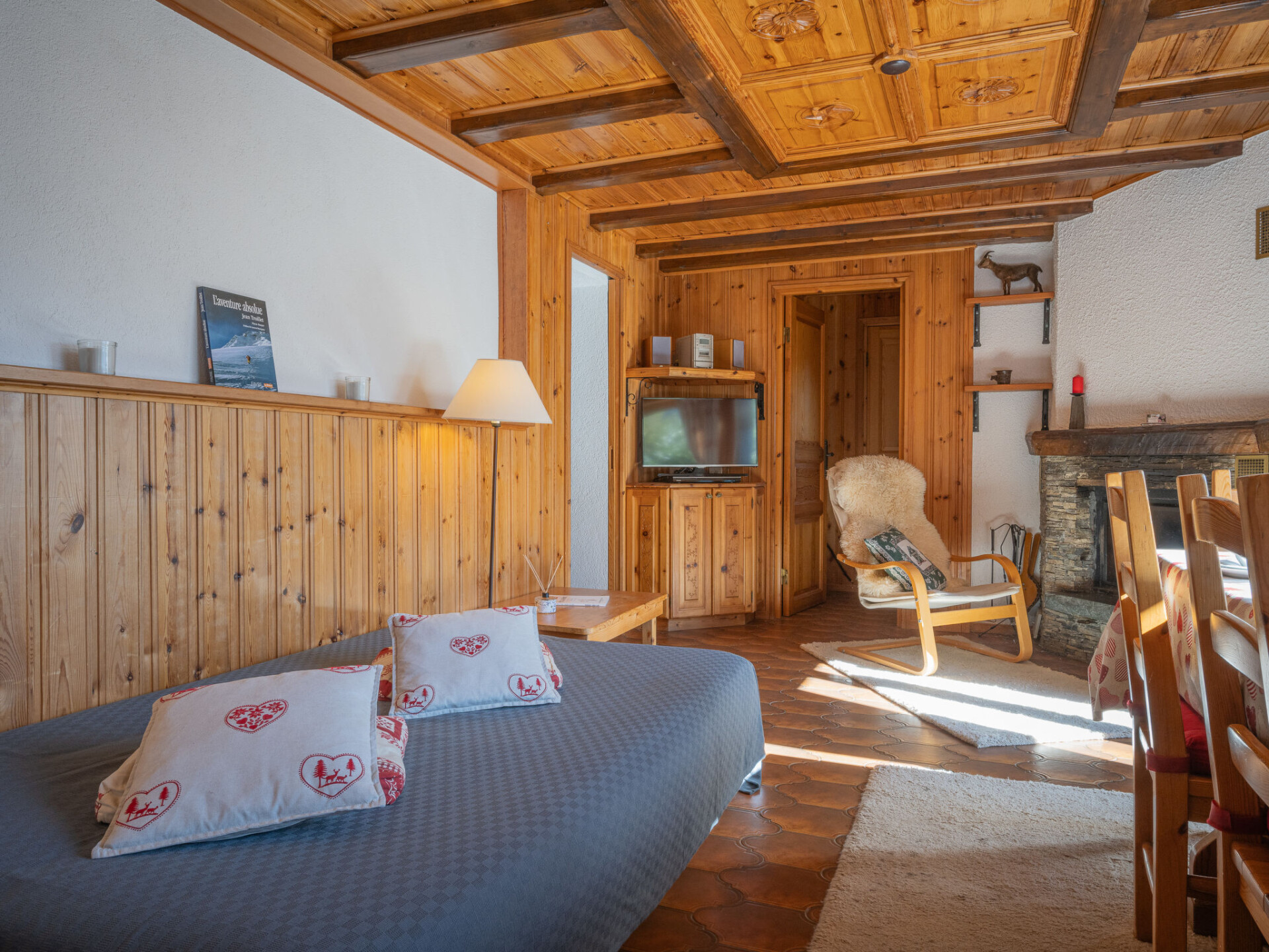 "Mélèze", appartement 3-kamers op de begane grond, op het zuidwesten gelegen. Comfortabel ingericht: hal. Woon-/eetkamer met 1 divanbed (130 cm), open haard, Kabel-TV, stereo-installatie en DVD. Uitgang naar het balkon. 2 kamers, elke kamer heeft 2 bedden (90 cm, lengte 200 cm). Open keuken (4-pits kookplaat, oven, afwasmachine, elektrische koffiemachine, pads voor de koffiemachine (Nespresso) extra, raclette oven, fondue Set (chinese, kaas)). Bad/WC. Terrasmeubelen, barbecue (verrijdbaar), ligstoelen (2), bergruimte. Zeer mooi uitzicht op de bergen. Ter beschikking: wasmachine, droger. Internet (WiFi, gratis). Niet rokers woning. Maximaal 1 klein huisdier/hond toegestaan.