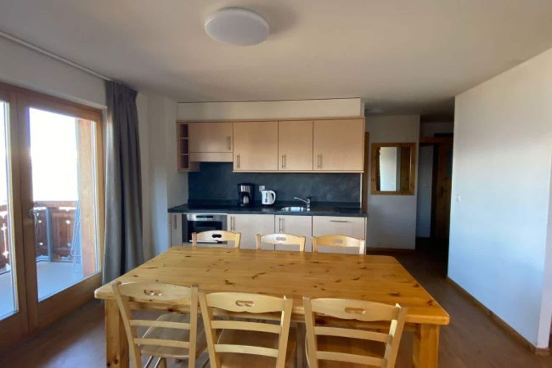 Ontdek het comfort van dit 3-sterrenappartement van 54 m² in Nendaz, ideaal voor maximaal 8 gasten. Gelegen in de residentie Pracondu, op slechts 100 meter van de kabelbaan en de skipistes, biedt deze moderne woning ski-in/ski-out toegang. Geniet van het uitzicht op de vallei vanaf het balkon, een gezellige woonkamer met een slaapbank, een flatscreen-tv met kabelzenders en wifi. De open keuken is voorzien van een magnetron, vaatwasser en koffiezetapparaat. De slaapgelegenheid bestaat uit twee slaapkamers met twee eenpersoonsbedden, een gang met stapelbedden en twee badkamers – één met een bad en de andere met een douche.