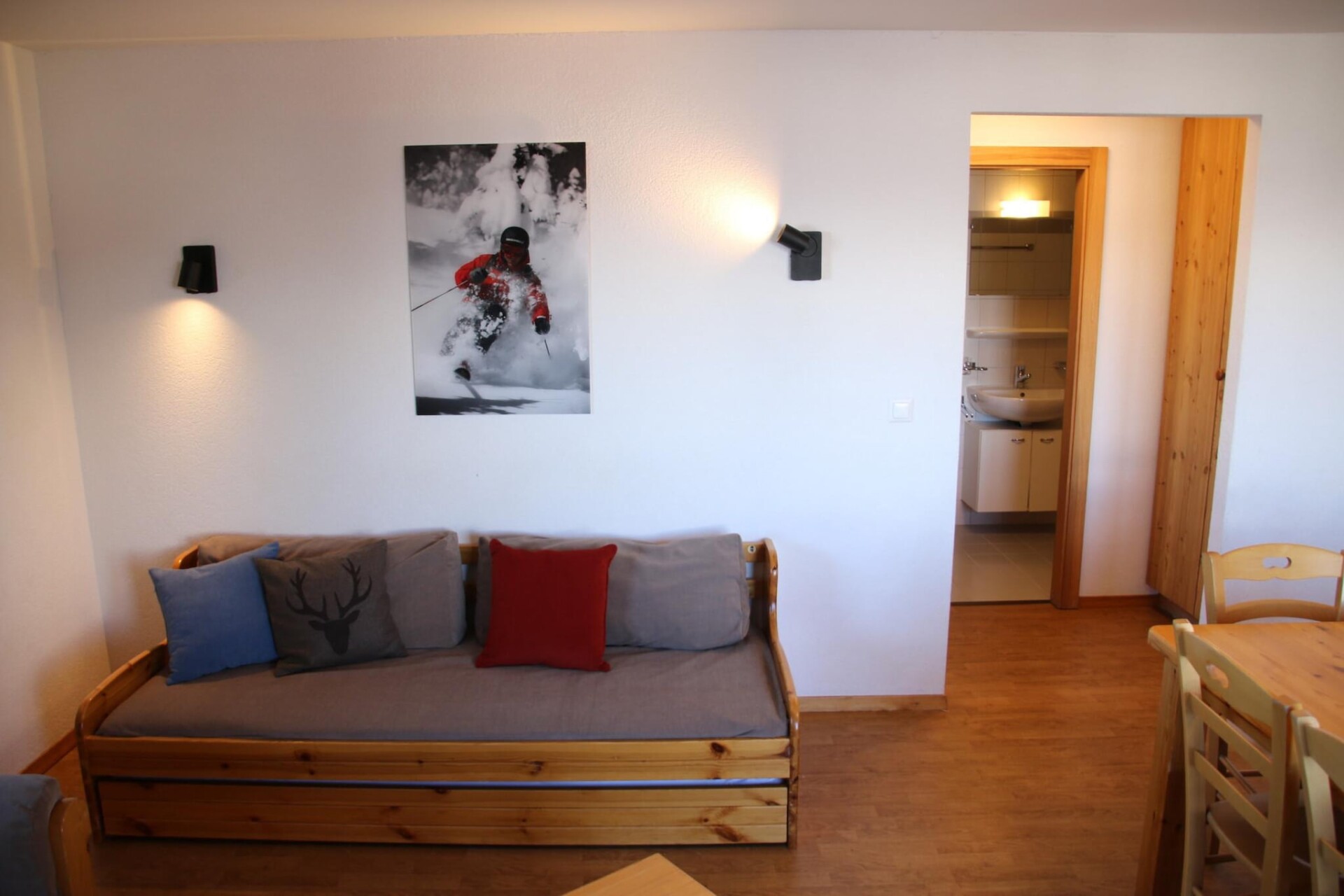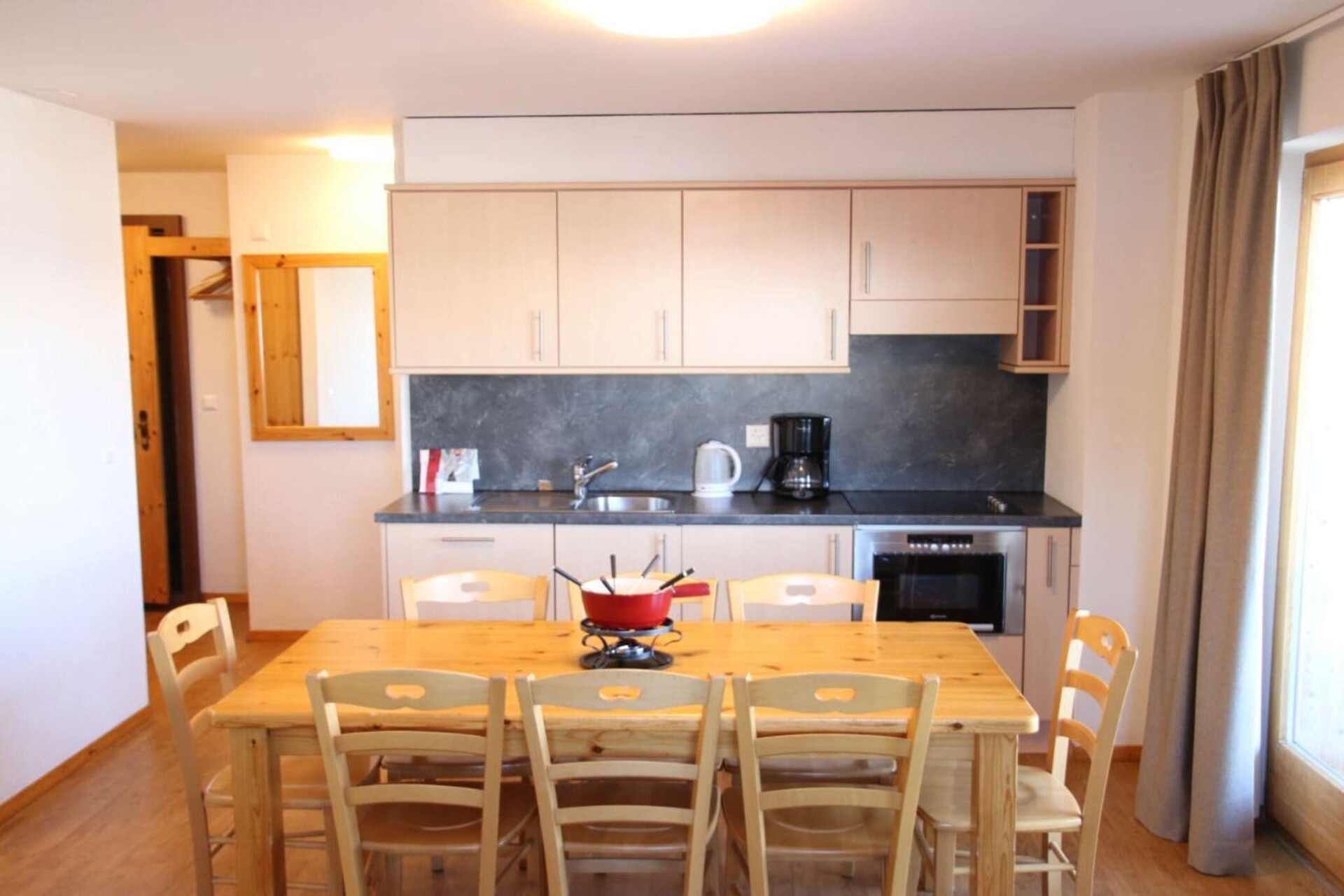 Welkom in dit ruime appartement van 54 m² in Nendaz, gelegen in het hart van de prachtige Zwitserse regio Les 4 Vallées. Perfect voor gezinnen of groepen tot 8 personen. Dit comfortabele toevluchtsoord biedt ski-in/ski-out toegang en een adembenemend uitzicht op de vallei vanaf een eigen balkon. De woonkamer is voorzien van een tweepersoons slaapbank, een flatscreen-tv met kabelzenders en gratis wifi. De volledig uitgeruste open keuken is voorzien van een koelkast, oven/magnetron, vaatwasser, koffiezetapparaat en broodrooster.