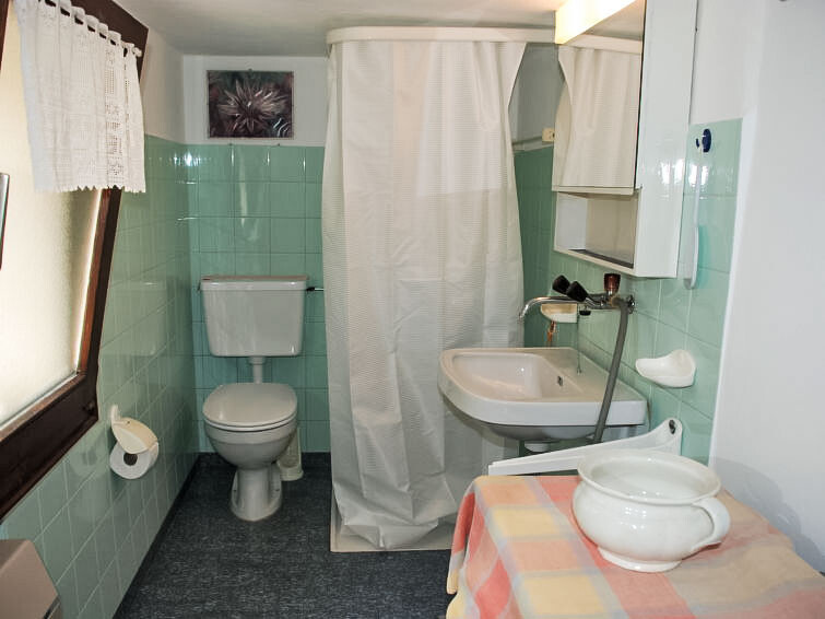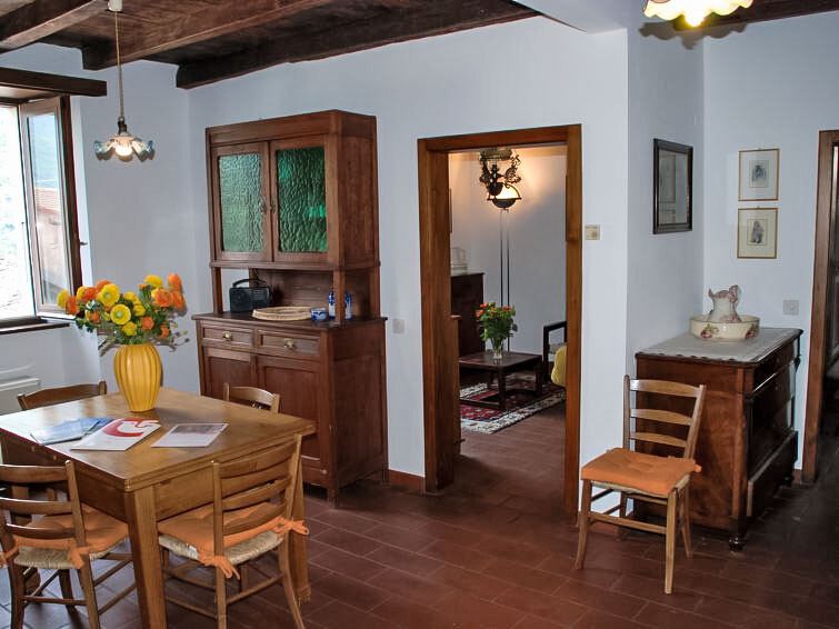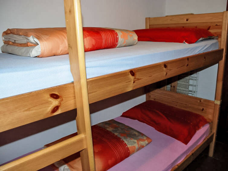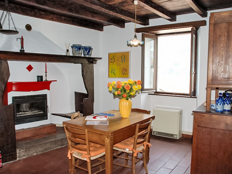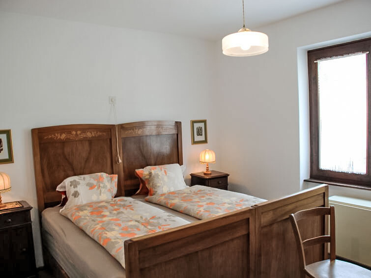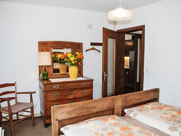 Appartement 3-kamers. Eenvoudig en rustiek ingericht: kleine woonkamer. 1 kleine kamer met 1 x 2 stapelbedden (90 cm, lengte 200 cm). 1 2-pers. kamer met 1 2-pers bed (2 x 90 cm, lengte 200 cm). Open keuken (4-pits kookplaat, oven) met eettafel, open haard. Douche/WC. Terrasmeubelen, ligstoelen (2), zitgelegenheid. Ter beschikking: kinderstoel, kinderbed tot 3 jaar (extra), haardhout (extra). Niet rokers woning. Maximaal 1 huisdier/hond toegestaan. NL-00004328