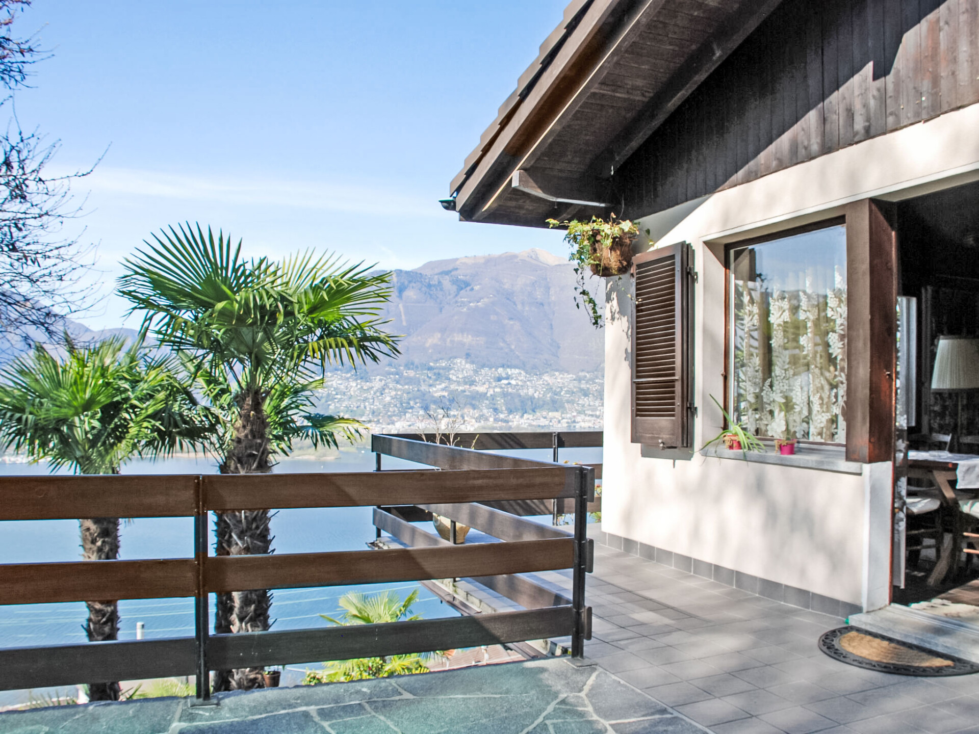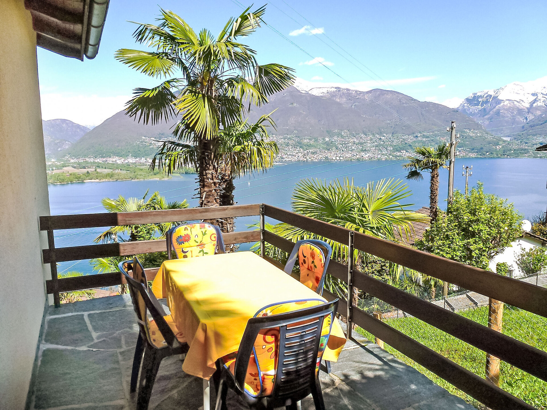 "App. 2", appartement 3-kamers 90 m2 op de 1e verdieping. Ruim en licht, comfortabel en gezellig ingericht: woon-/eetkamer met Sat-TV, Flatscreen TV en radio. Uitgang naar het terras, naar de zitplaats in de tuin. 1 2-pers. kamer met 1 2-pers bed (2 x 90 cm, lengte 200 cm). 1 kamer met 1 2-pers bed (2 x 90 cm, lengte 200 cm). Keuken (3-pits kookplaat, oven, elektrische koffiemachine). Uitgang naar het terras. Bad/WC. Olie-verwarming. 2 terrassen gedeeltelijk overdekt. Terrasmeubelen, barbecue, ligstoelen (4), zitgelegenheid. Mooi panoramazicht op het meer, de bergen en het landschap. Ter beschikking: kinderstoel, kinderbed tot 2 jaar, haardroger. Internet (Internet (WiFi), gratis). Parkeerplaats (extra, overdekt). Geschikt voor families. NL-00004643