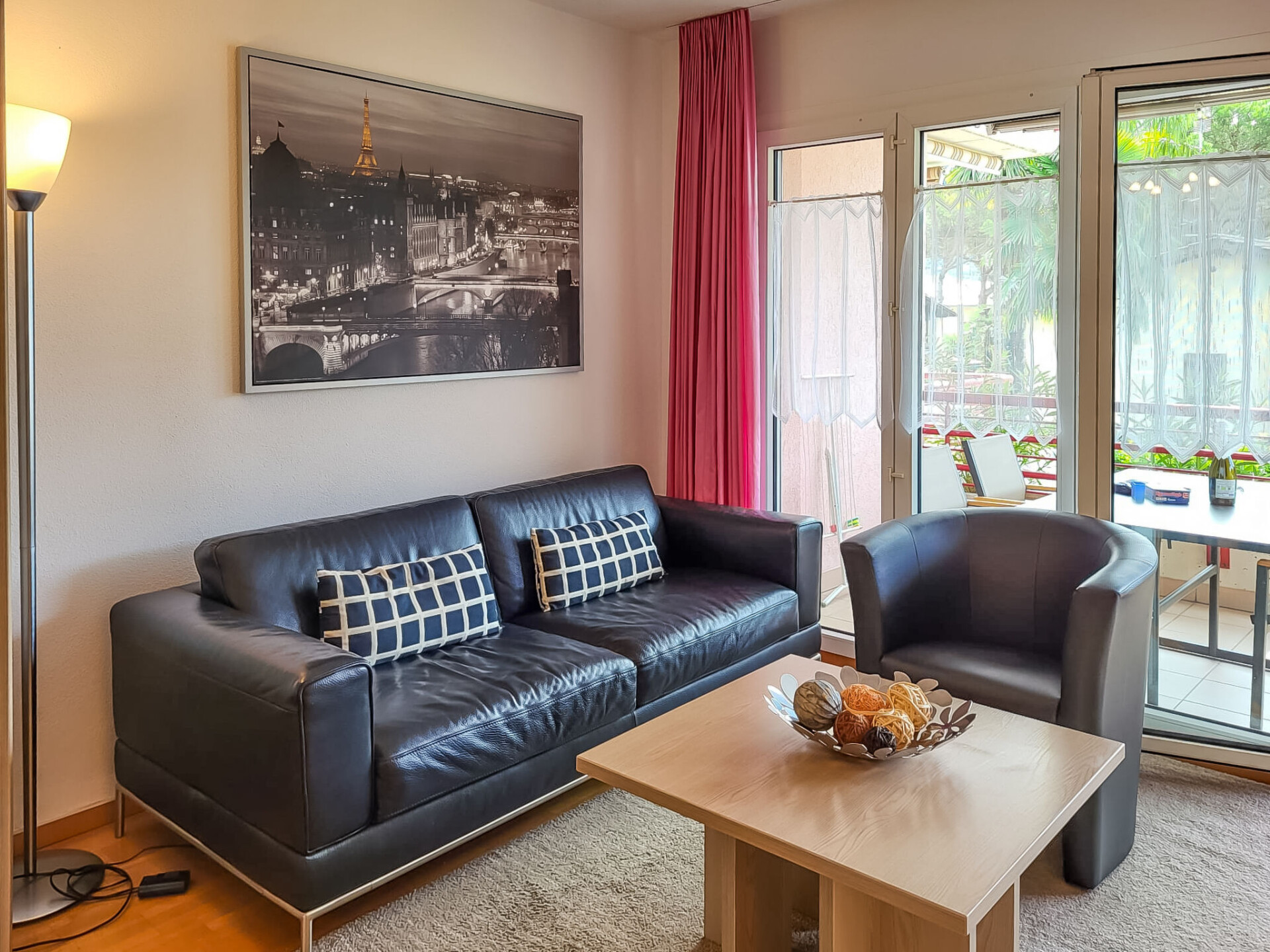 "App. 21", appartement 2-kamers 56 m2 op de 1e verdieping, op het zuiden gelegen. Het objekt is geschikt voor 2 volwassenen + 2 kinderen. Ruim en licht, comfortabel en gezellig ingericht: open woon-/eetkamer met 1 2-pers kastbed (2 x 90 cm, lengte 200 cm), eettafel en Kabel-TV (Flatscreen TV), radio. Uitgang naar het balkon. 1 2-pers. kamer met 1 2-pers bed (2 x 90 cm, lengte 200 cm). Uitgang naar het balkon. Open keuken (oven, afwasmachine, 4 keramische glas kookplaten, broodrooster, elektrische koffiemachine, pads voor de koffiemachine (Nespresso) extra). Bad/WC. Verwarming. 2 balkons. Balkonmeubilair, ligstoelen (2). Mooi uitzicht op het zwembad, de tuin en het landschap. Ter beschikking: Internet (WiFi). Parkeerplaats nr. 3, garage nr. 2. Niet rokers woning. NL-00003828