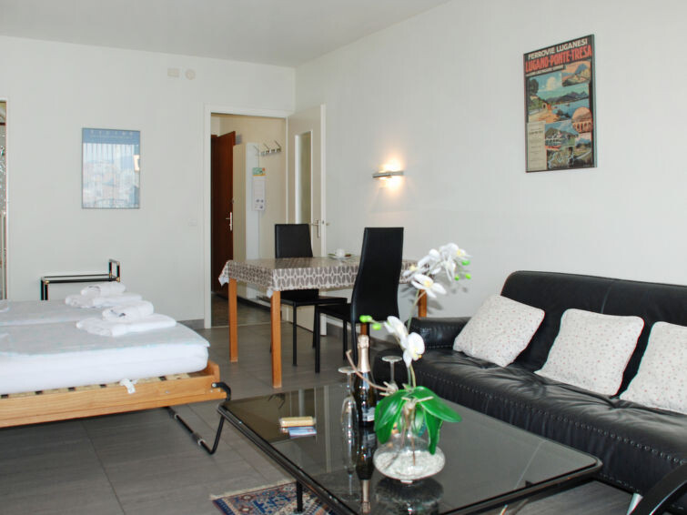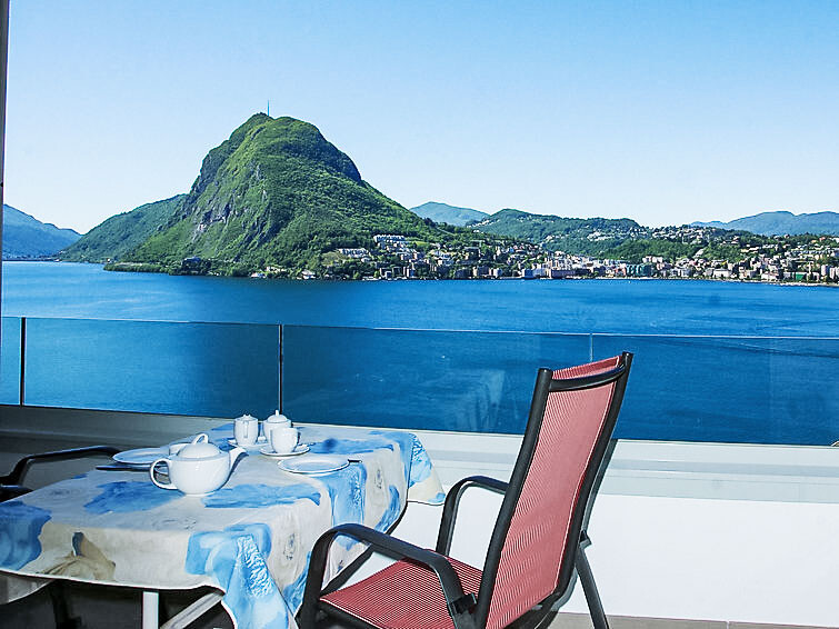 Appartement 1-kamer 32 m2 op de 5e verdieping, op het zuiden gelegen. Licht, mooi en smaakvol ingericht: open woon-/eetkamer met 2 kastbedden (90 cm, lengte 200 cm), eettafel en Kabel-TV (Flatscreen TV), radio. Uitgang naar het balkon. Kookhoek in de hal (3-pits kookplaat, oven, afwasmachine, magnetron, elektrische koffiemachine, pads voor de koffiemachine (Nespresso)). Bad/WC. Verwarming. Balkon, op het zuiden gelegen. Balkonmeubilair. Mooi panoramazicht op het meer, de bergen, het landschap en de plaats. Ter beschikking: haardroger. Internet(WiFi), gratis). Niet geschikt voor kleine kinderen. Niet rokers woning. Keuken met Nespresso koffiemachine (de capsules moeten worden meegenomen door de gasten) en broodrooster. Terras en prachtig uitzicht op de San Salvatore en de baai van Lugano! NL-00004457