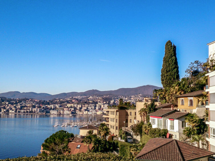 Flatgebouw "Castagnola (Utoring)". In de plaats, 3 km van het centrum van Lugano, rustige, zonnige ligging tegen een helling, op het zuidoosten. In het huis: receptie, lift, wasmachine, droger (voor medegebruik, extra). Toegangsweg tot aan het huis. Openbare parkeerplaatsen 15 m in de straat extra. Winkel 1.6 km, restaurant 200 m, café 200 m, centrum te voet bereikbaar in 20 minuten, bushalte "San Michele" 30 m, treinstation "Lugano SBB-CFF-FFS". Golfterrein (18 holes) 13 km, tennis 1.6 km, midgetgolf 13 km, wandelroutes 10 m vanaf het huis. Attracties in de buurt: Gandria 2 km, Swiss Miniatur, Melide 10 km, Museum of Chocolat, Caslano 13 km, Outlet Fox Town, Mendrisio 22 km, Lido di Lugano 1.6 km, Mercato: Ponte Tresa IT, Como IT. Bekende meren kunnen gemakkelijk worden bereikt: Lago di Lugano, Lago di Como, Lago Maggiore. Wandelgebied Monte Bré, San Salvatore, Monte Tamaro, & Splash and SPA, Malcantone, Monte Lema. Vergelijkbare accommodaties kunnen worden geboekt. Object referentie: CH6976.100 is gelegen op hetzelfde terrein. De woningen kunnen onderling van inrichting verschillen. Het appartementenhuis is gelegen aan de voet van de berg de Monte Bré, met een schitterend uitzicht op de baai van Lugano en op de berg de Monte San Salvatore. Weinig parkeerplaatsen (8 totaal) beschikbaar (CHF 56.00/week). Let op: de parkeerplaats kan pas bij aankomst worden bevestigd en toebedeeld! Openbare parkeerplaatsen (gratis, blauwe zone) in de nabijheid. NB: Parkeerkaart voor de blauwe zone moet bij de stad/politie worden aangeschaft. Info ter plaatse. Het stallen van fietsen is niet mogelijk.