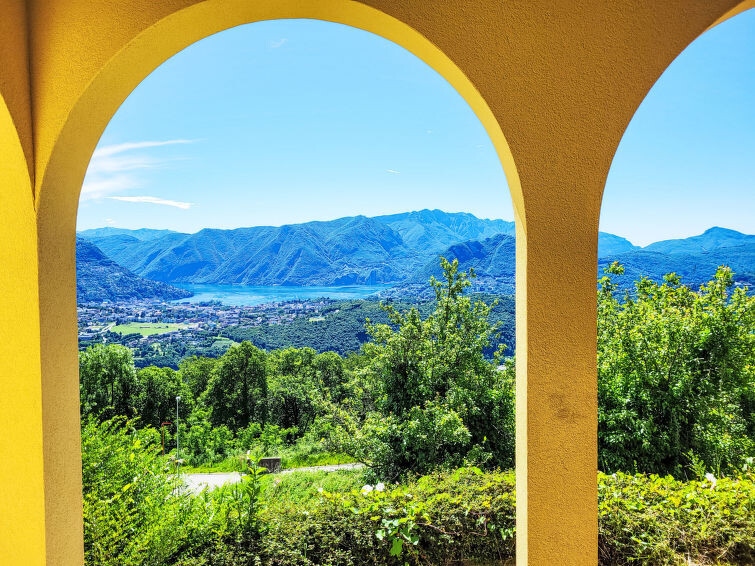 Cademario 12 km van Lugano: Mooi, comfortabele residentie "Bellavista", omgeven door bomen. In de plaats, 500 m van het centrum, in het district Malcantone, rustige, zonnige, verhoogde ligging tegen een helling, 300 m van de bosrand, op het zuidwesten. Voor medegebruik: verzorgde tuin, ligweide, openluchtzwembad verwarmd (seizoensgebonden beschikbaarheid: 19.Apr. - 15.Okt.). Douche/WC bij het zwembad, tafeltennis. In het huis: wasmachine (voor medegebruik, extra). Toegangsweg tot het terrein (bergweg). Parkeerplaats. Bushalte 500 m. Golfterrein (18 holes) 11 km, midgetgolf 11 km, wandelroutes 10 m vanaf het huis. Attracties in de buurt: Mercato Luino, IT 25 km, Mercato Ponte Tresa, IT 13 km, Chocolate Fabric, Caslano 11 km, Swissminiatur, Melide 22 km. Bekende meren kunnen gemakkelijk worden bereikt: Lago di Lugano, Lago Maggiore. Wandelgebied Alto Malcantone. Auto noodzakelijk. Geschikt voor families, geschikt voor senioren. Vergelijkbare accommodaties kunnen worden geboekt. De residentie heeft uitzicht op Lugano en omgeving. Parkeerplaats: CHF 21.00/week, overdekte parkeerplaats CHF 35.00/week (reserveren bij aankomst). De residentie is door de vele trappen niet geschikt voor mensen die slecht ter been zijn.