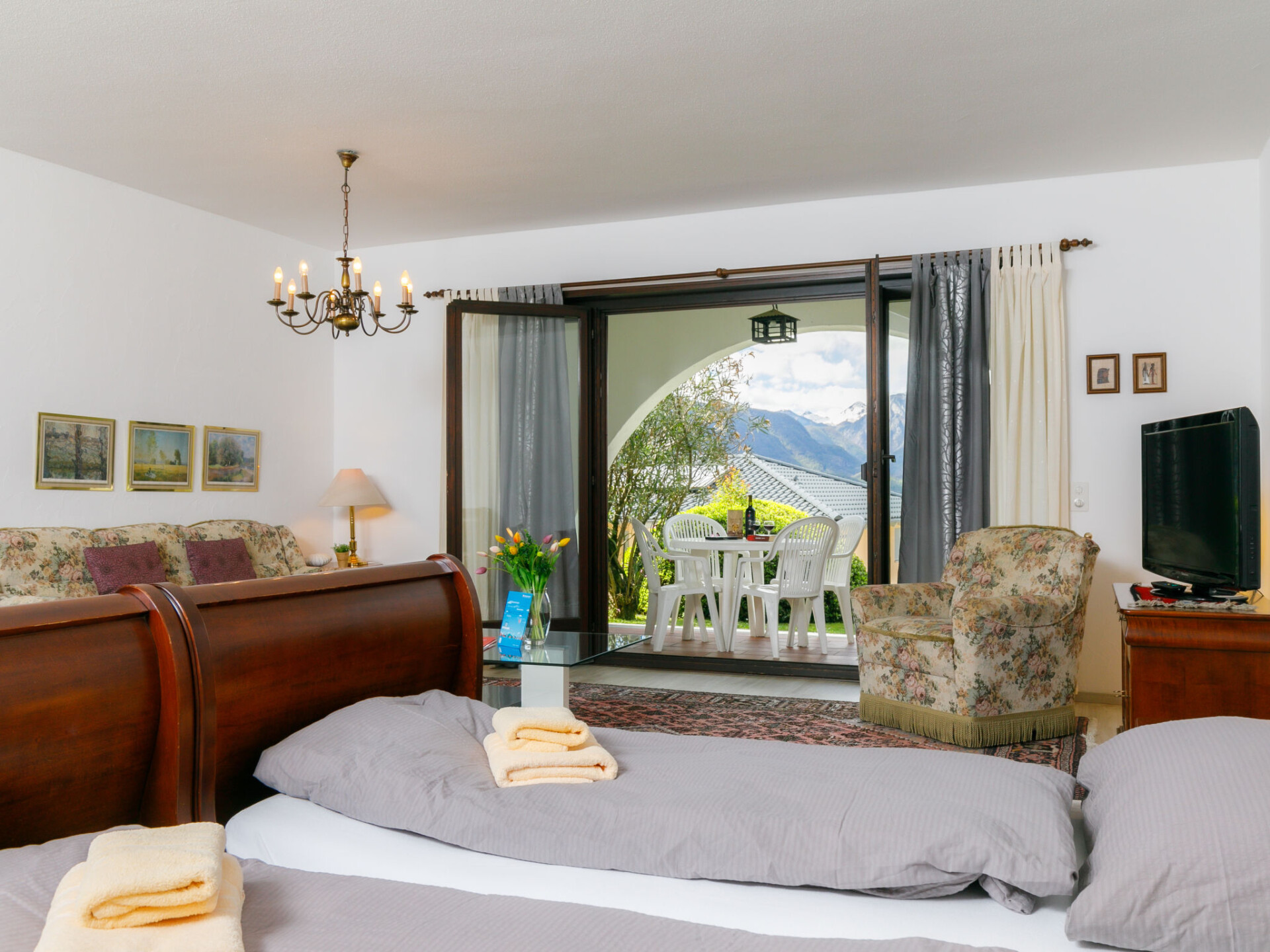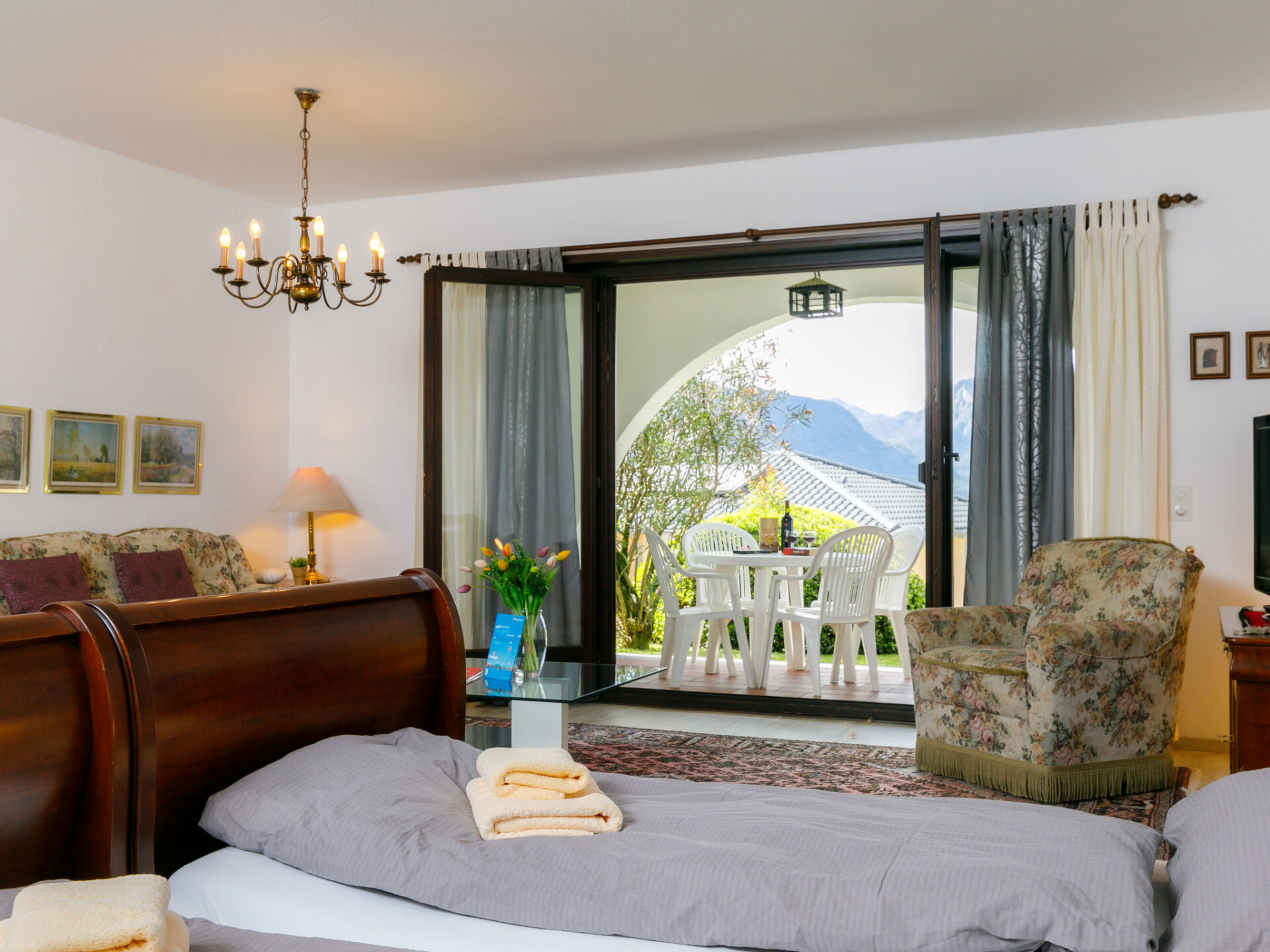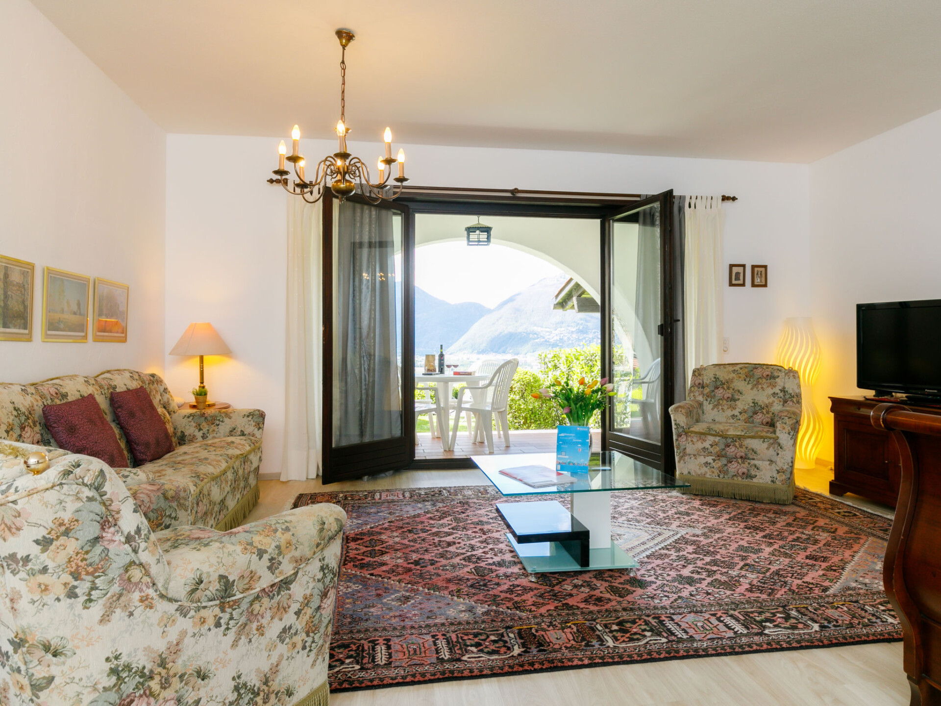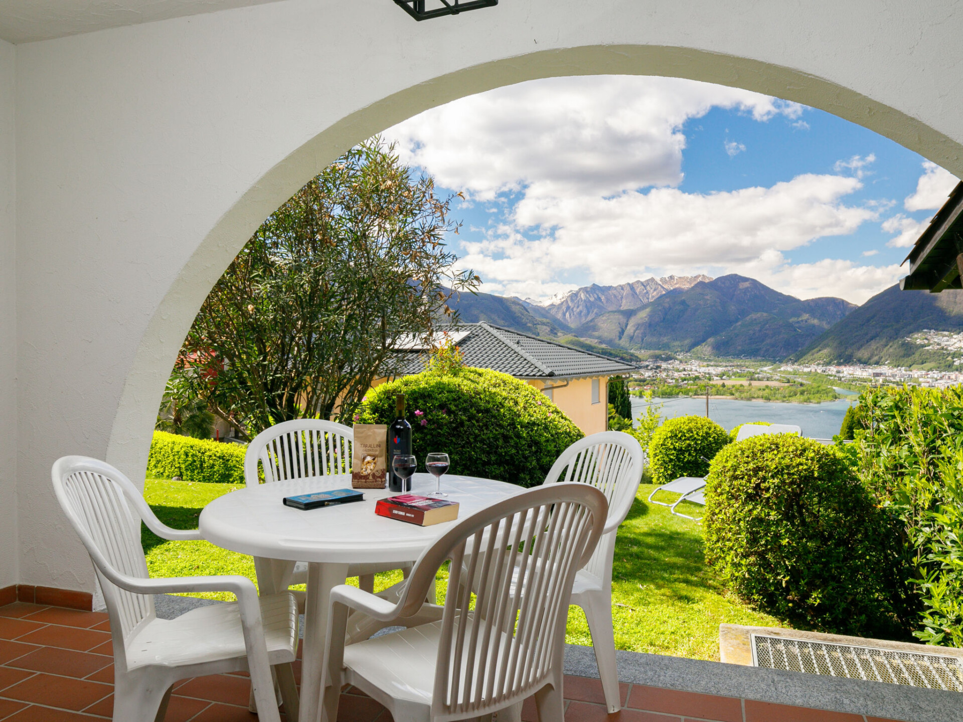 "Residence Miralago Apt. C23", appartement 1-kamer 65 m2, op de begane grond, op het zuidwesten gelegen. Ruim, comfortabel en rustiek ingericht: open woon-/slaapkamer met 2 bedden (90 cm, lengte 200 cm), Kabel-TV, Flatscreen TV en radio. Uitgang naar het terras. Kleine, open keuken in de hal (4-pits kookplaat, oven). Bad/WC. Zithoek in de tuin gedeeltelijk overdekt, op het westen gelegen en op het zuiden gelegen. Terrasmeubelen, ligstoelen (2). Zeer mooi uitzicht op het meer, de bergen en het landschap. Niet rokers woning. NL-00003593