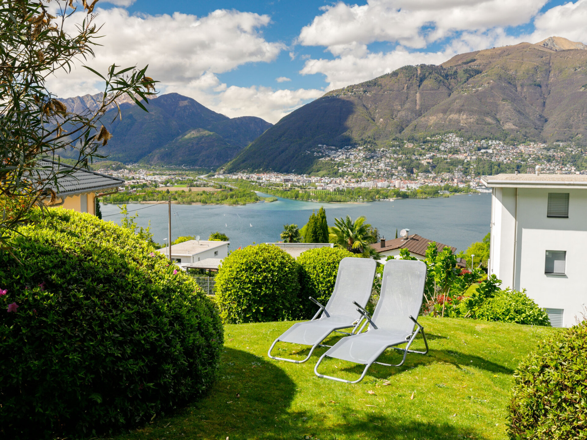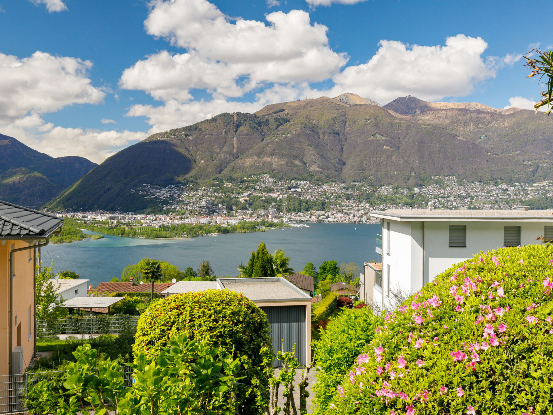 Piazzogna 19 km van Ascona: Moderne, comfortabele residentie "Miralago", omgeven door bomen en weiden. 4 huizen in de woning. 39 appartementen in de woning. Boven Vira (3 km), in het district Gambarogno, rustige, zonnige, verhoogde ligging tegen een helling, direct aan de bosrand, 3 km van het meer, aan een doodlopende weg, op het zuidoosten. Voor medegebruik: ligweide, openluchtzwembad hoekig verwarmd (170 - 170 cm diepte, seizoensgebonden beschikbaarheid: 15.Apr. - 15.Okt.) met trap en oprolbaar afdekscherm. Buitendouche, terras, tuinmeubelen. In het complex: receptie, salon, centrale verwarming, wasmachine (voor medegebruik, extra). Toegangsweg tot aan het huis het terrein. Parkeerplaats. Levensmiddelenwinkel, restaurant 300 m, bushalte 50 m. Midgetgolf 4.5 km, wandelroutes 100 m vanaf het huis. Attracties in de buurt: Parco Botanico, Piazzogna 300 m, Mercato Luino IT, Mercato Ponte Tresa IT, Bellinzona Unesco-Mercato, Swissminiature, Melide, Schokomuseum, Caslano. Bekende meren kunnen gemakkelijk worden bereikt: Lago Maggiore, Lago di Lugano, Lago di Como, Lago Orta. Wandelgebied Gambarogno, Indemini, Monte Tamaro und Splash and SPA, Rivera, Locarno - Ascona Cardada. De vier karakteristieke Tessiner huizen beschikken over een prachtig panorama over het meer. Per appartement is 1 parkeerplaats gratis, elke volgende kost CHF 35.00/week.