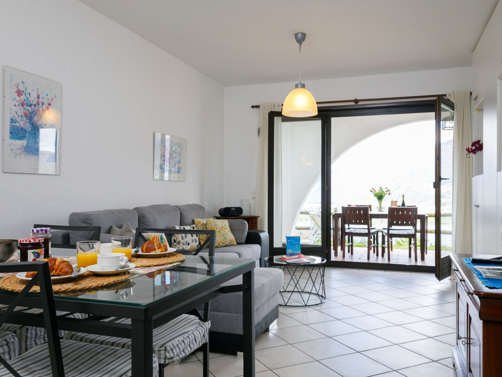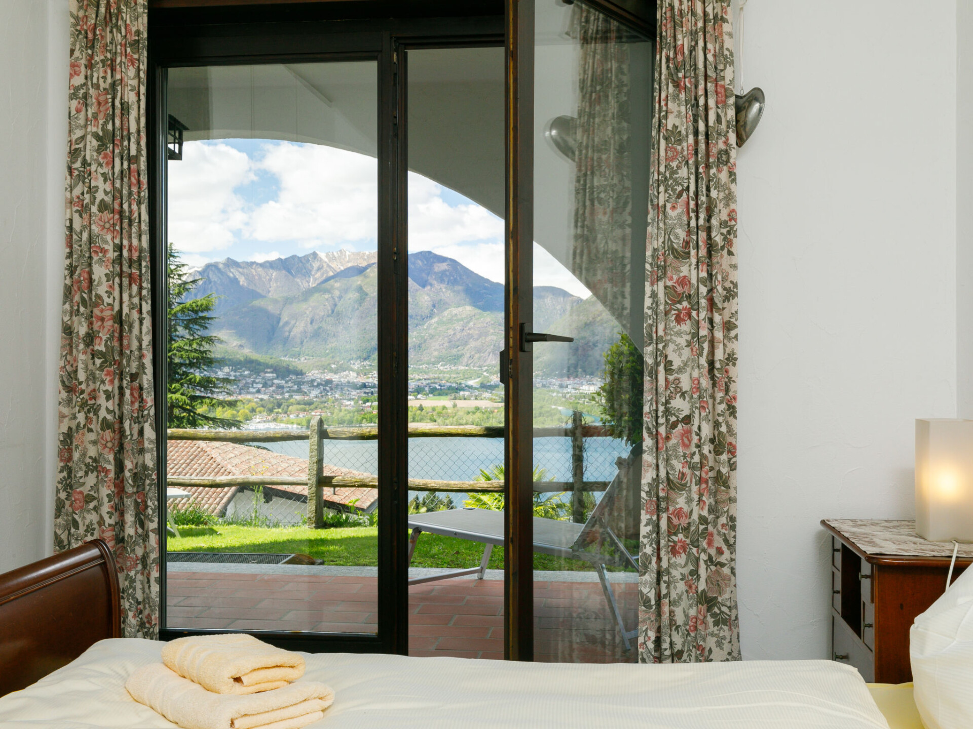 "Residenza Miralago Apt. B13", appartement 2-kamers 73 m2, op het zuidwesten gelegen. Licht, comfortabel en gezellig ingericht: open woon-/eetkamer met eettafel en Sat-TV (Flatscreen TV). Uitgang naar het terras. 1 kamer met 2 bedden (90 cm, lengte 200 cm). Uitgang naar het terras. Kleine keuken (4-pits kookplaat, oven). Douche/WC. Verwarming. Zithoek in de tuin gedeeltelijk overdekt, op het zuiden gelegen en op het westen gelegen. Terrasmeubelen. Zeer mooi panoramazicht op het meer, de bergen en het landschap. Niet rokers woning. NL-00003588