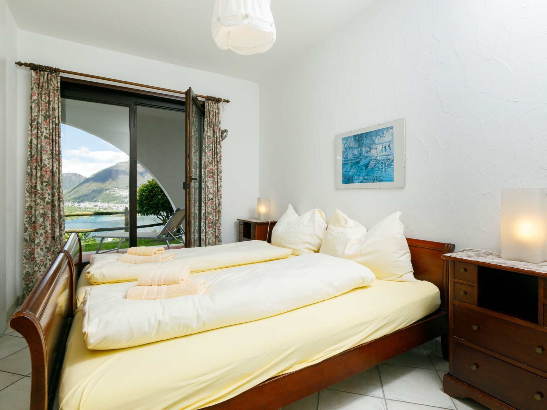 Piazzogna 19 km van Ascona: Moderne, comfortabele residentie "Miralago", omgeven door bomen en weiden. 4 huizen in de woning. 39 appartementen in de woning. Boven Vira (3 km), in het district Gambarogno, rustige, zonnige, verhoogde ligging tegen een helling, direct aan de bosrand, 3 km van het meer, aan een doodlopende weg, op het zuidoosten. Voor medegebruik: ligweide, openluchtzwembad hoekig verwarmd (170 - 170 cm diepte, seizoensgebonden beschikbaarheid: 15.Apr. - 15.Okt.) met trap en oprolbaar afdekscherm. Buitendouche, terras, tuinmeubelen. In het complex: receptie, salon, centrale verwarming, wasmachine (voor medegebruik, extra). Toegangsweg tot aan het huis het terrein. Parkeerplaats. Levensmiddelenwinkel, restaurant 300 m, bushalte 50 m. Midgetgolf 4.5 km, wandelroutes 100 m vanaf het huis. Attracties in de buurt: Parco Botanico, Piazzogna 300 m, Mercato Luino IT, Mercato Ponte Tresa IT, Bellinzona Unesco-Mercato, Swissminiature, Melide, Schokomuseum, Caslano. Bekende meren kunnen gemakkelijk worden bereikt: Lago Maggiore, Lago di Lugano, Lago di Como, Lago Orta. Wandelgebied Gambarogno, Indemini, Monte Tamaro und Splash and SPA, Rivera, Locarno - Ascona Cardada. De vier karakteristieke Tessiner huizen beschikken over een prachtig panorama over het meer. Per appartement is 1 parkeerplaats gratis, elke volgende kost CHF 35.00/week.