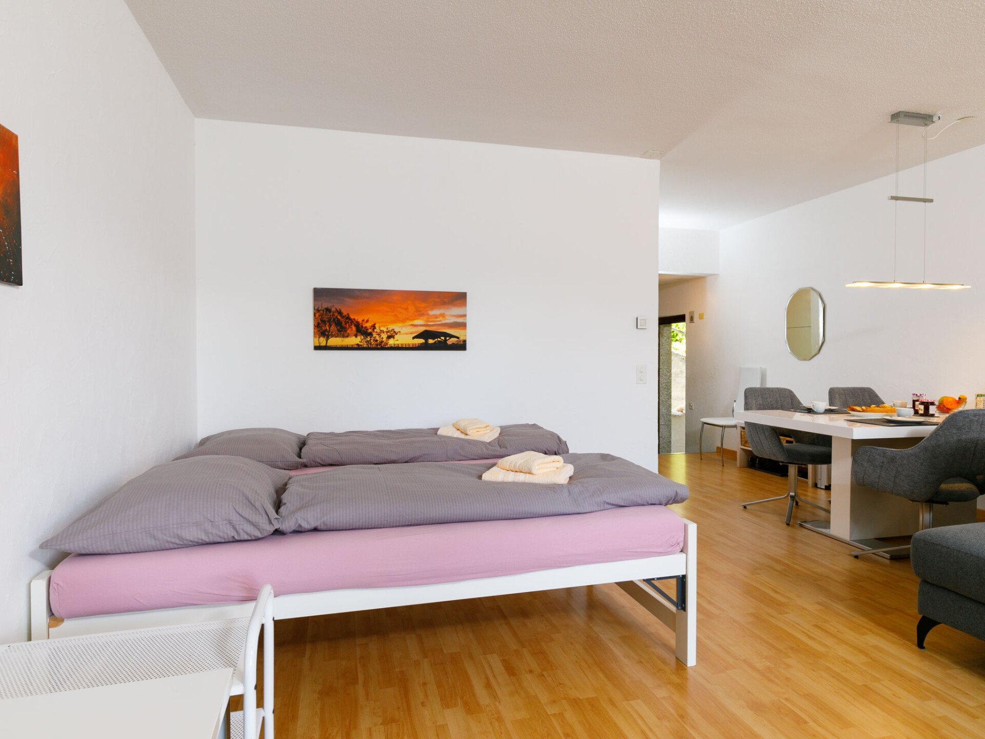 Piazzogna 19 km van Ascona: Moderne, comfortabele residentie "Miralago", omgeven door bomen en weiden. 4 huizen in de woning. 39 appartementen in de woning. Boven Vira (3 km), in het district Gambarogno, rustige, zonnige, verhoogde ligging tegen een helling, direct aan de bosrand, 3 km van het meer, aan een doodlopende weg, op het zuidoosten. Voor medegebruik: ligweide, openluchtzwembad hoekig verwarmd (170 - 170 cm diepte, seizoensgebonden beschikbaarheid: 15.Apr. - 15.Okt.) met trap en oprolbaar afdekscherm. Buitendouche, terras, tuinmeubelen. In het complex: receptie, salon, centrale verwarming, wasmachine (voor medegebruik, extra). Toegangsweg tot aan het huis het terrein. Parkeerplaats. Levensmiddelenwinkel, restaurant 300 m, bushalte 50 m. Midgetgolf 4.5 km, wandelroutes 100 m vanaf het huis. Attracties in de buurt: Parco Botanico, Piazzogna 300 m, Mercato Luino IT, Mercato Ponte Tresa IT, Bellinzona Unesco-Mercato, Swissminiature, Melide, Schokomuseum, Caslano. Bekende meren kunnen gemakkelijk worden bereikt: Lago Maggiore, Lago di Lugano, Lago di Como, Lago Orta. Wandelgebied Gambarogno, Indemini, Monte Tamaro und Splash and SPA, Rivera, Locarno - Ascona Cardada. De vier karakteristieke Tessiner huizen beschikken over een prachtig panorama over het meer. Per appartement is 1 parkeerplaats gratis, elke volgende kost CHF 35.00/week.