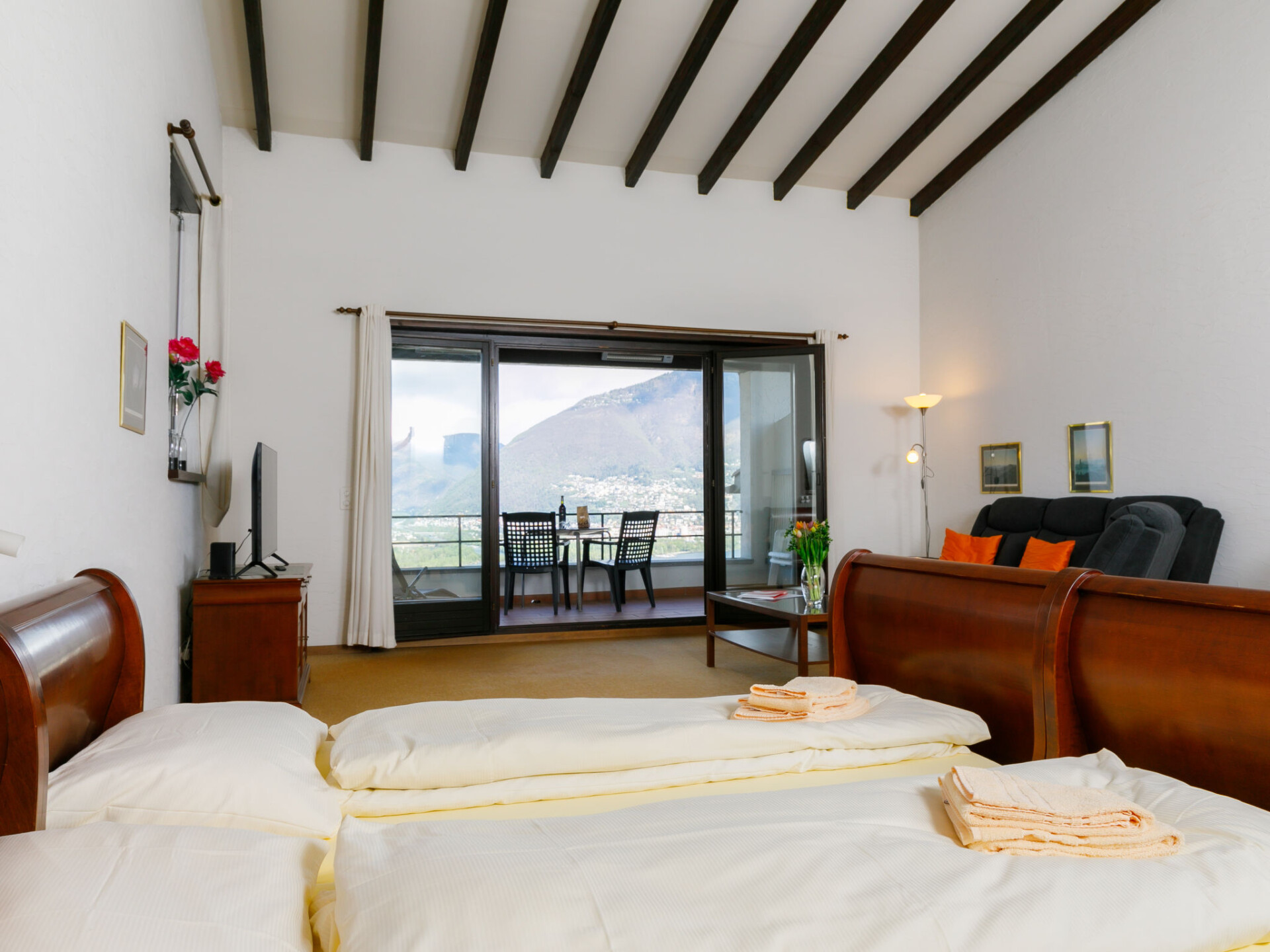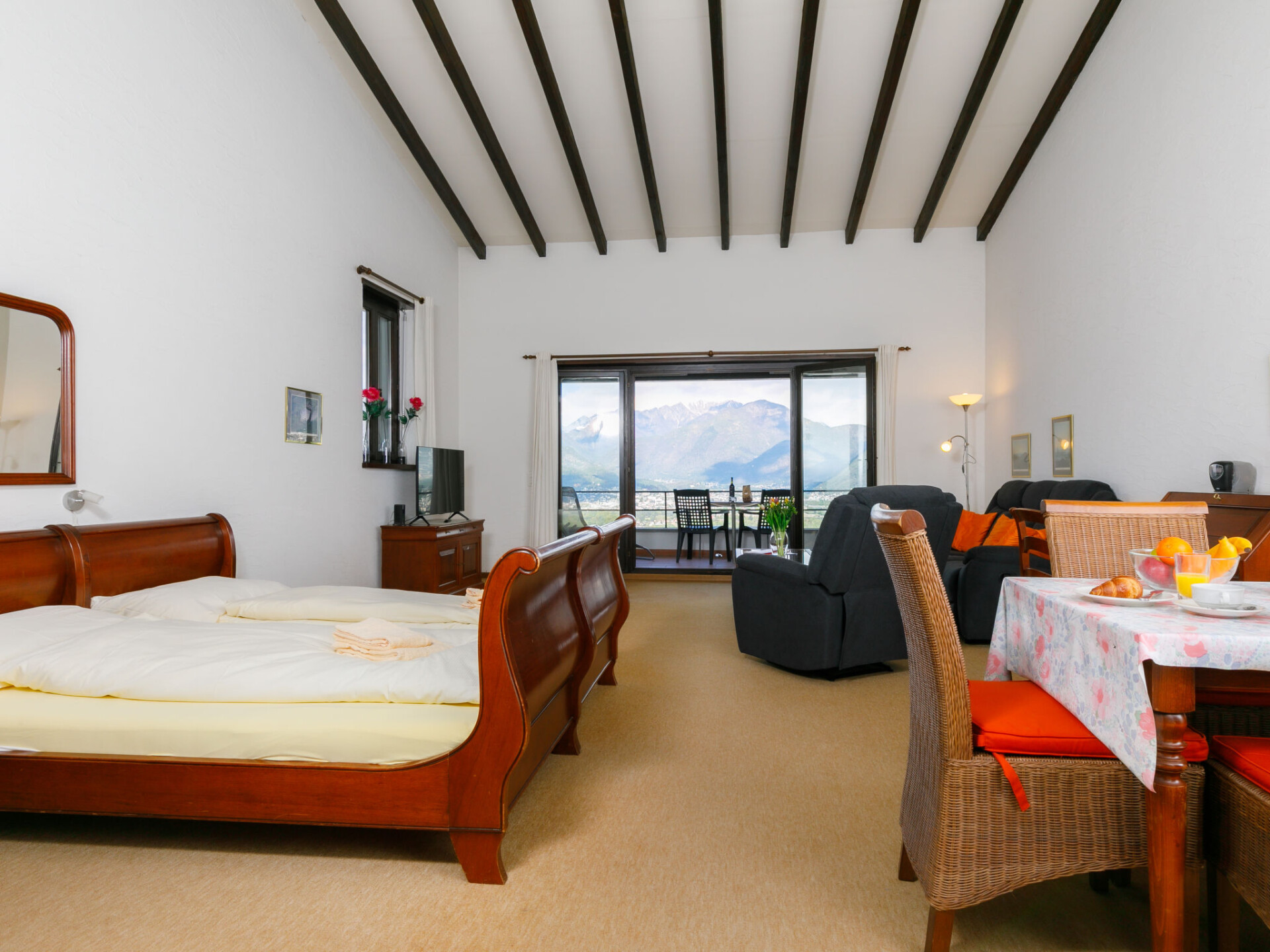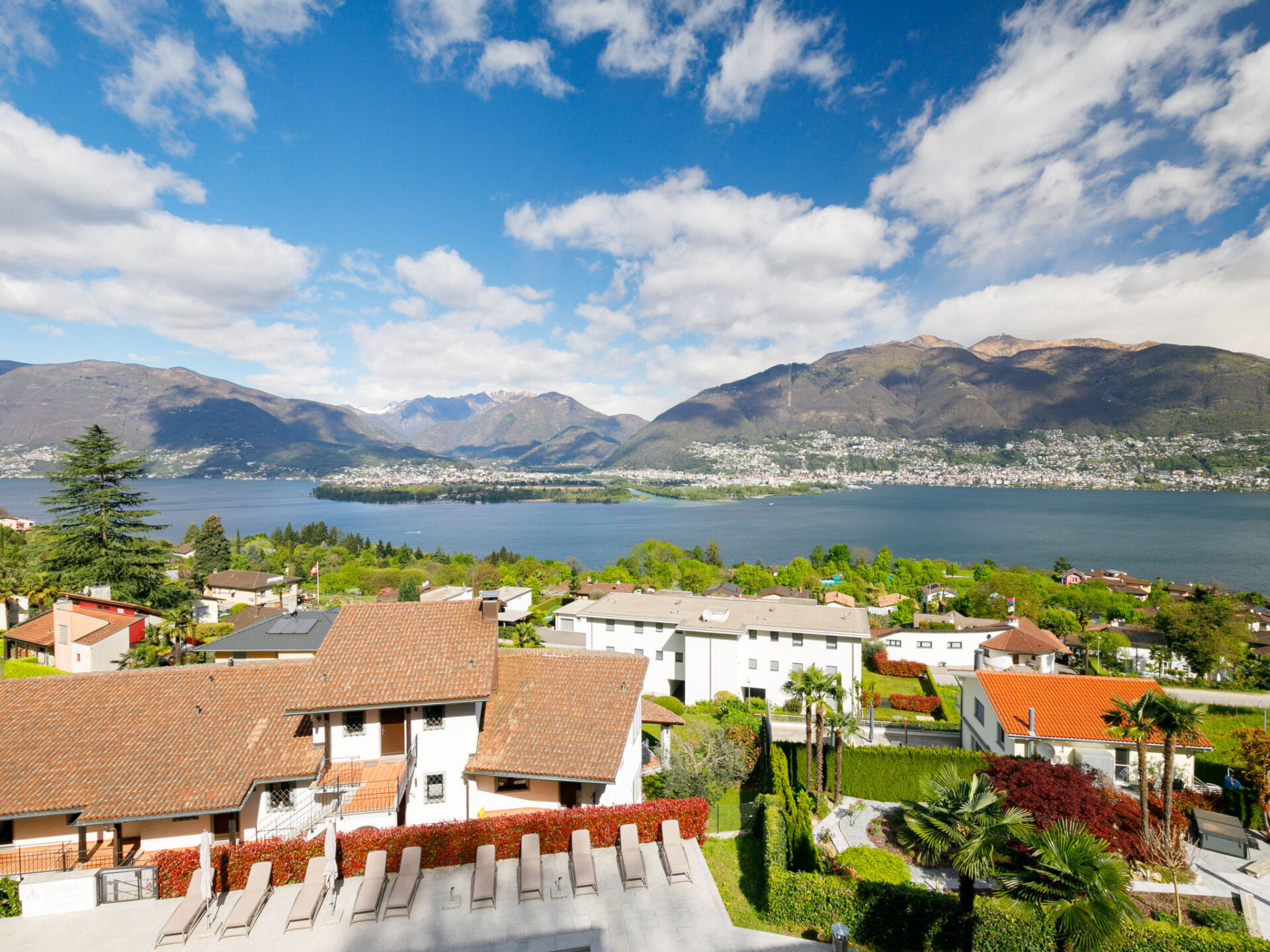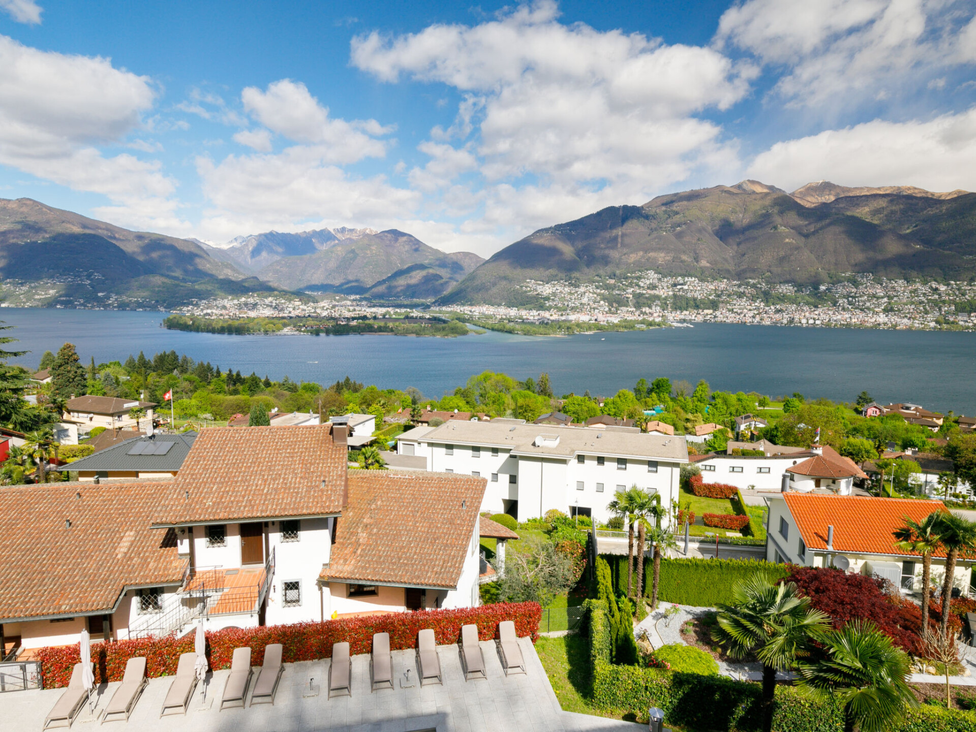 Piazzogna 19 km van Ascona: Moderne, comfortabele residentie "Miralago", omgeven door bomen en weiden. 4 huizen in de woning. 39 appartementen in de woning. Boven Vira (3 km), in het district Gambarogno, rustige, zonnige, verhoogde ligging tegen een helling, direct aan de bosrand, 3 km van het meer, aan een doodlopende weg, op het zuidoosten. Voor medegebruik: ligweide, openluchtzwembad hoekig verwarmd (170 - 170 cm diepte, seizoensgebonden beschikbaarheid: 15.Apr. - 15.Okt.) met trap en oprolbaar afdekscherm. Buitendouche, terras, tuinmeubelen. In het complex: receptie, salon, centrale verwarming, wasmachine (voor medegebruik, extra). Toegangsweg tot aan het huis het terrein. Parkeerplaats. Levensmiddelenwinkel, restaurant 300 m, bushalte 50 m. Midgetgolf 4.5 km, wandelroutes 100 m vanaf het huis. Attracties in de buurt: Parco Botanico, Piazzogna 300 m, Mercato Luino IT, Mercato Ponte Tresa IT, Bellinzona Unesco-Mercato, Swissminiature, Melide, Schokomuseum, Caslano. Bekende meren kunnen gemakkelijk worden bereikt: Lago Maggiore, Lago di Lugano, Lago di Como, Lago Orta. Wandelgebied Gambarogno, Indemini, Monte Tamaro und Splash and SPA, Rivera, Locarno - Ascona Cardada. De vier karakteristieke Tessiner huizen beschikken over een prachtig panorama over het meer. Per appartement is 1 parkeerplaats gratis, elke volgende kost CHF 35.00/week.
