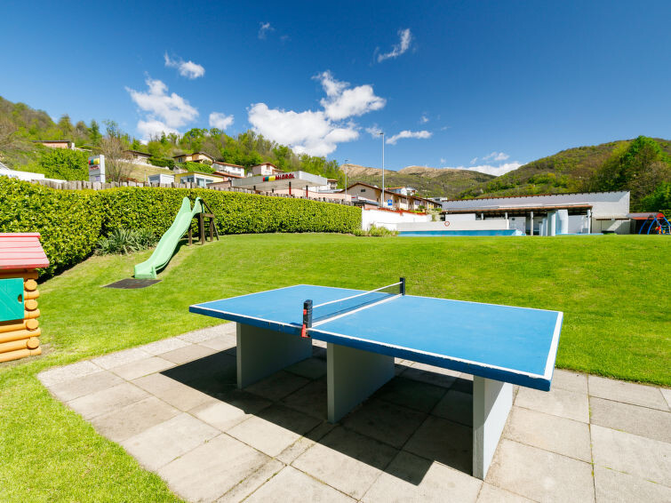 Lugaggia 7 km van Lugano: Groot, kindvriendelijke residentie "Villaggio Sureggio", 443 m boven zeeniveau, omgeven door bomen en weiden. 34 appartementen in de woning. In de plaats Sureggio, rustige, zonnige ligging tegen een helling, te midden van groen. Voor medegebruik: terrein, groot, mooie tuin, ligweide, openluchtzwembad hoekig (seizoensgebonden beschikbaarheid: 01.Mei. - 30.Sep.) met trap en oprolbaar afdekscherm. Douche/WC bij het zwembad, kinderzwembad, prieel, terras, stookplaats, kinderspeelplaats. In het huis: tafeltennis, tafelvoetbal, wasmachine (extra), droger (extra). Toegangsweg tot het terrein. Overdekte parkeerplaats op het terrein. Levensmiddelenwinkel 2 km, restaurant 2 km, bushalte "ARL 461 Lugano - Tesserete" 10 m, treinstation "Lugano" 7 km, openluchtzwembad 2 km. Bekende meren kunnen gemakkelijk worden bereikt: Lago di Lugano, Lago di Origlio. Wandelgebied Monte Bar, Denti della Vecchia, Croce, San Lucio, Monte Bré, Monte Lema, MountainBike Gebiet Capriasca/ Tesserete. Autovrij vakantiepark, geen lift. Geschikt voor families, baby uitrusting op aanvraag (extra). De eigenaar accepteert geen jeugdgroepen. De woningen kunnen onderling van inrichting verschillen.