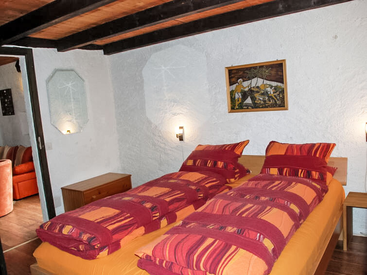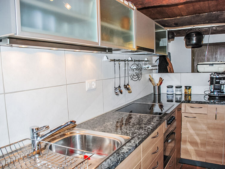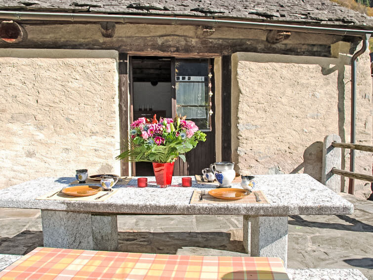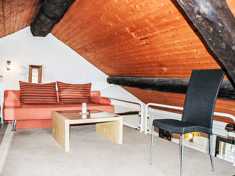 "Rustico Cristallo", huis 3-kamers op 3 verdiepingen, op het zuiden gelegen. Licht, gedeeltelijk afgeschuinde daken, comfortabel en smaakvol ingericht: groot woonkeuken (oven, 4 keramische glas kookplaten, elektrische koffiemachine, pads voor de koffiemachine (Caffitaly) extra, raclette oven, fondue Set (kaas)) met open haard, eettafel en radio. Uitgang naar de zitplaats in de tuin. Douche/WC. Elektrische verwarming, houtverwarming. Bovenverdieping: woonkamer met Sat-TV en Flatscreen TV. Uitgang naar de tuin, naar de zitplaats in de tuin. 1 2-pers. kamer met 1 2-pers bed (2 x 80 cm, lengte 200 cm). Uitgang naar het terras. 2e Verdieping: (steile trap) open galerij met afgeschuinde daken, hoogte van het plafond 80 - 100 cm met 2 bedden (90 cm, lengte 200 cm). Salon. Terras gedeeltelijk overdekt, op het zuiden gelegen, zithoek in de tuin. Terrasmeubelen, barbecue (verrijdbaar), ligstoelen (2), zitgelegenheid. Mooi panoramazicht op de bergen, het landschap en de plaats. Ter beschikking: kinderstoel, kinderbed tot 2 jaar (extra), haardroger, haardhout (extra). Internet (WiFi). Niet geschikt voor kinderen onder 6 jaar. Rookvrij huis. Maximaal 1 klein huisdier/hond toegestaan. Brandblusser. In plaats van een afgesloten slaapkamer bevinden sommige slaapgedeeltes zich in een open ruimte (galerij, nis, etc.). NL-00001822